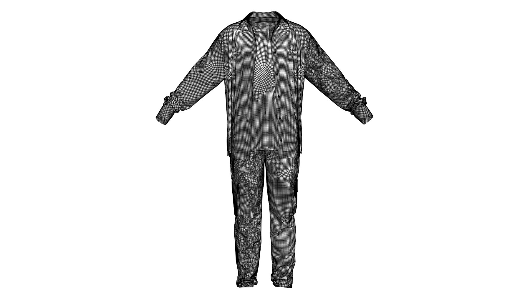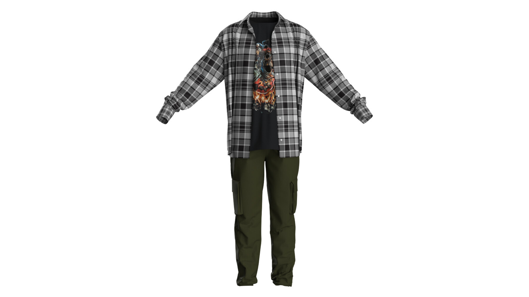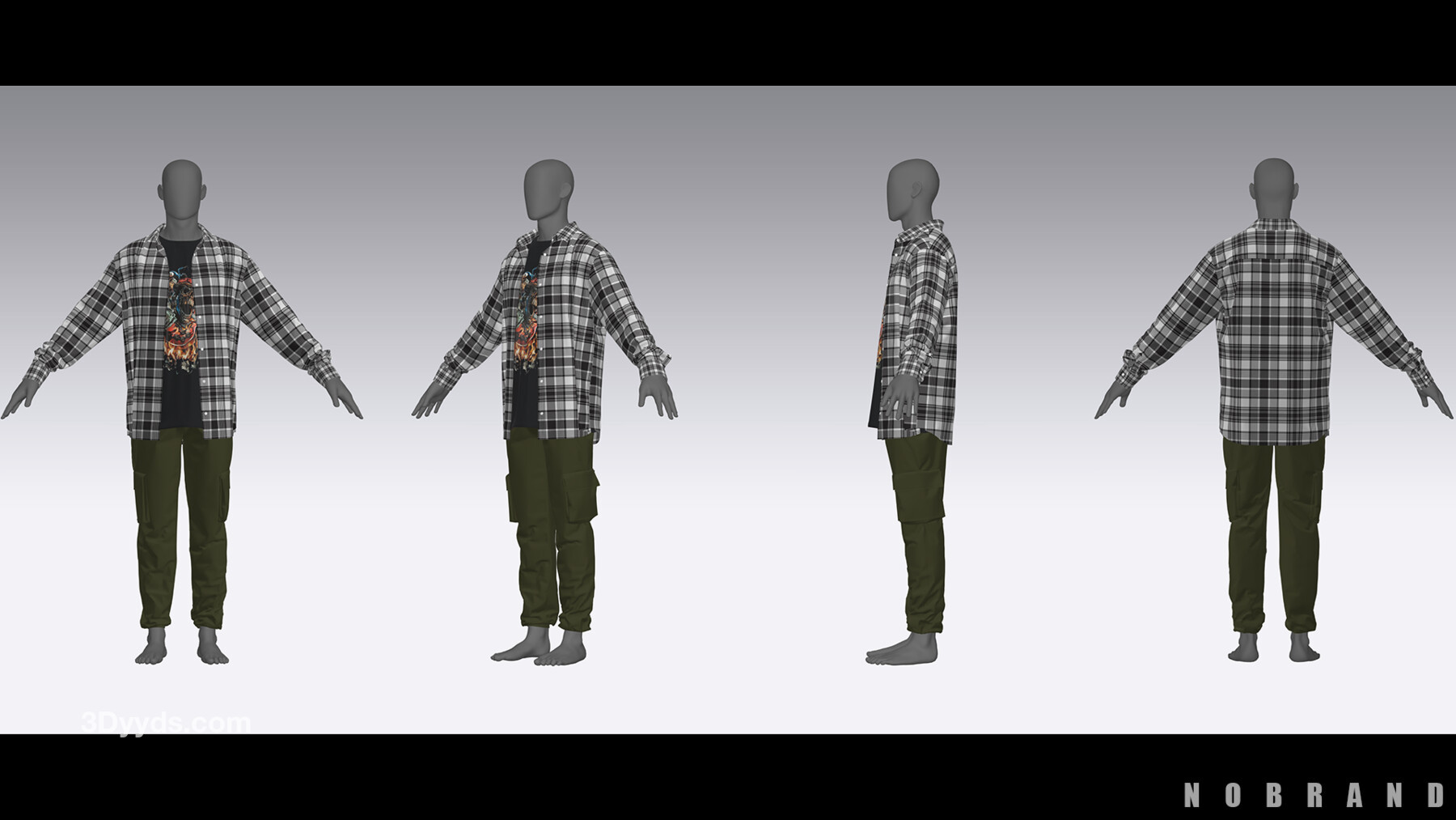 MD322-CLO3D男士休闲格子衬衫T桖军绿工装裤ZPRJ服装OBJ