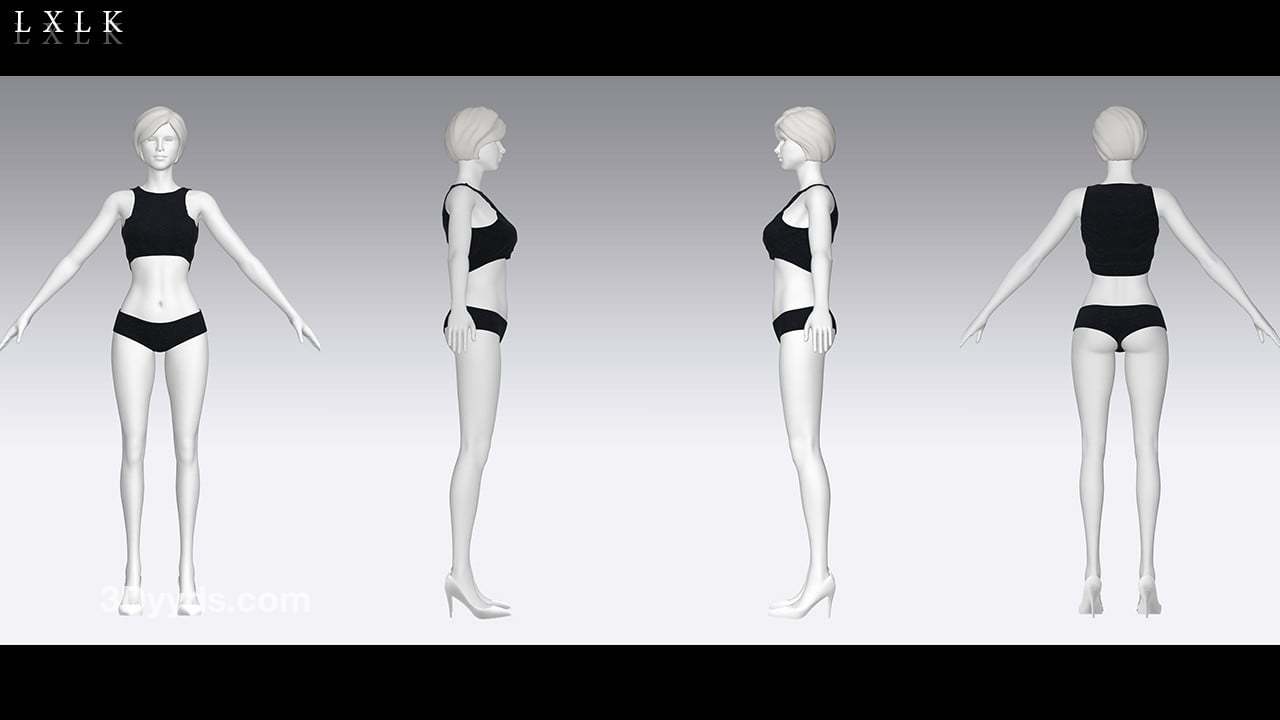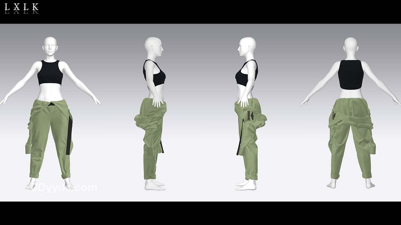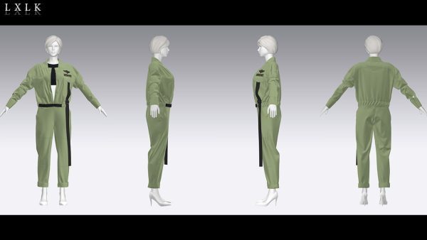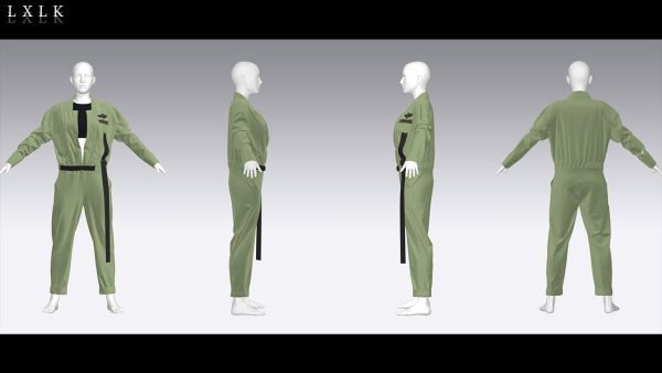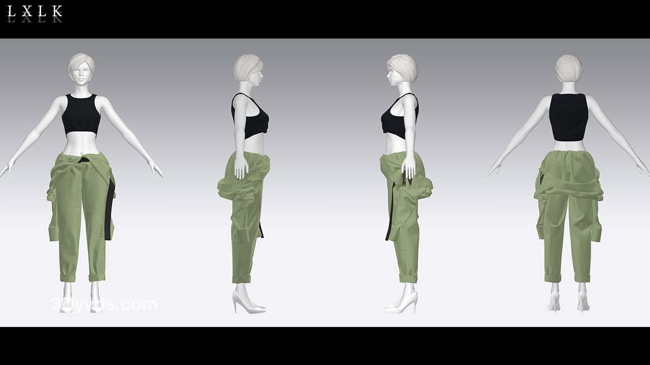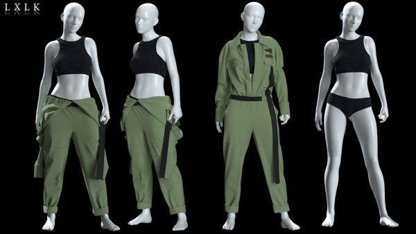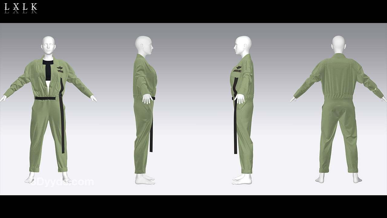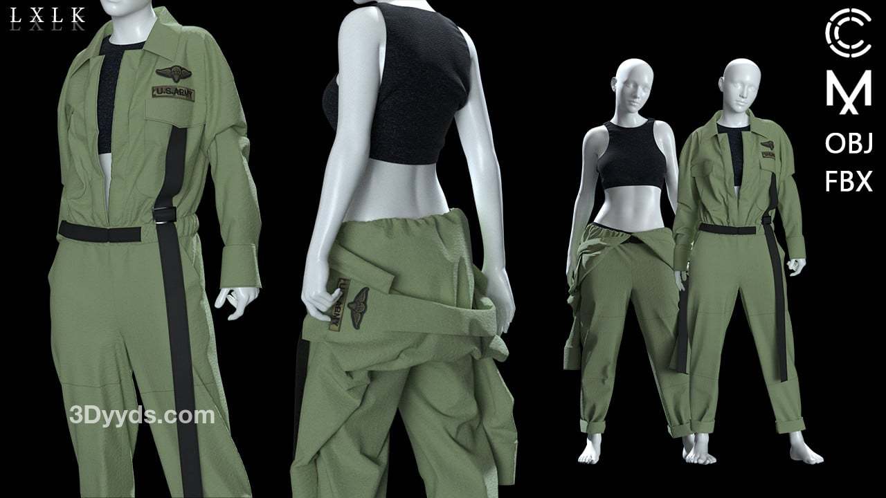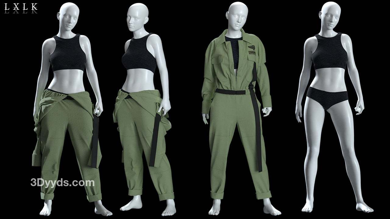 MD323CLO3D女性军绿色工装服套装内衣工作服FBX模型