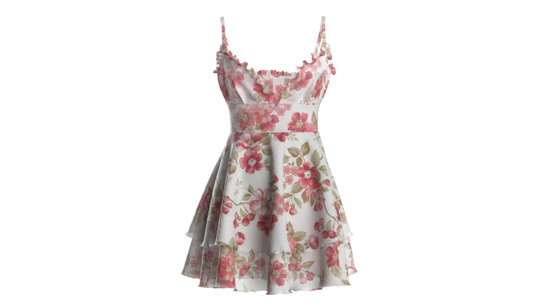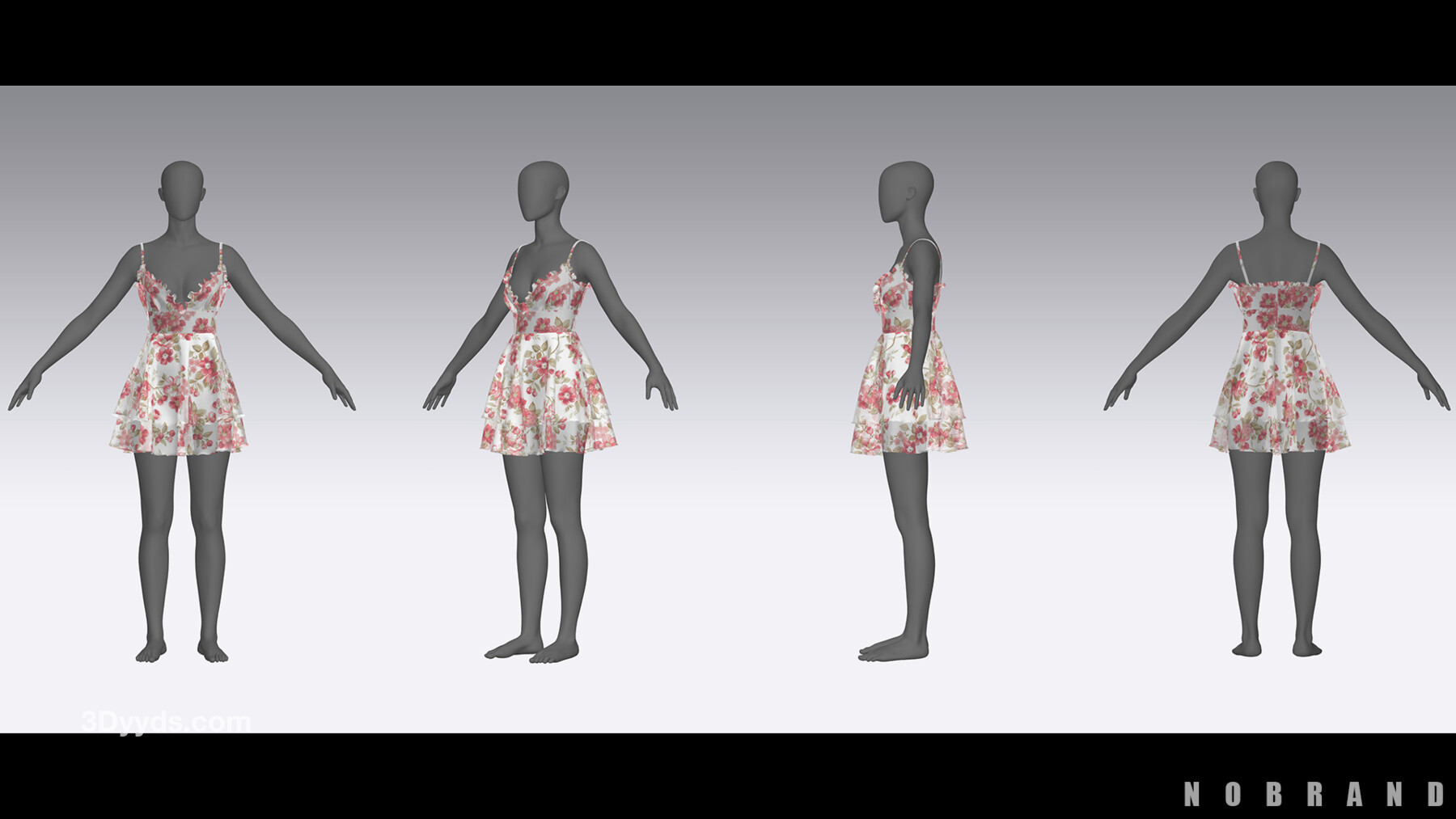 MD326Clo3d性感碎花雪纺连衣裙ZPRJ服装OBJ模型