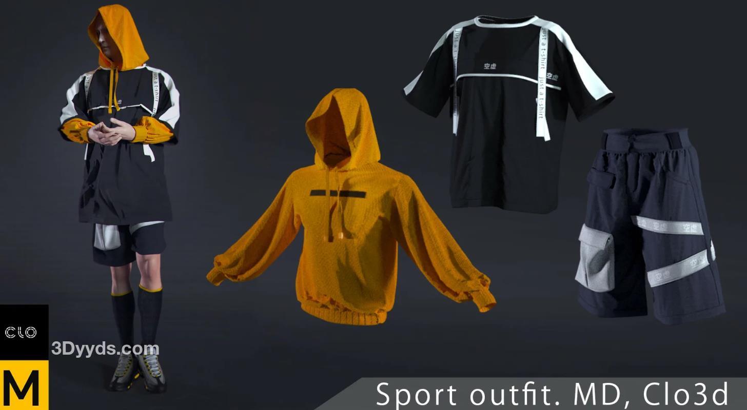 MD330男士T恤连帽衫衣服长袜球鞋短裤zprj服装CLO3D