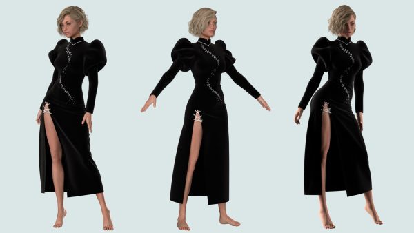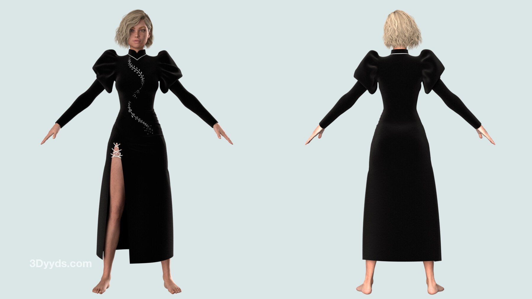 MD333改良旗袍黑色礼服Clo3D服装OBJ模型