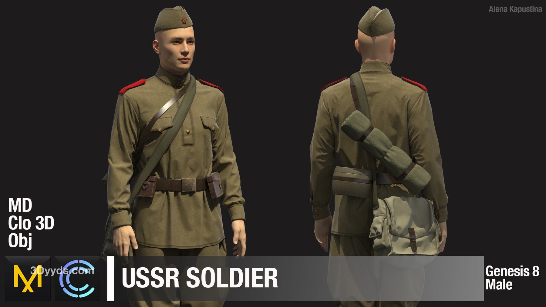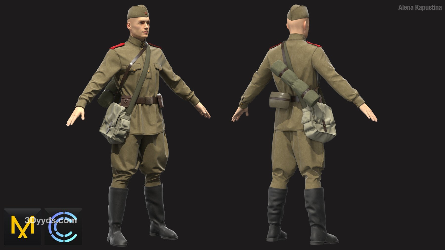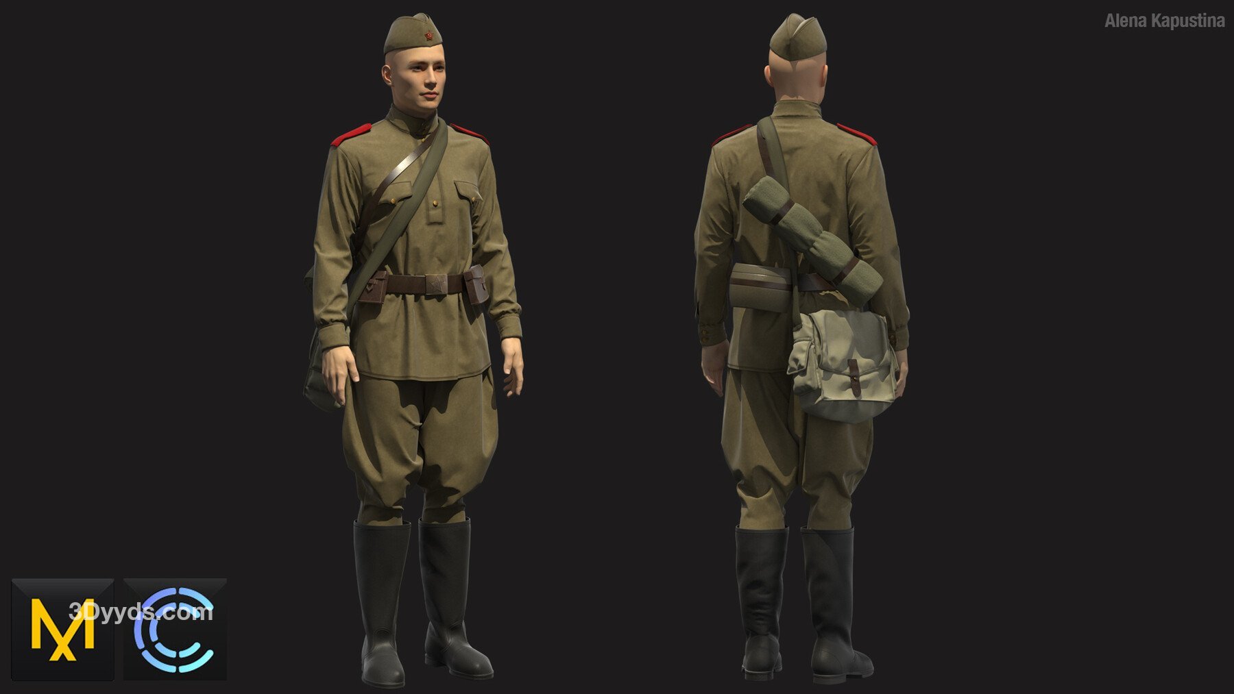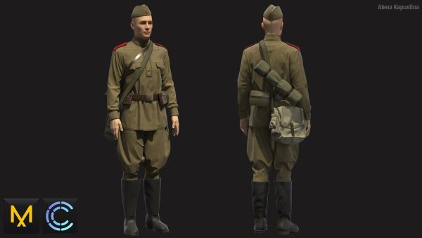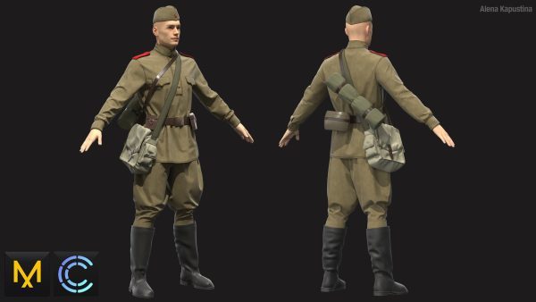 MD336Clo3d苏联士兵制服靴子背包帽子套装ZPRJ服装OBJ模型