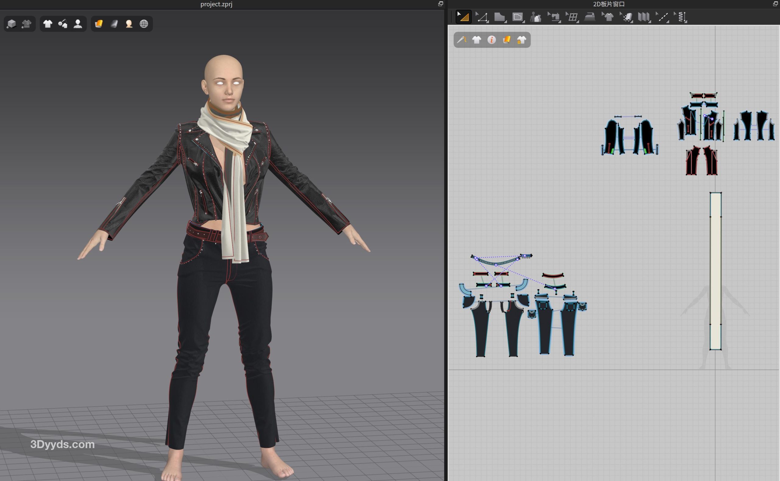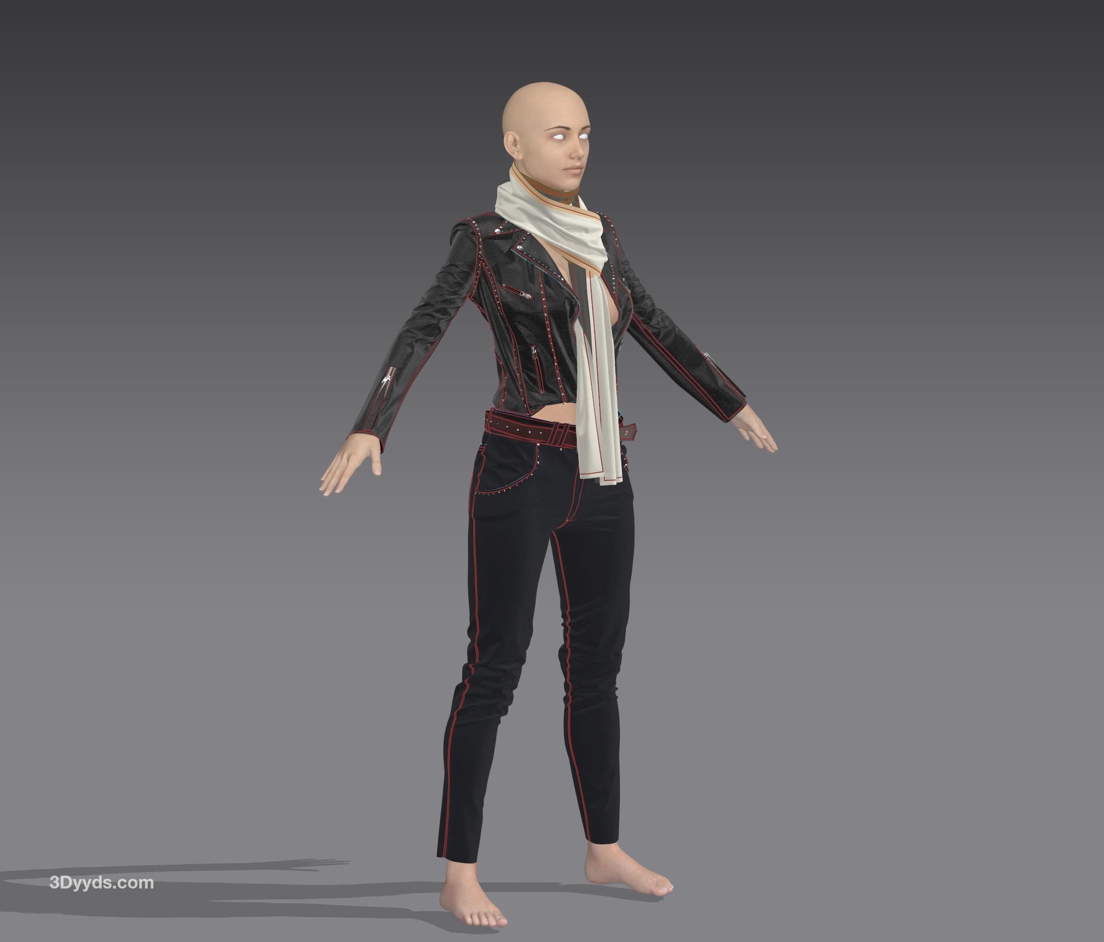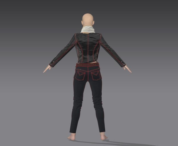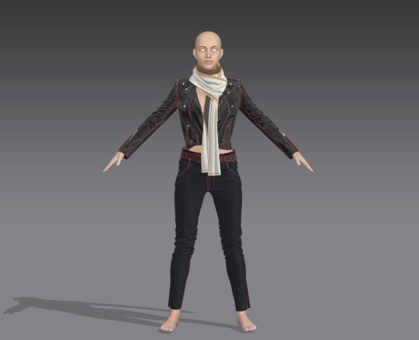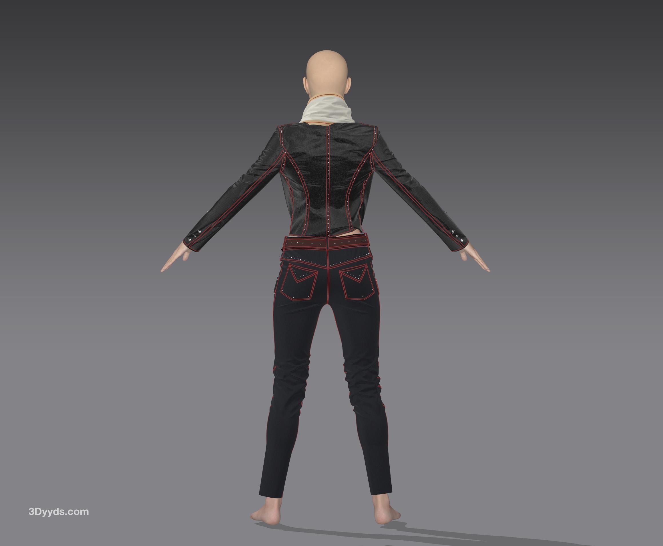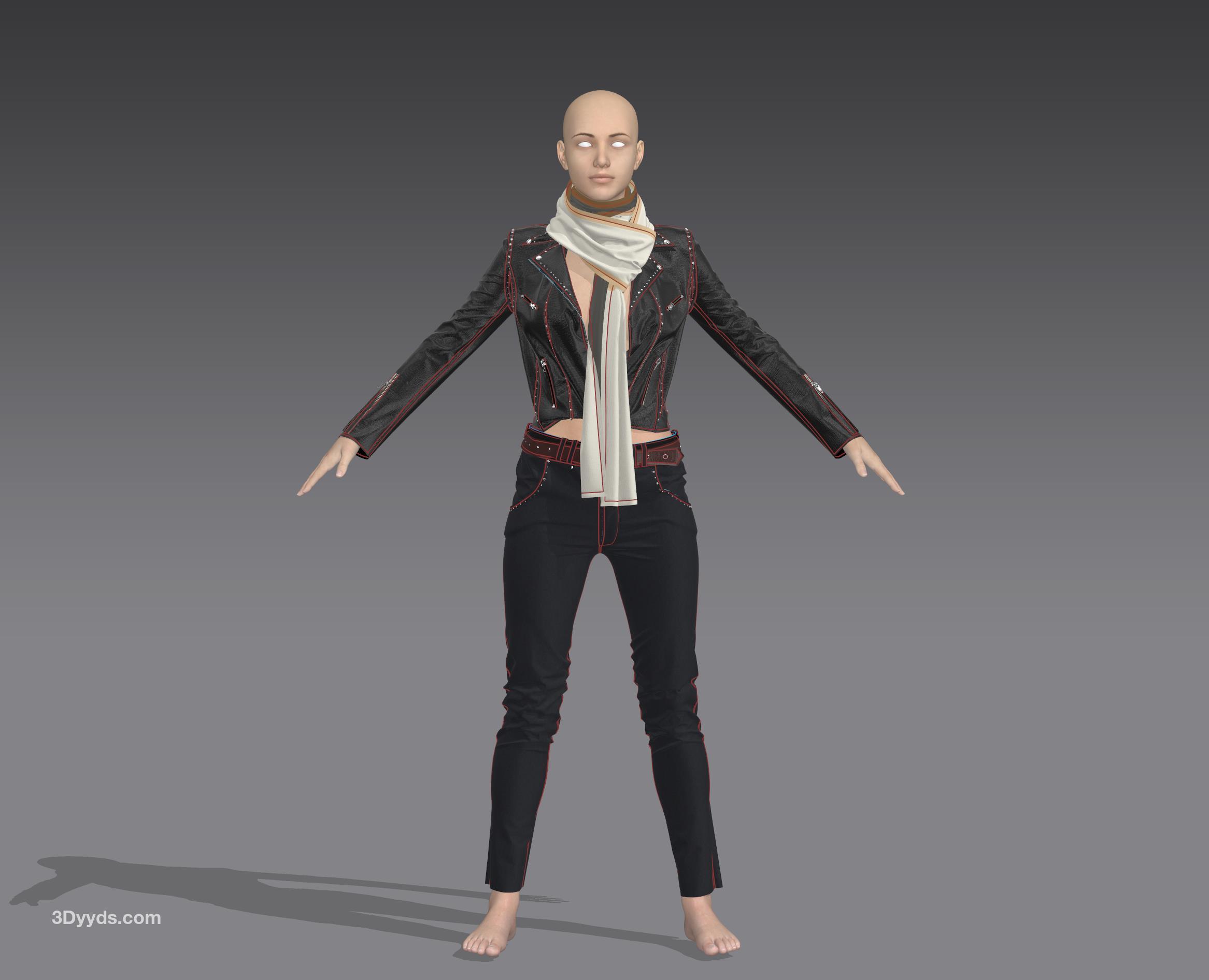 MD348女士时尚皮衣牛仔裤围巾Clo3d服装