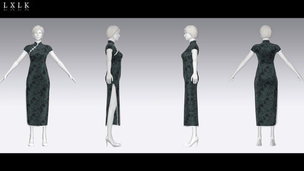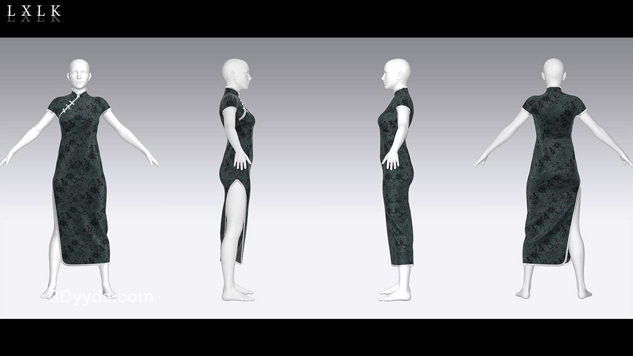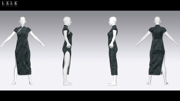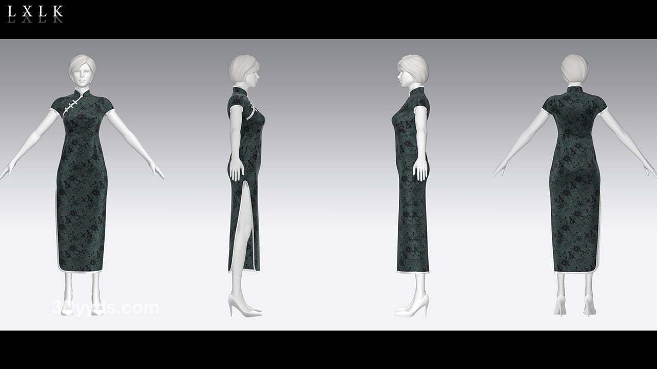 MD352-ClO3D中国风传统服饰女士旗袍服装OBJ模型zprj