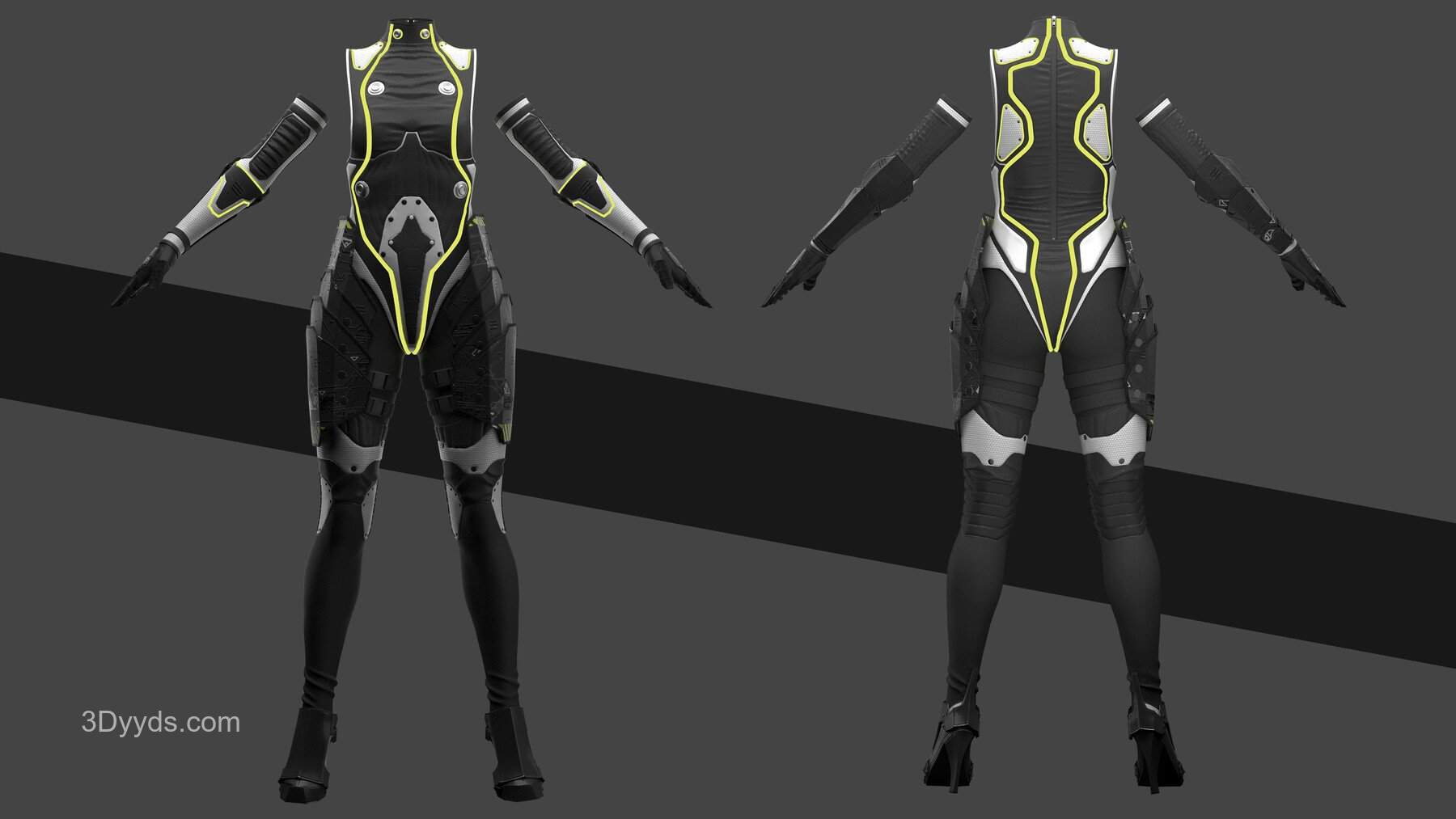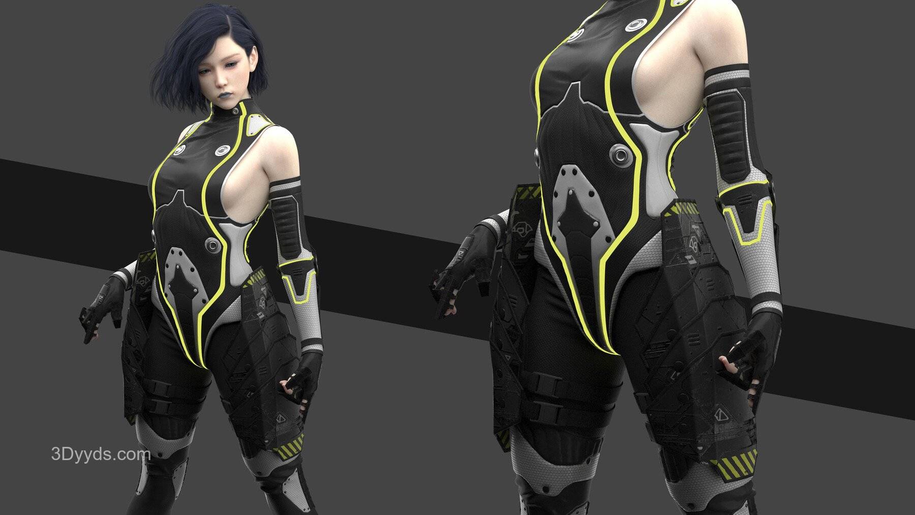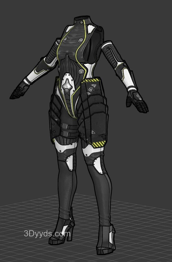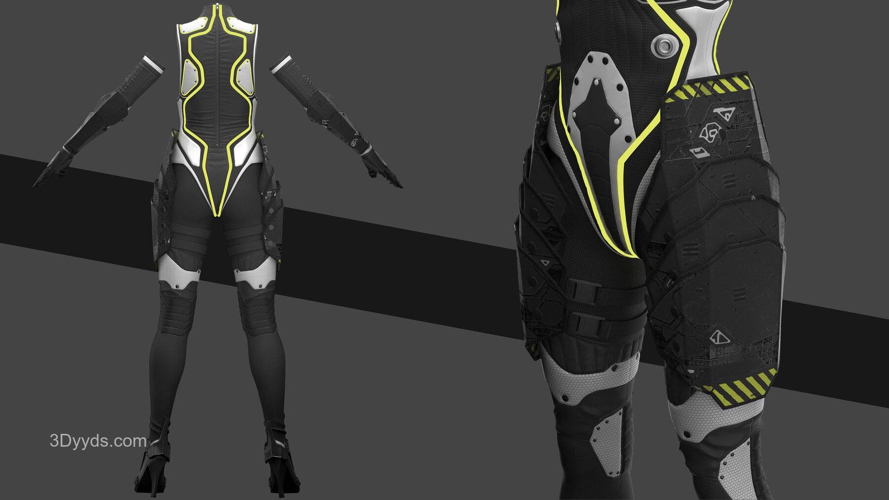 MD353-CLO3D赛博科幻女战士套装zprj模型OBJ服装
