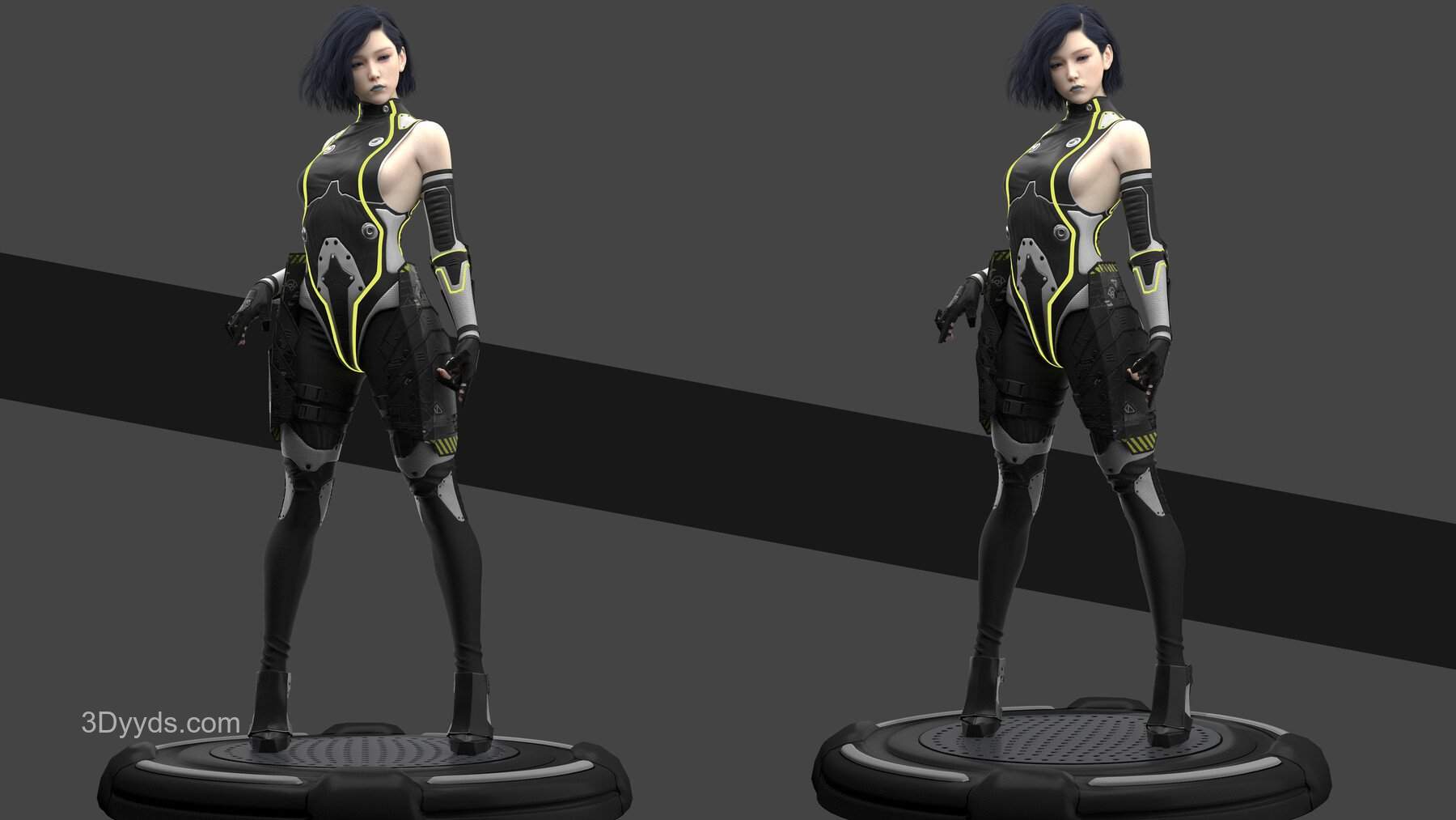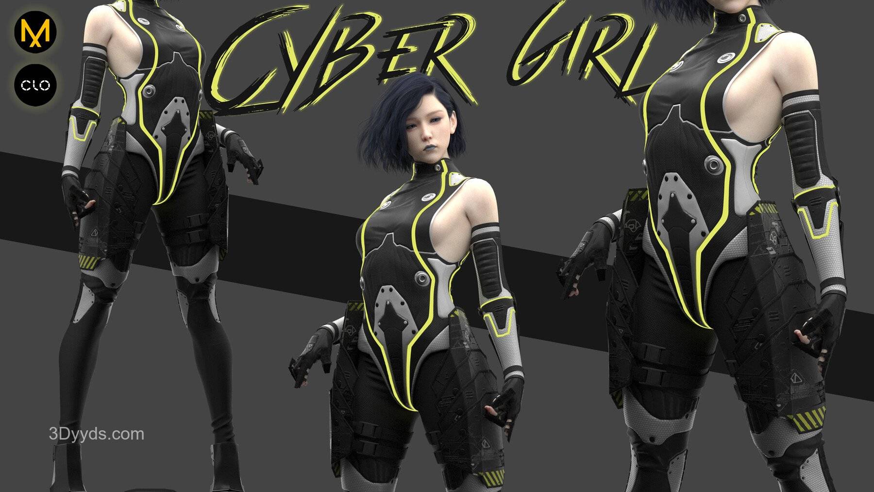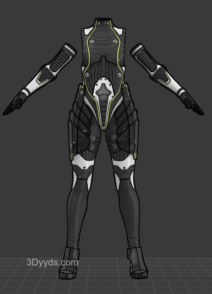 MD353-CLO3D赛博科幻女战士套装zprj模型OBJ服装