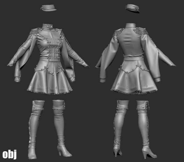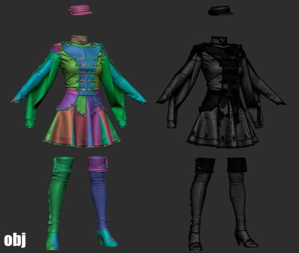 + Marvelous Designer/Clo3d 项目 (.zprj) 带纹理 + OBJ(从 MD 导出的高多边形三角形网格),没有纹理和明线 头像 - Daz_Genesis 8 名女性(默认大小,A 姿势)