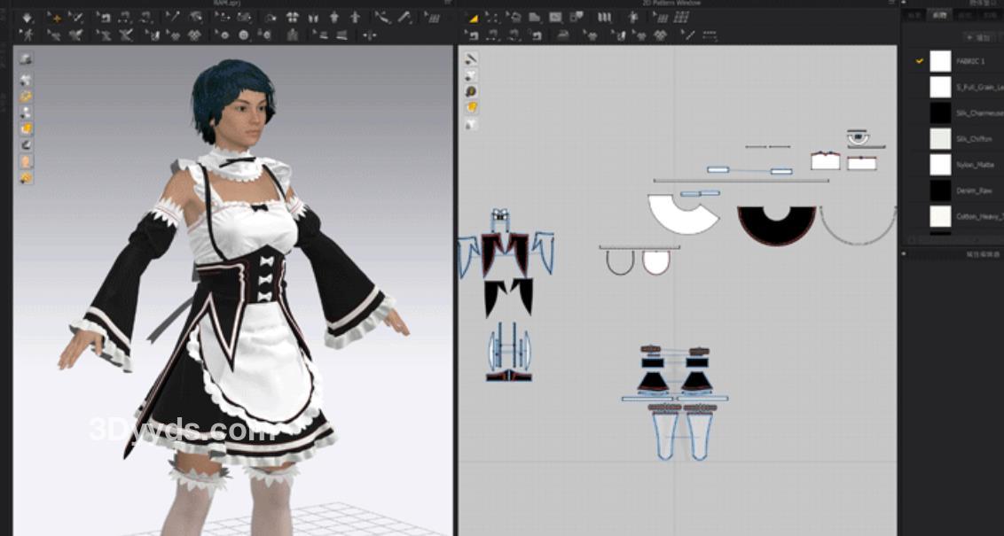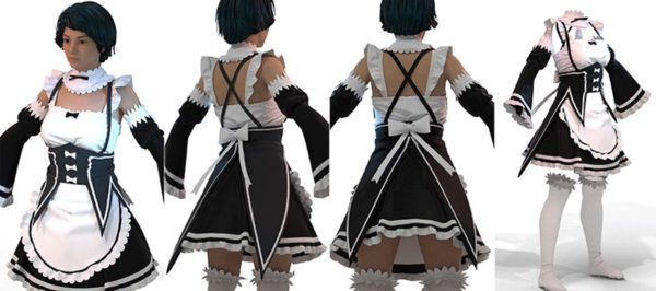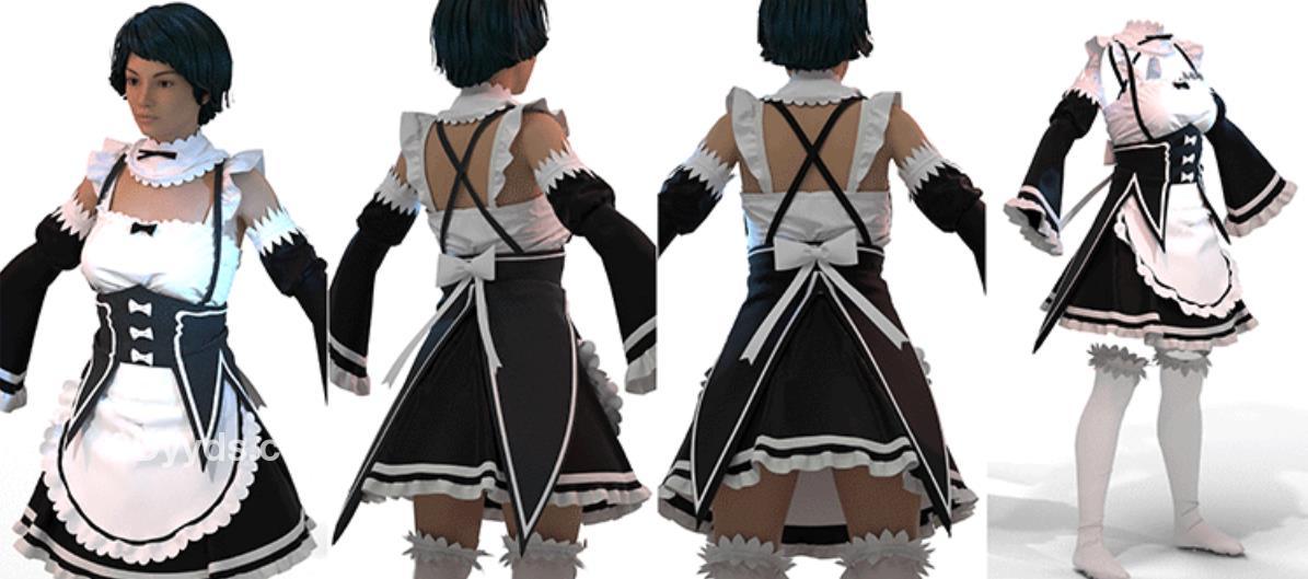 MD363-动漫风格女仆装衣服模型CLO3D服装