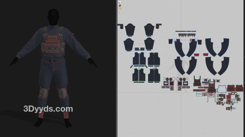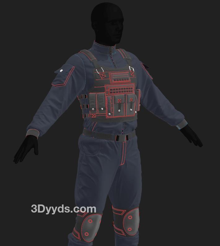 MD368男士战术装备套装服装防弹衣OBJ服饰模型