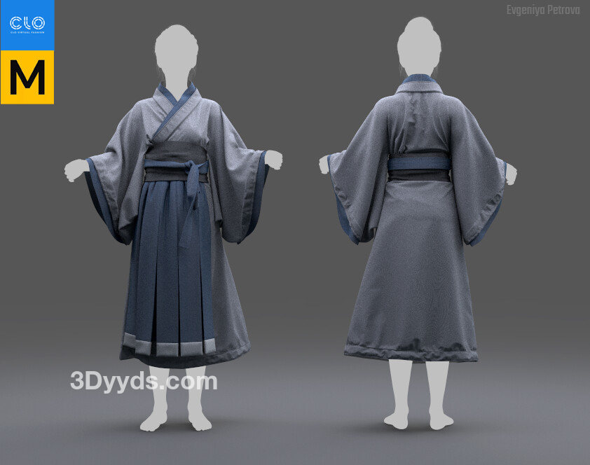 MD371-CLO3D亚洲女子古装传统服饰麻布衣服服装