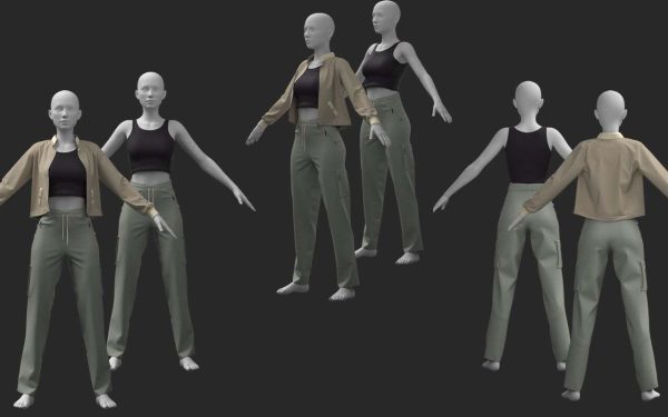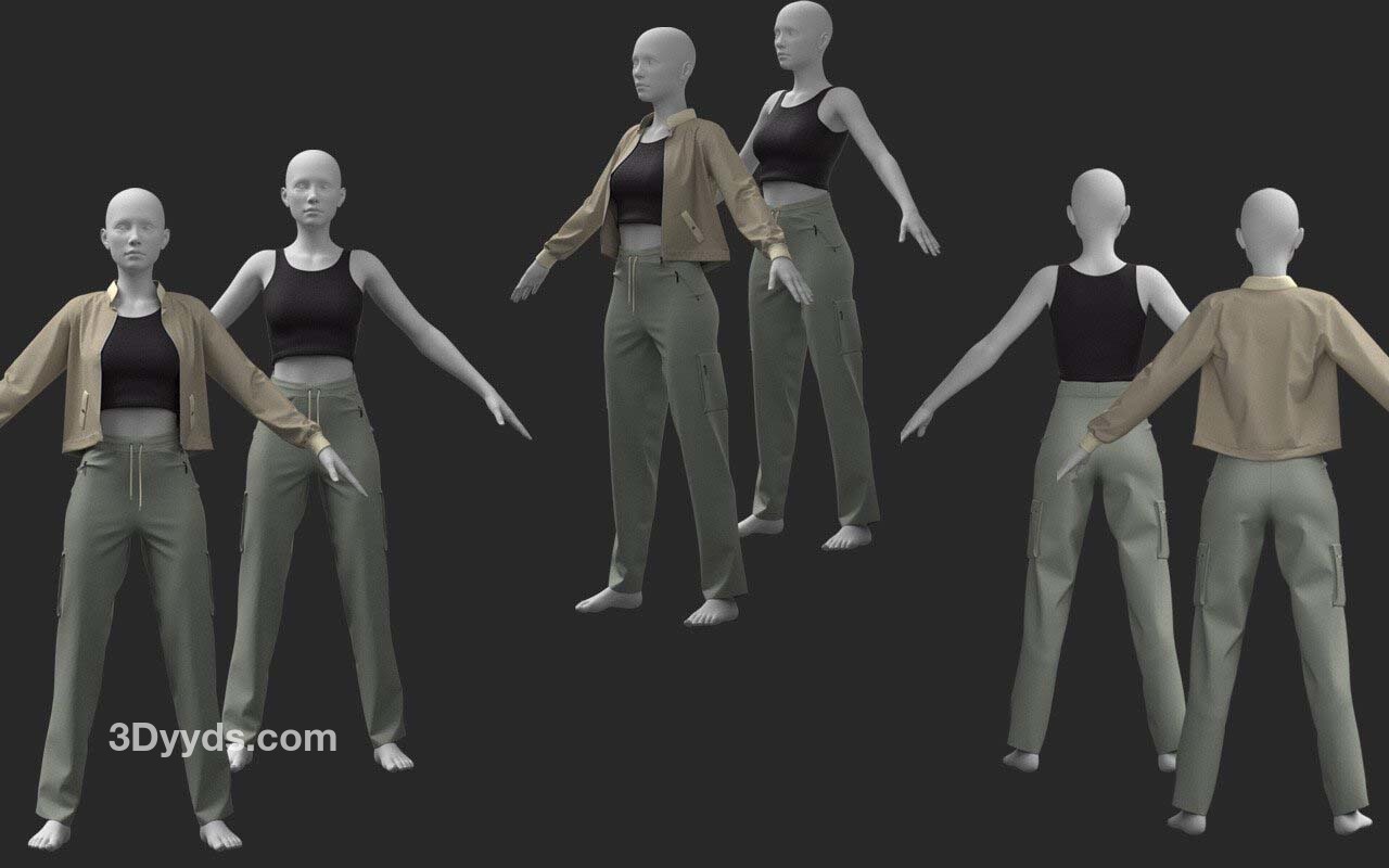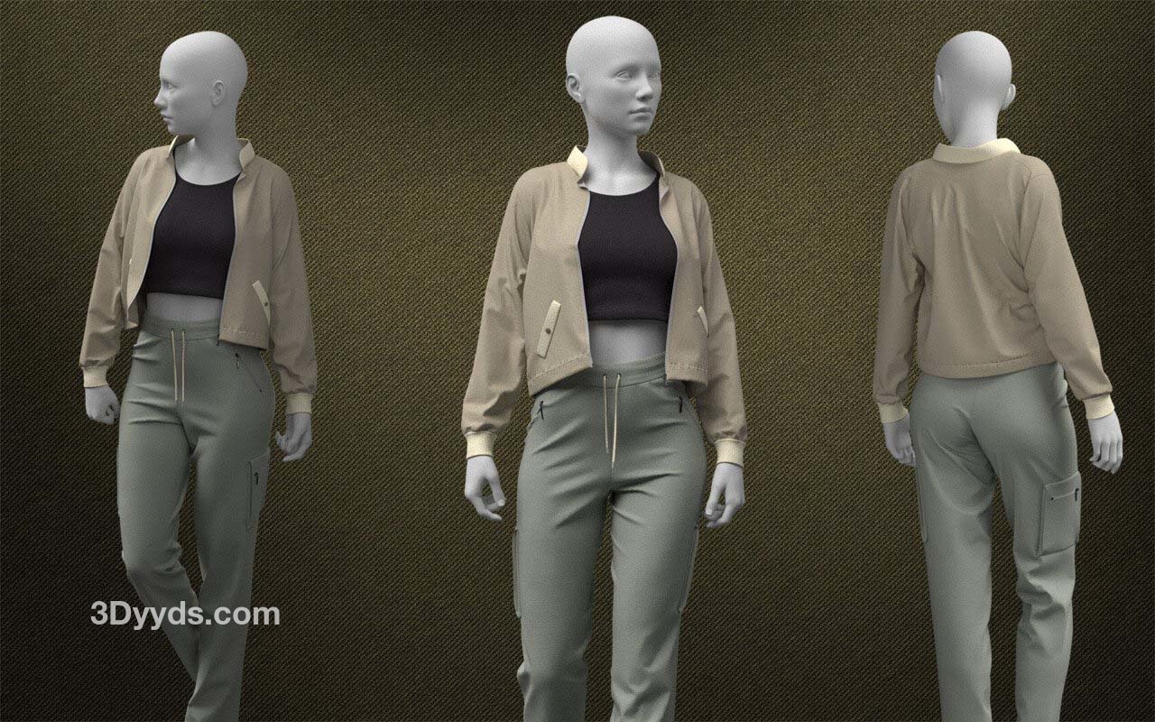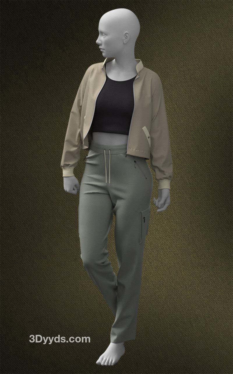 MD373-CLO3D女士休闲夹克裤子OBJ服装模型zprj