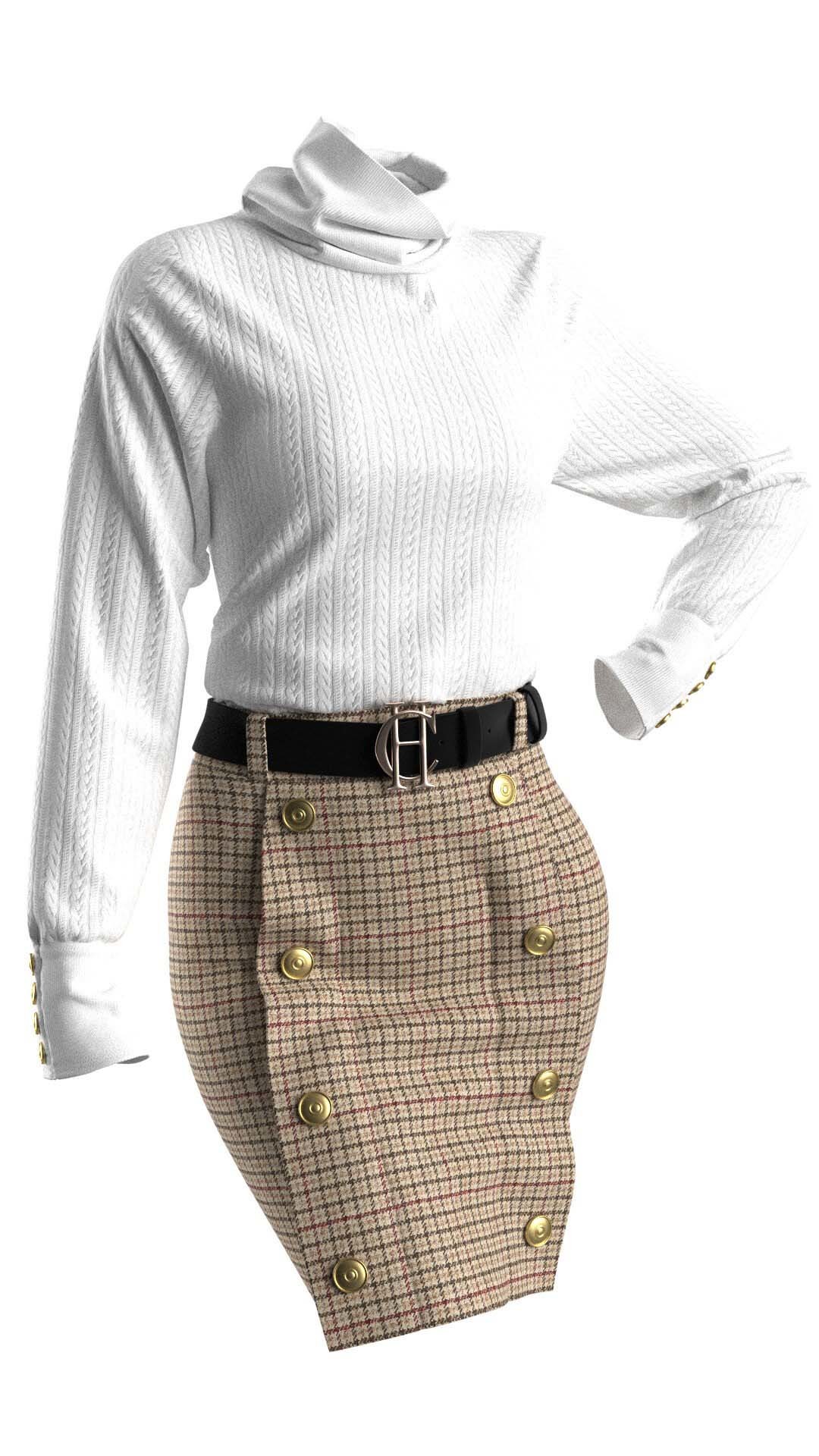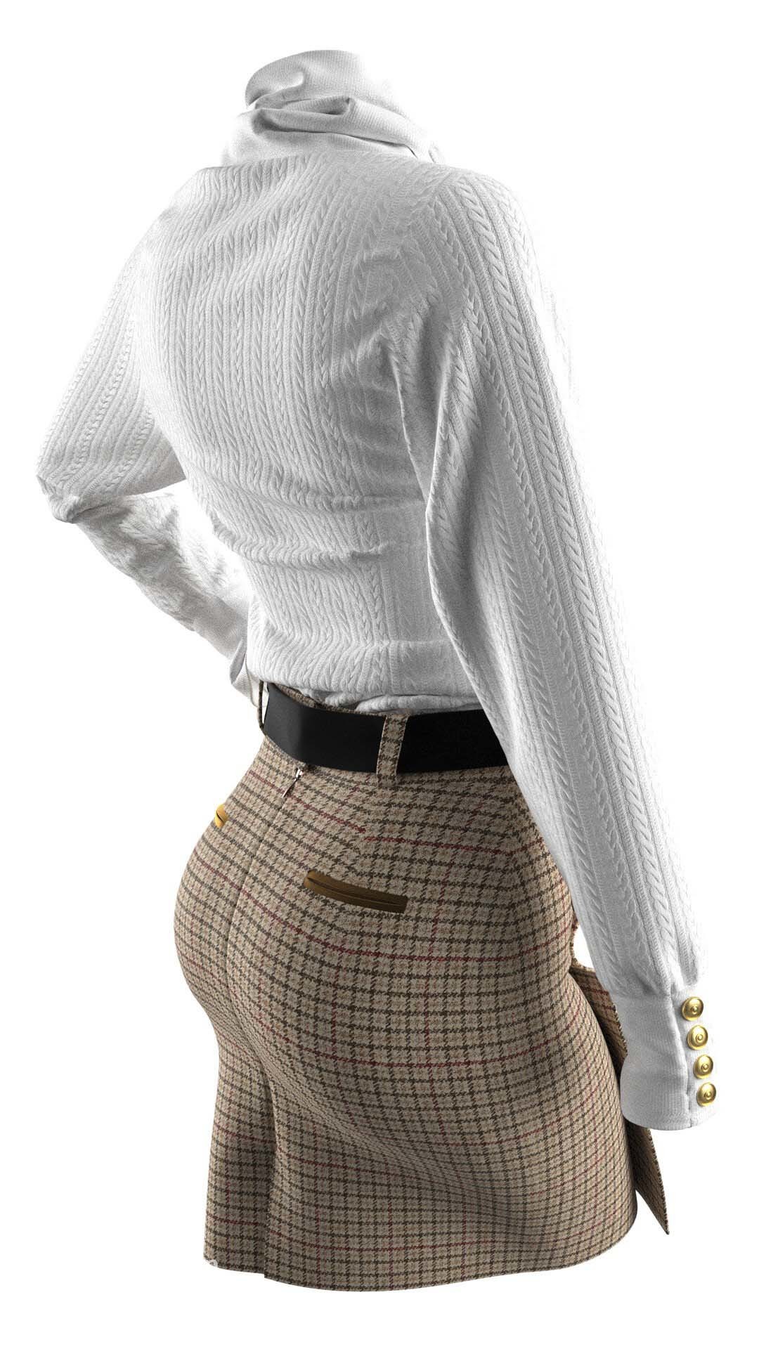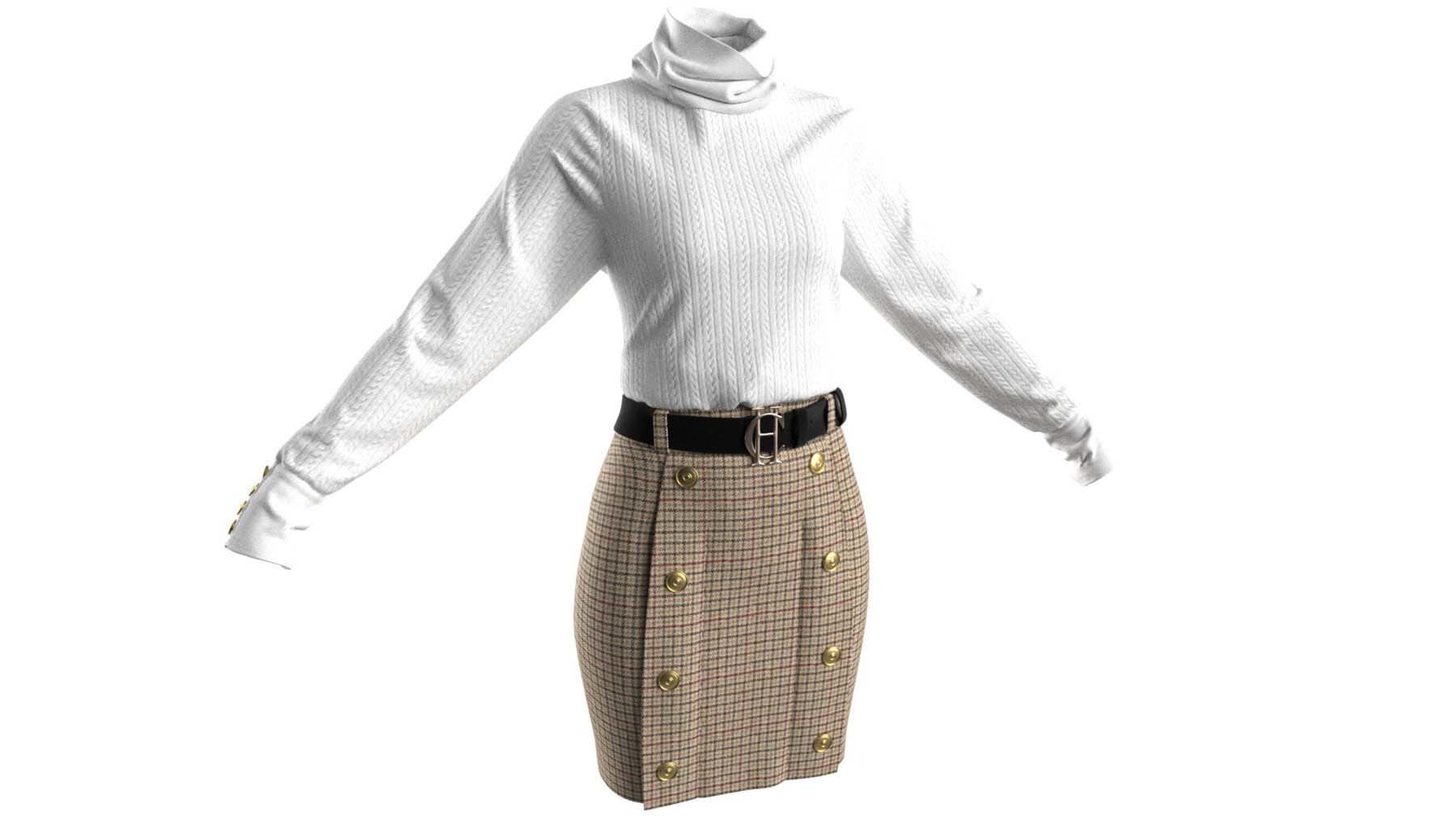 Marvelous Designer 创作的女士套装毛衣和铅笔裙