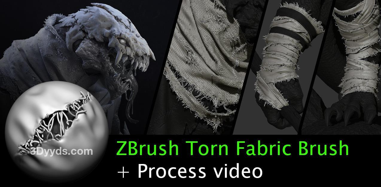 包含在Zbrush中创建撕裂织物的插入网格笔刷,以及使用此笔刷的技术示例视频,演示我的作品之一。