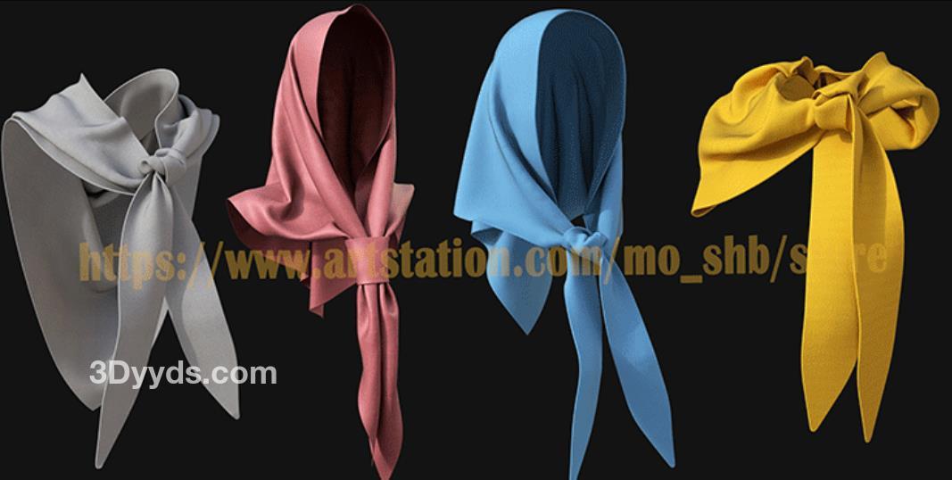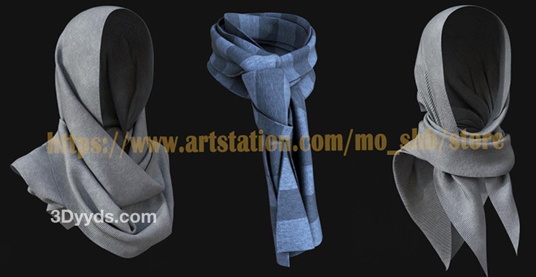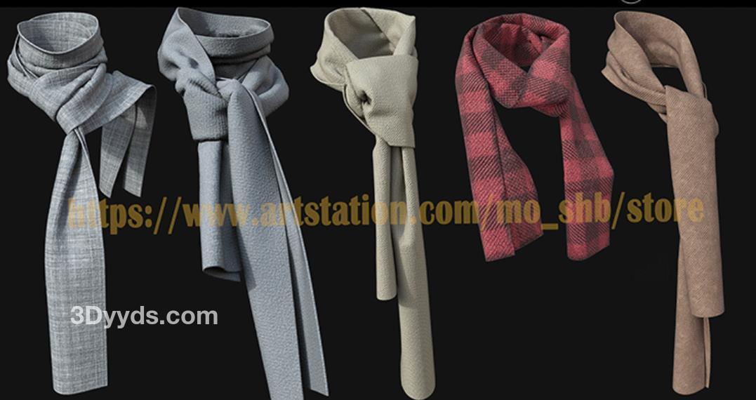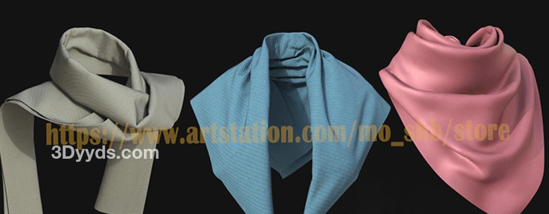 MD385-服装配饰素材CLO3D服饰男女围巾头巾围脖 打版素材源文件3D模型