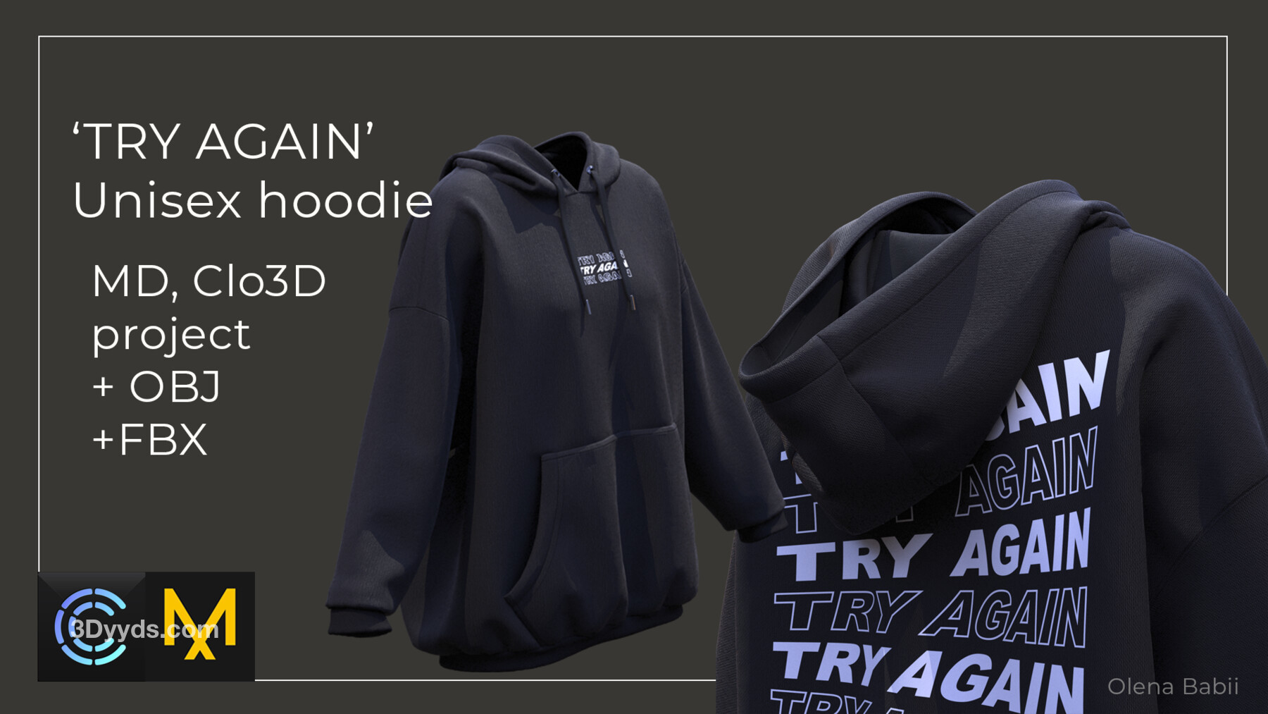 MD386-连帽衫球服休闲卫衣CLO3D服装打版源文件MD衣服模型OBJ