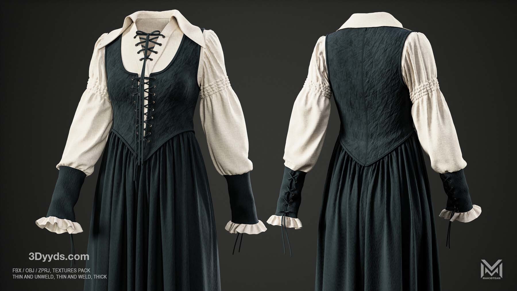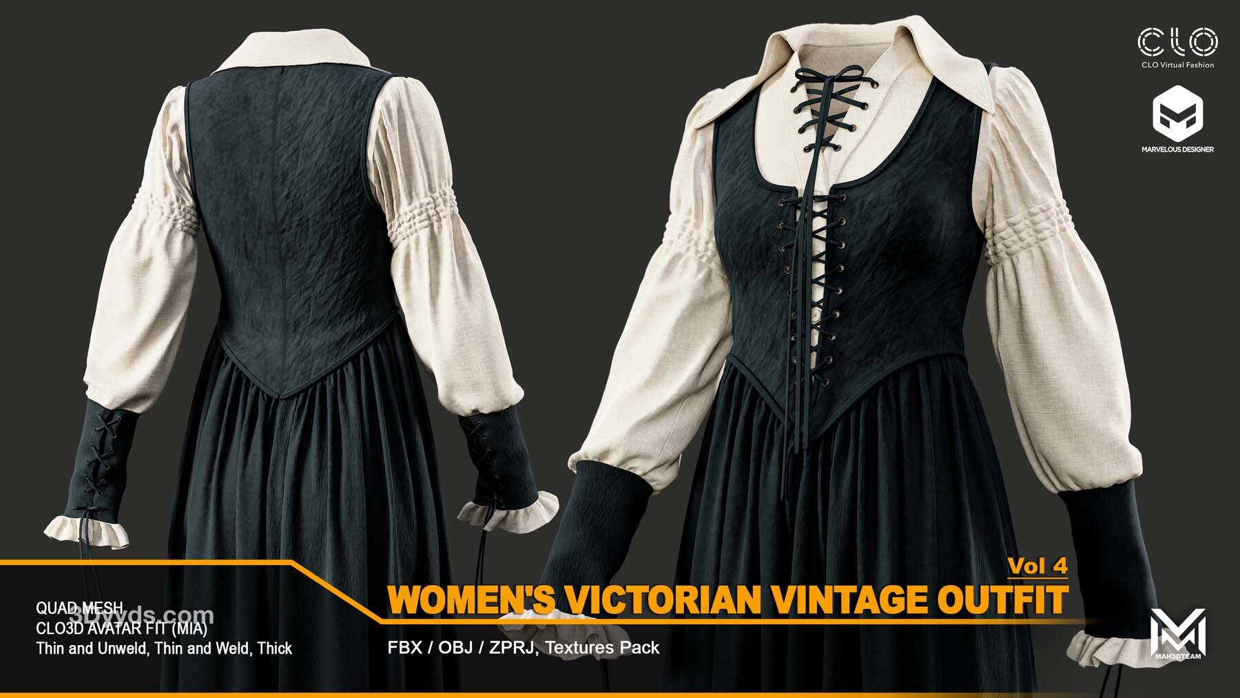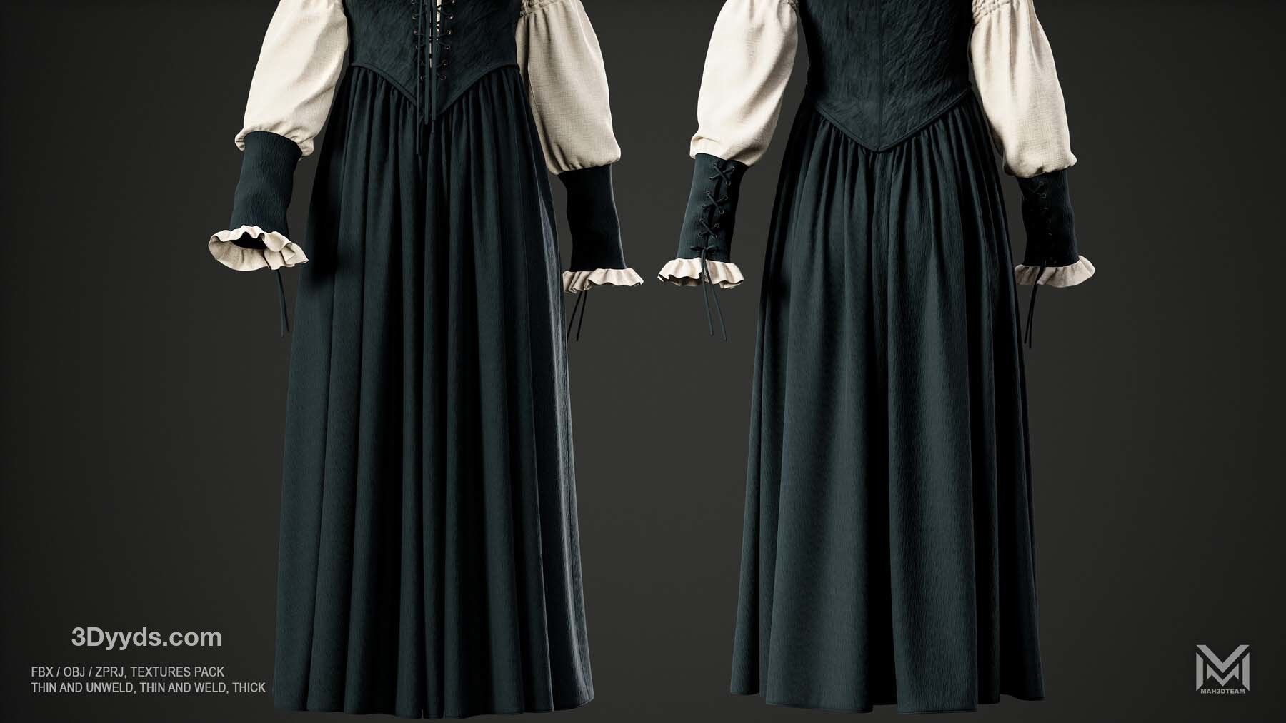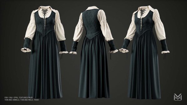 女士维多利亚复古服装 - VOL4 (ZPRJ+FBX+OBJ 文件)