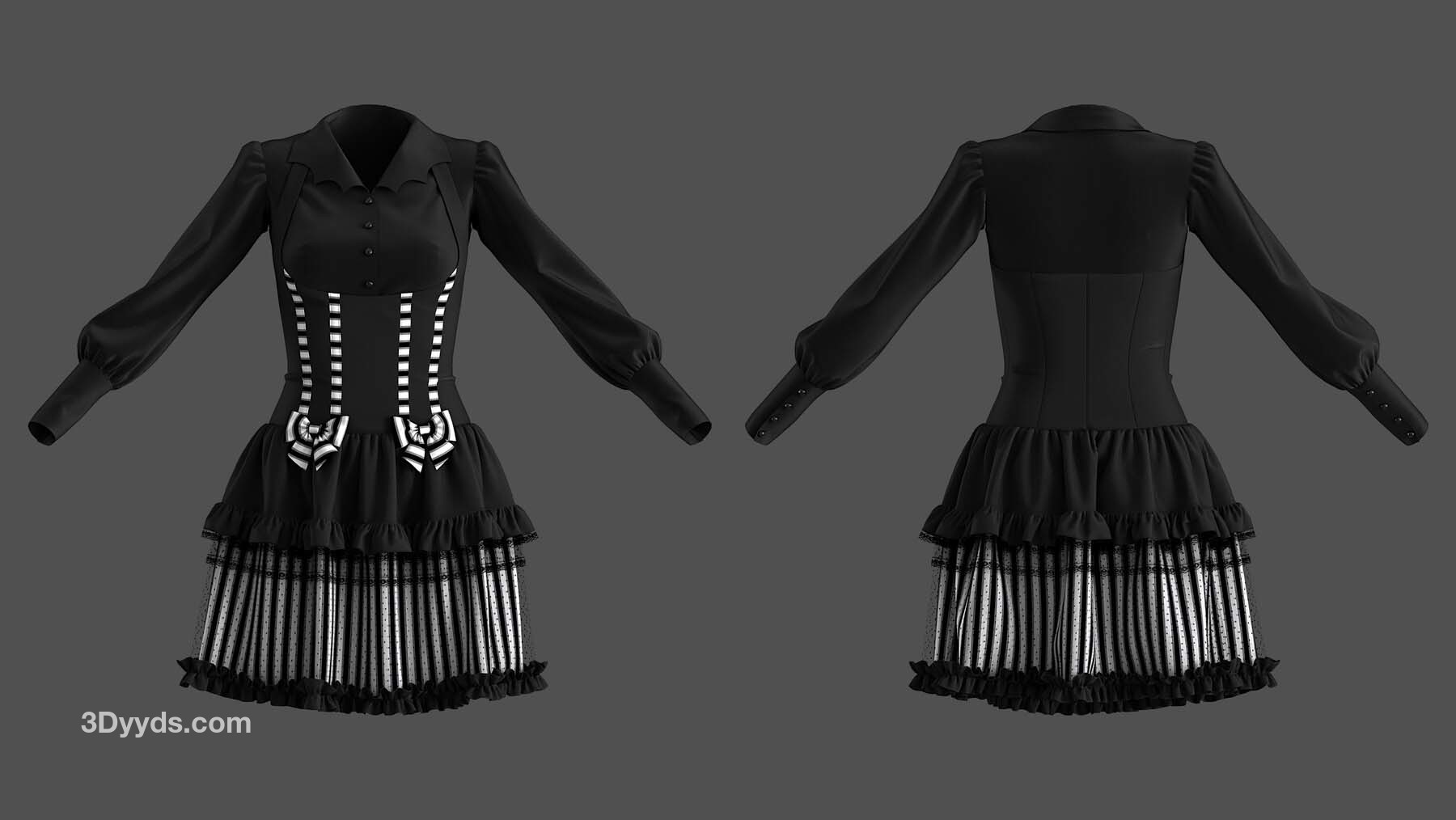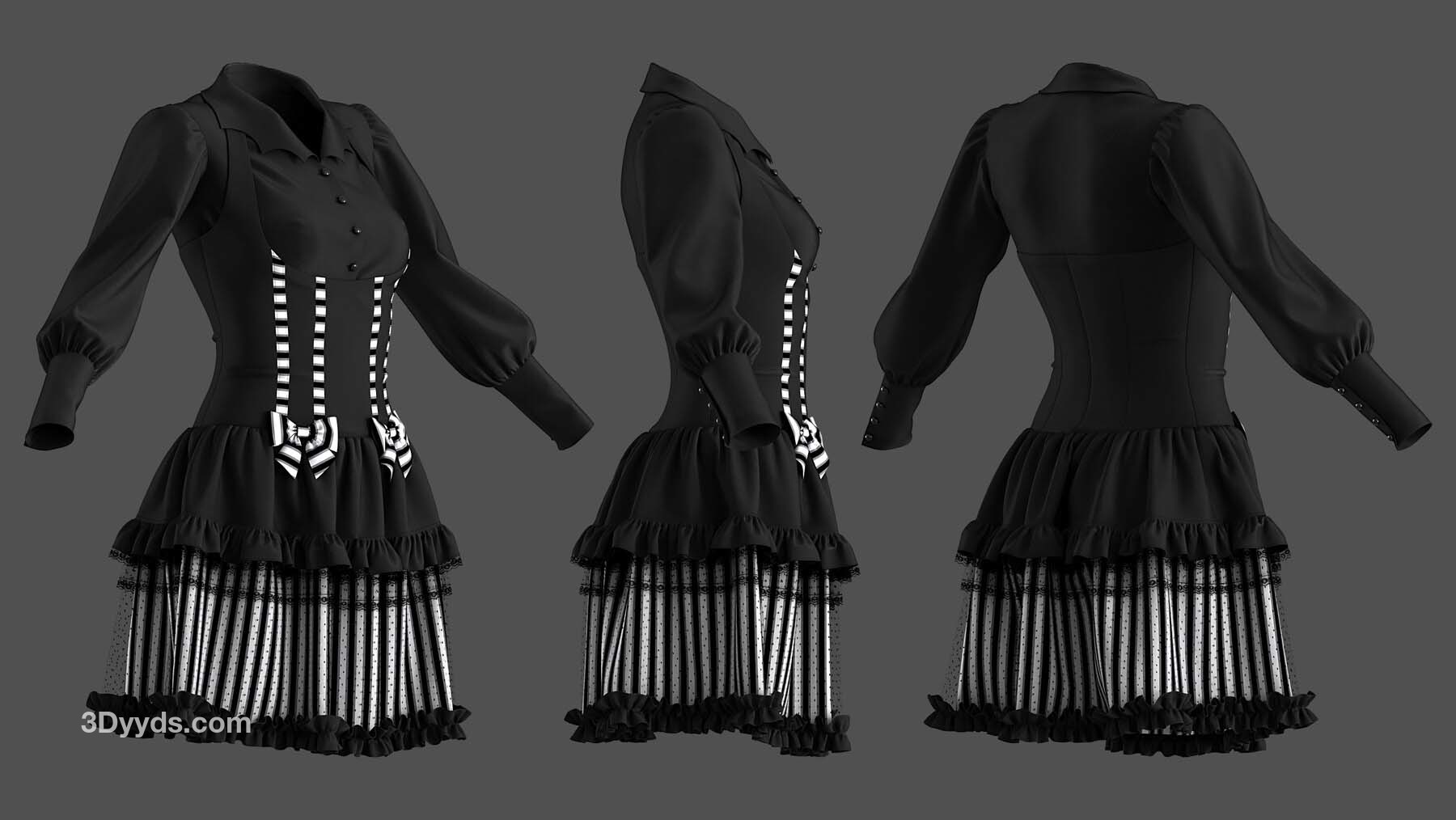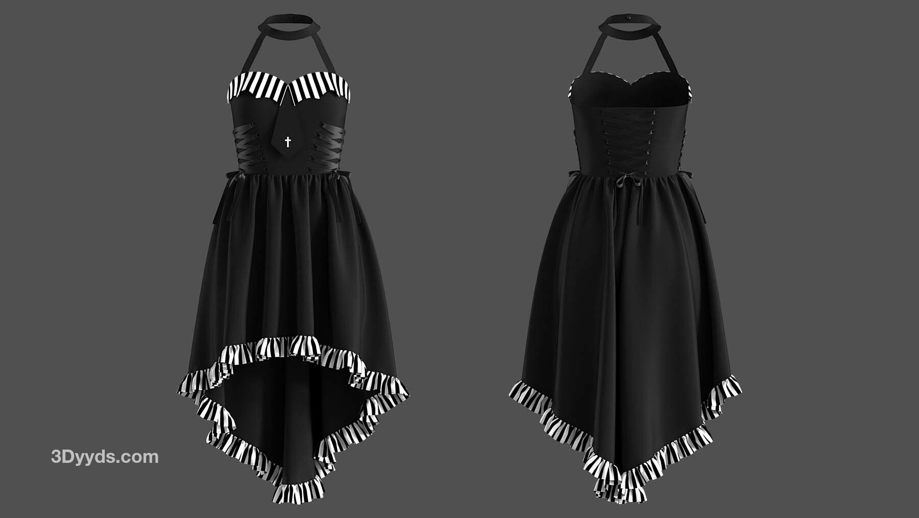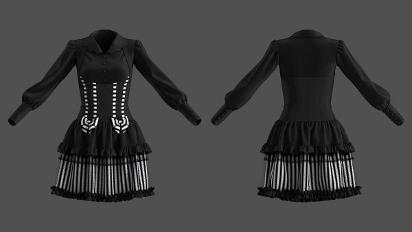 2 件哥特式连衣裙的高多边形 3D 模型