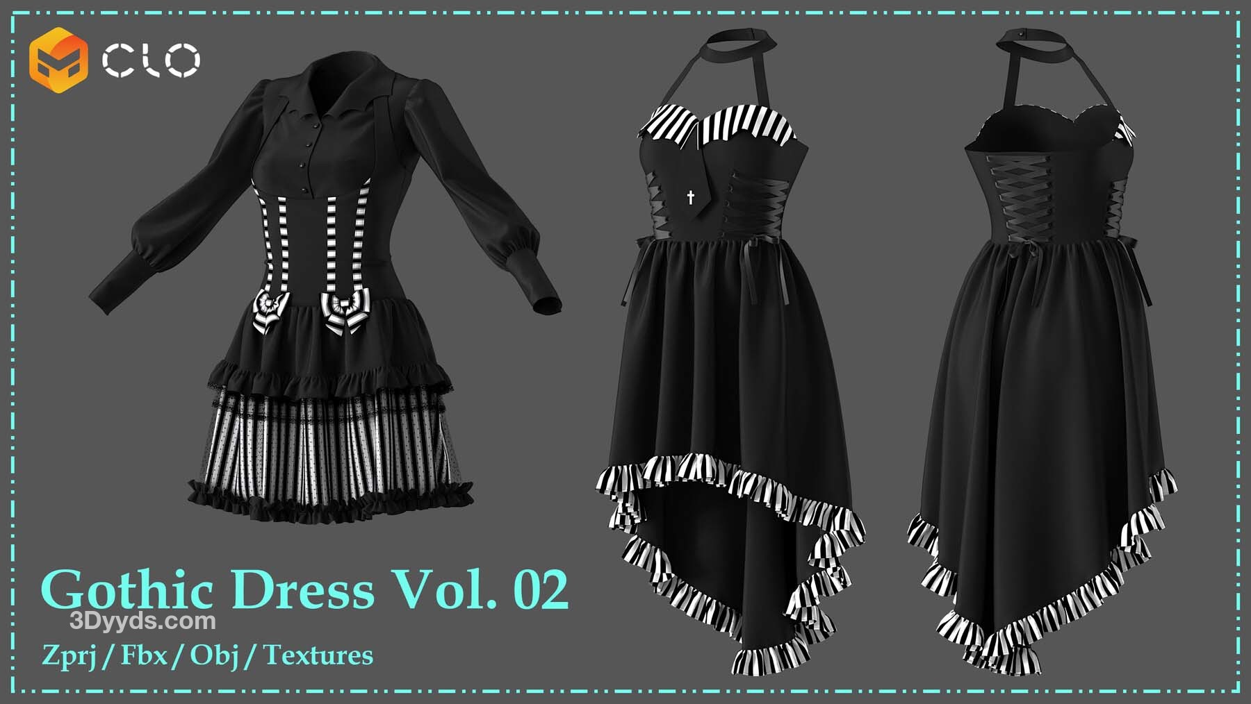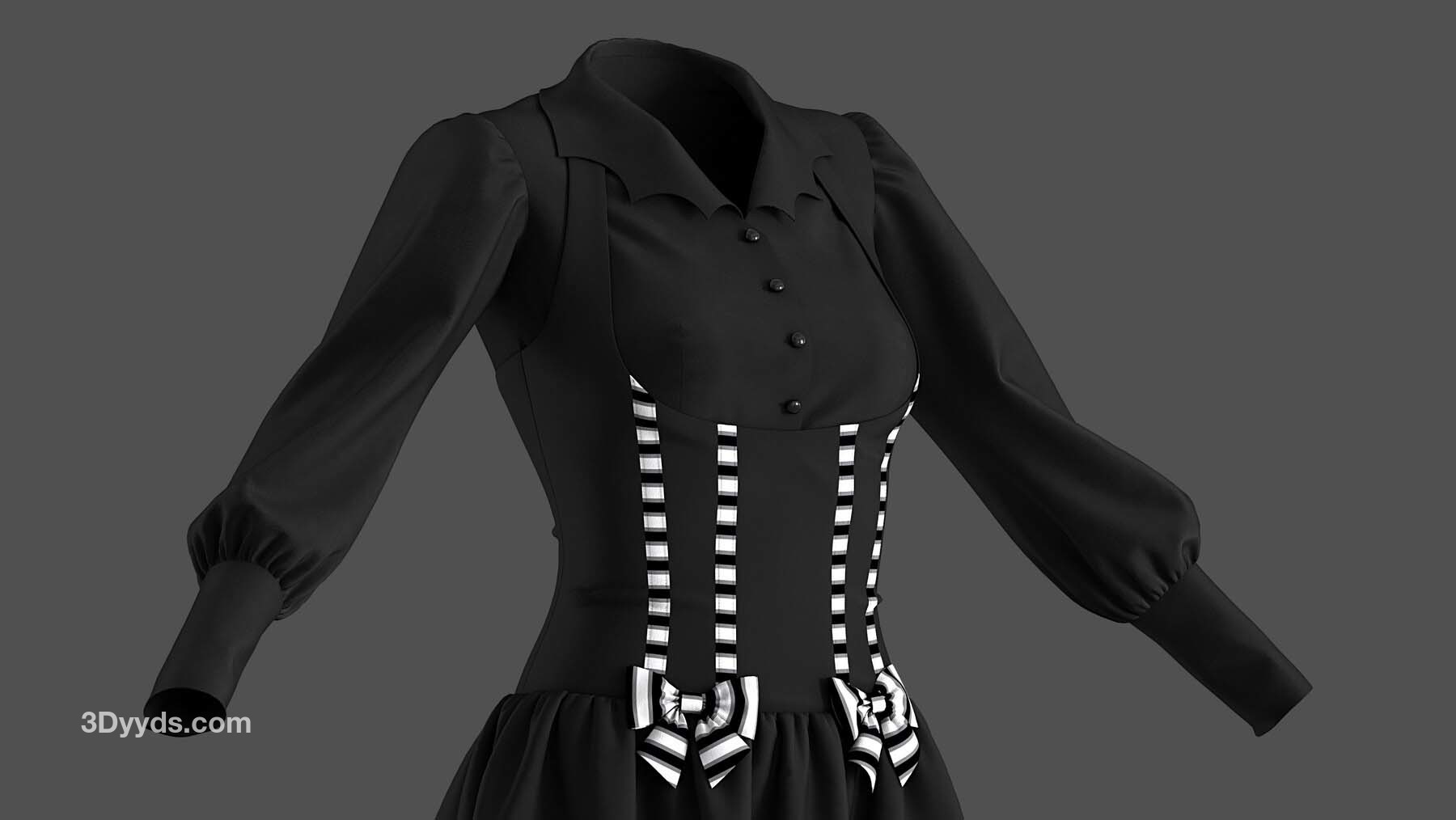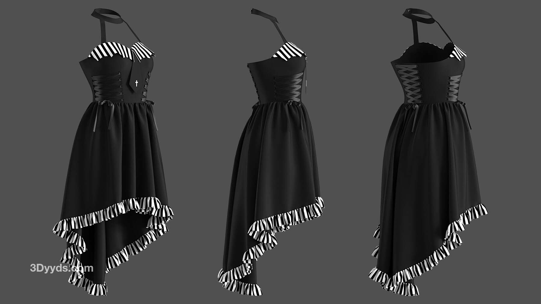 2 件哥特式连衣裙的高多边形 3D 模型