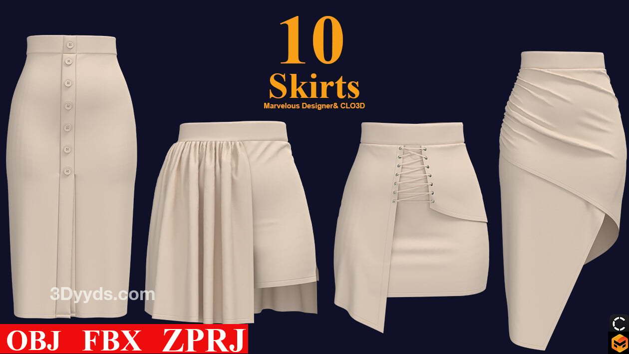 在这个包中,我们准备了 10 种基本型号的裙子,其中包括: