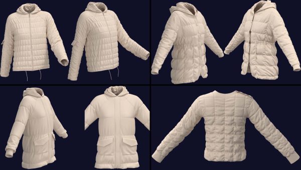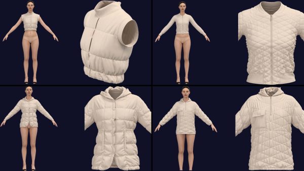在这个包中,我们准备了 7 款基本型号的女士羽绒服(在 clo3d 版本 6.2.234 中设计):
