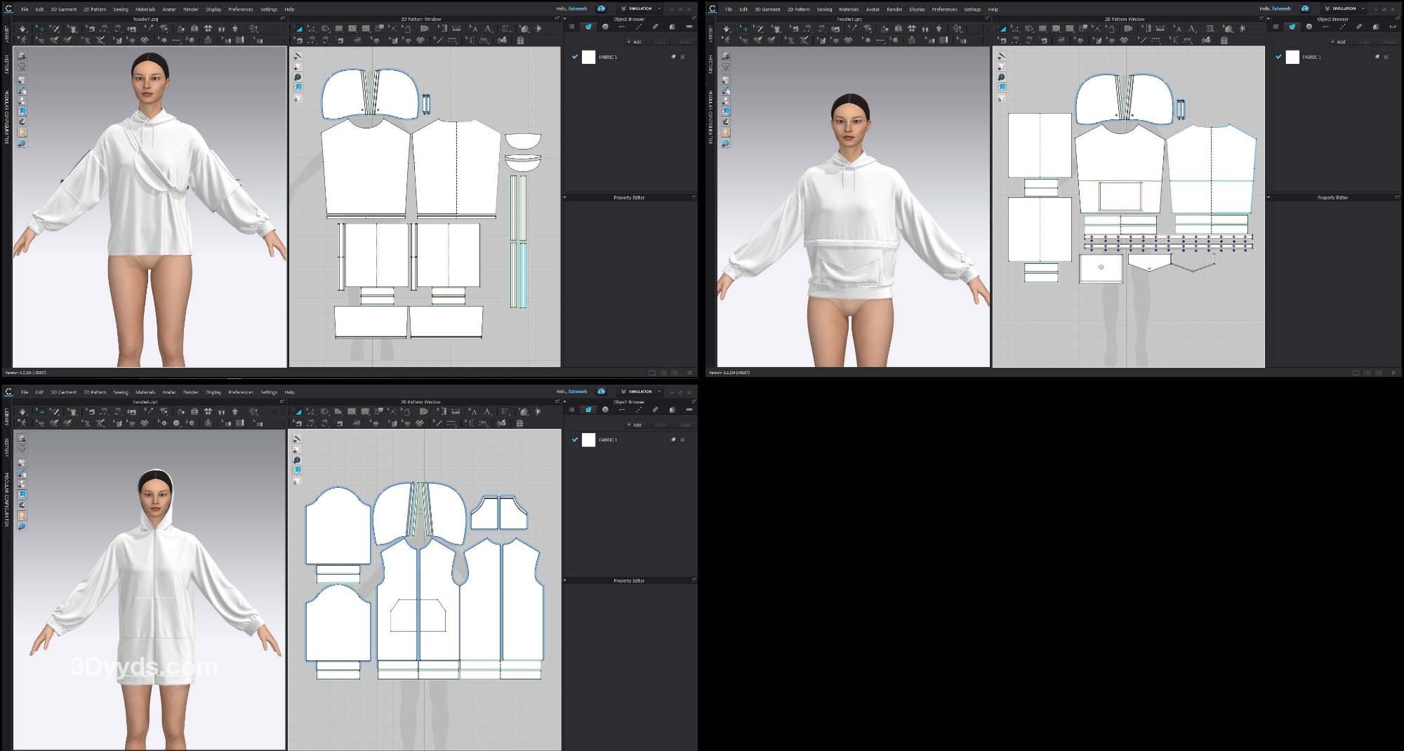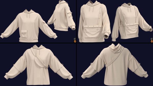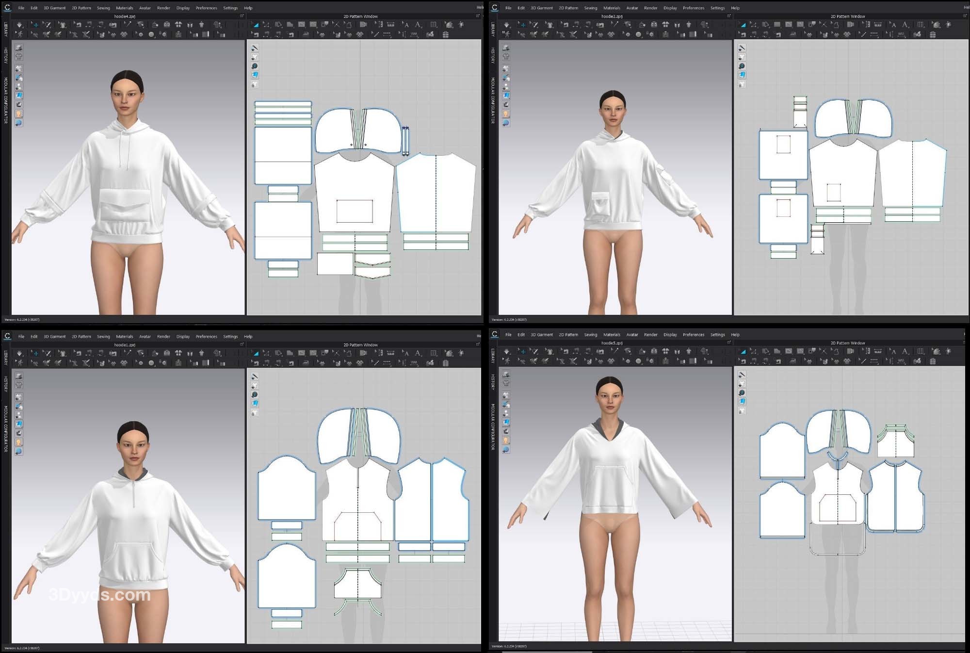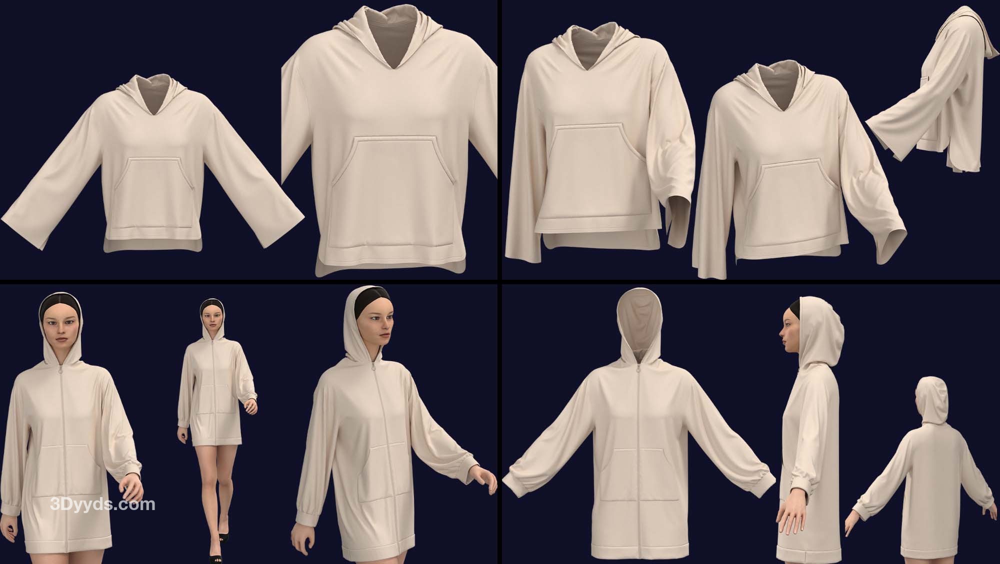在这个包中,我们准备了 7 款基本型号的女士连帽衫(在 clo3d 版本 6.2.234 中设计):