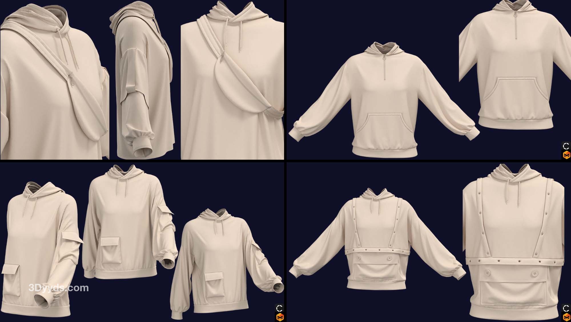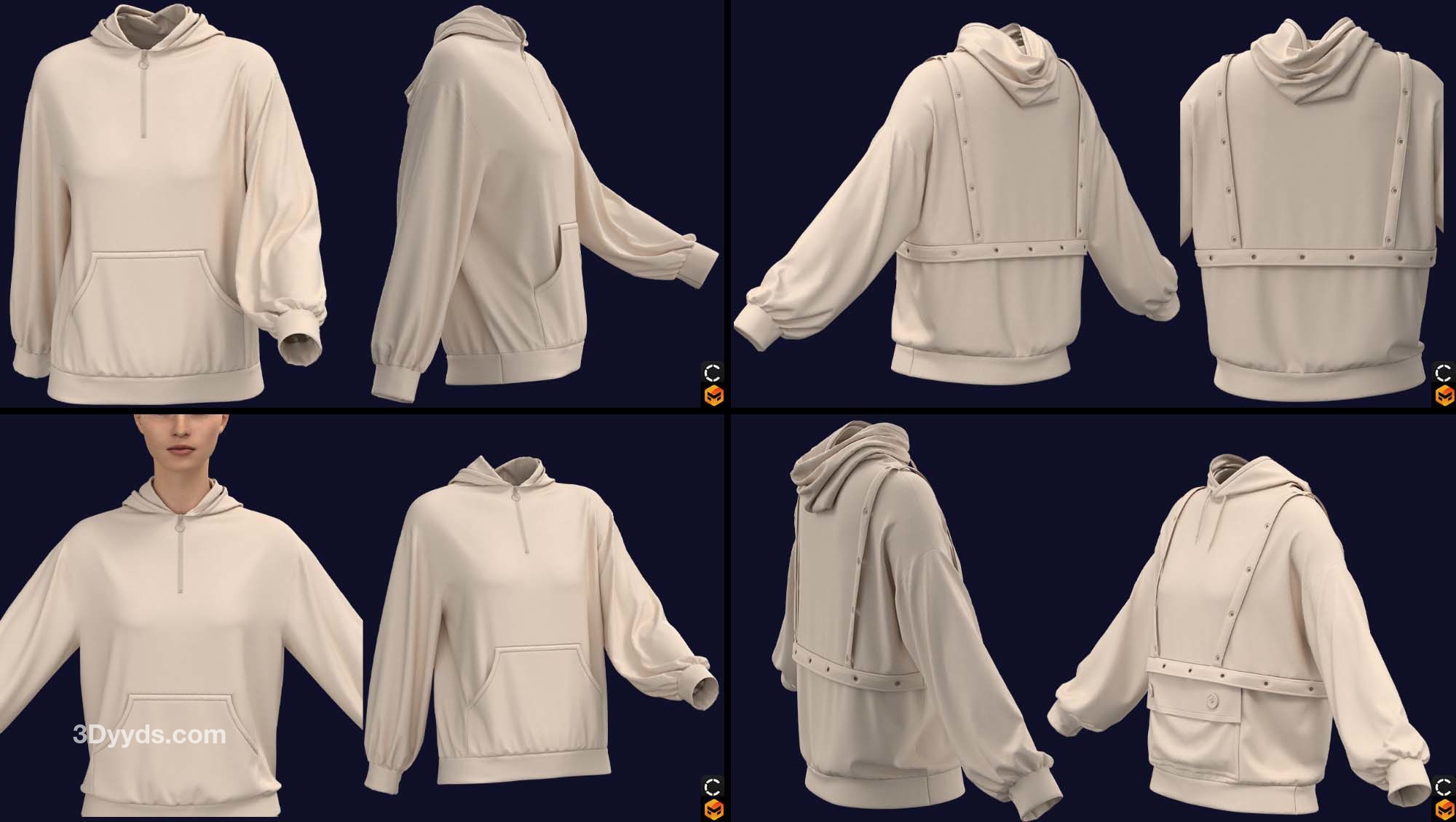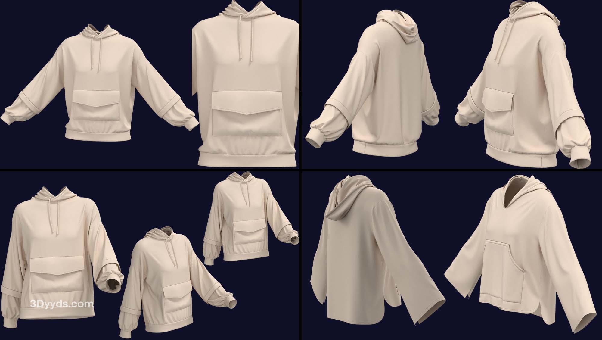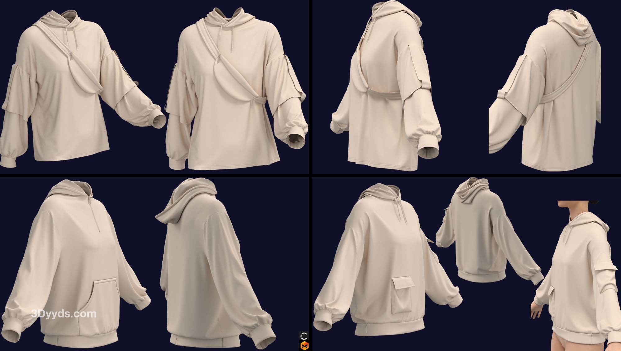 在这个包中,我们准备了 7 款基本型号的女士连帽衫(在 clo3d 版本 6.2.234 中设计):