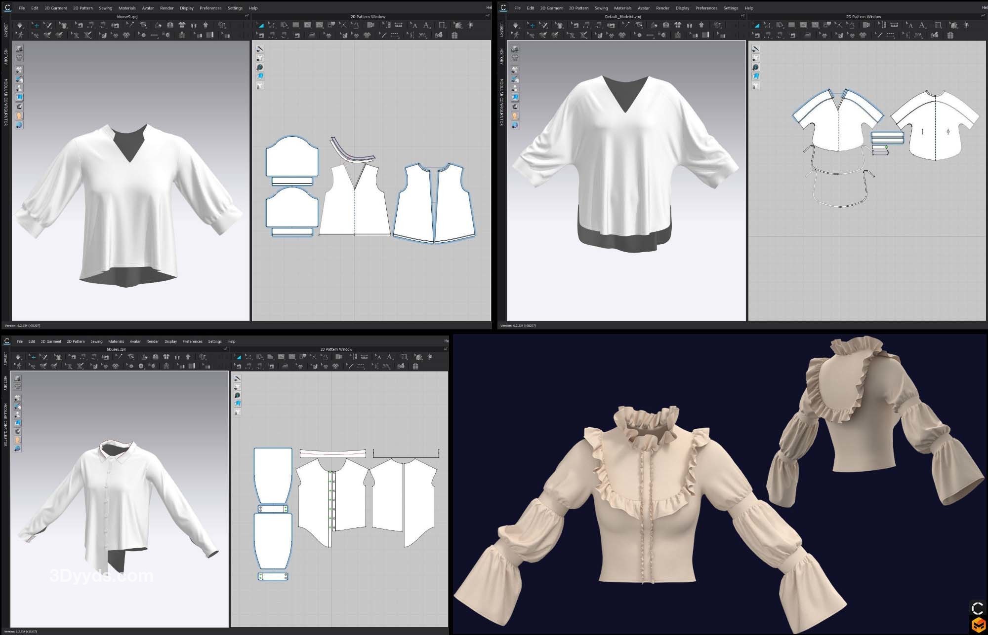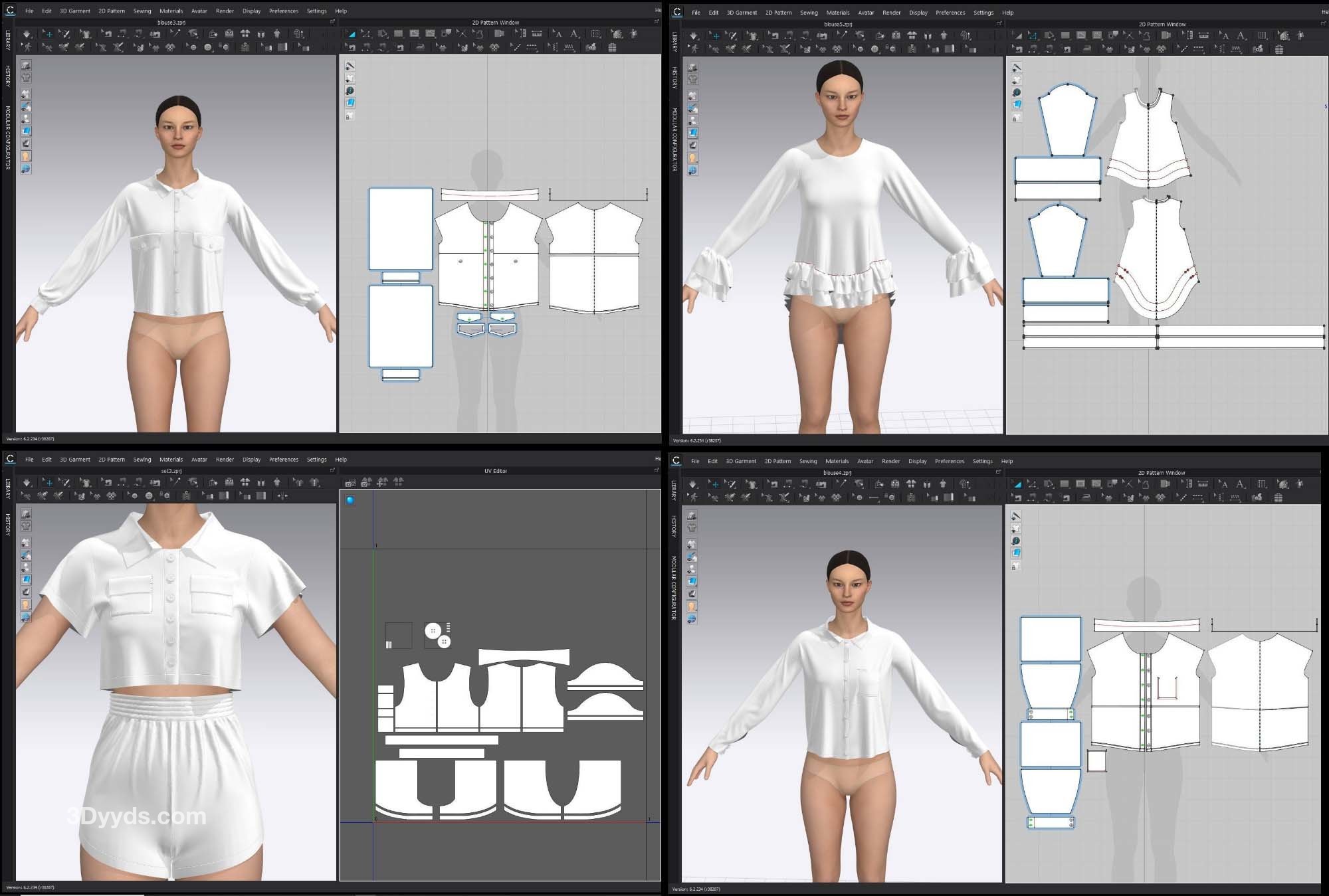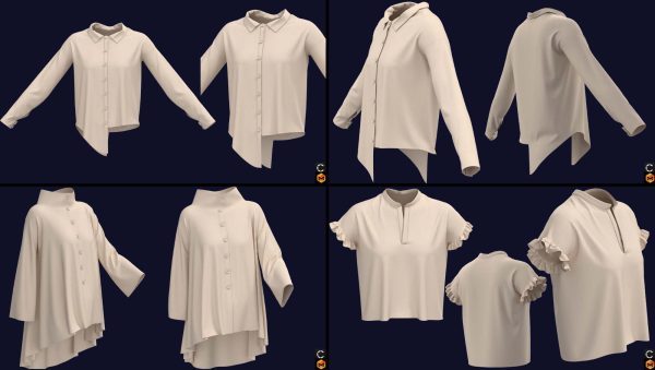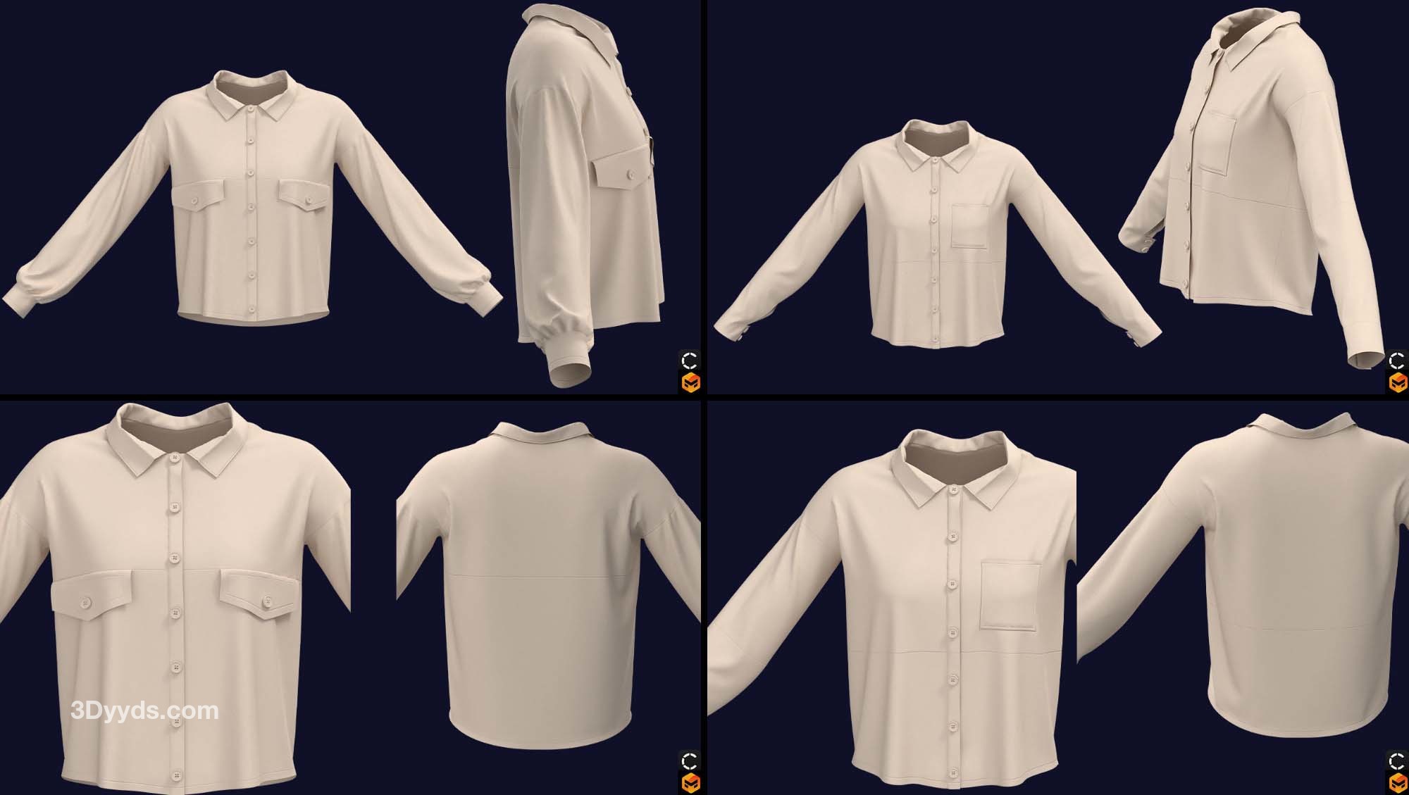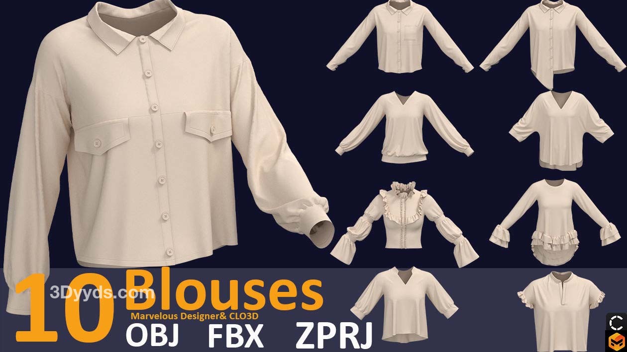 在这个包中,我们准备了 10 款基本款式的女式衬衫(在 clo3d 版本 6.2.234 中设计):