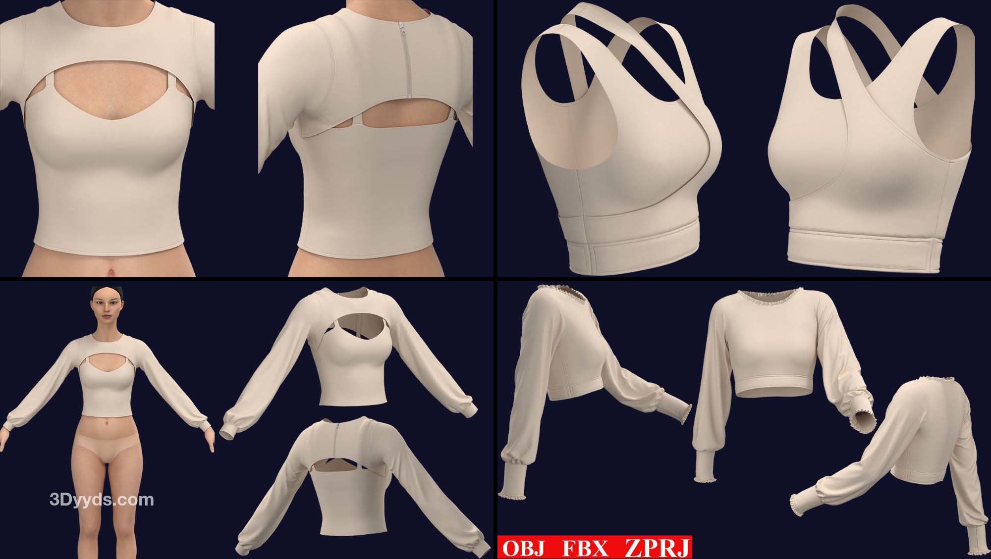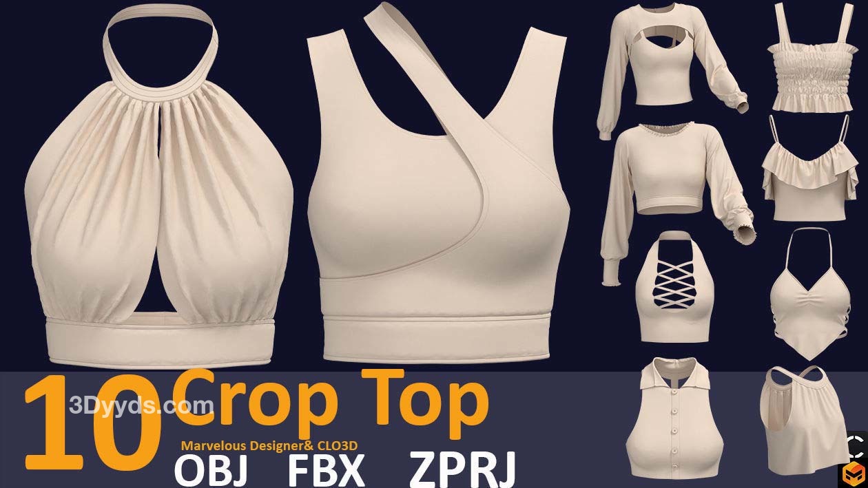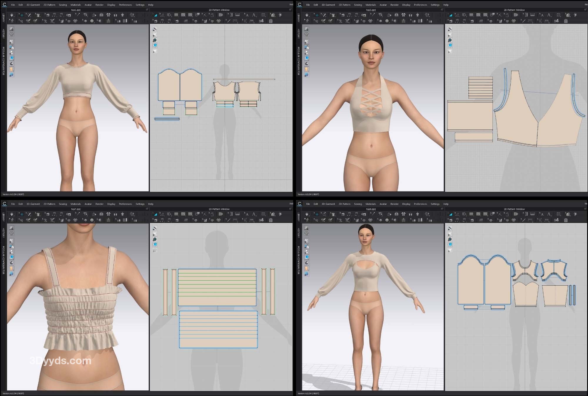 在这个包中,我们准备了 10 款基本型号的女士露脐上衣(在 clo3d 版本 6.2.234 中设计):