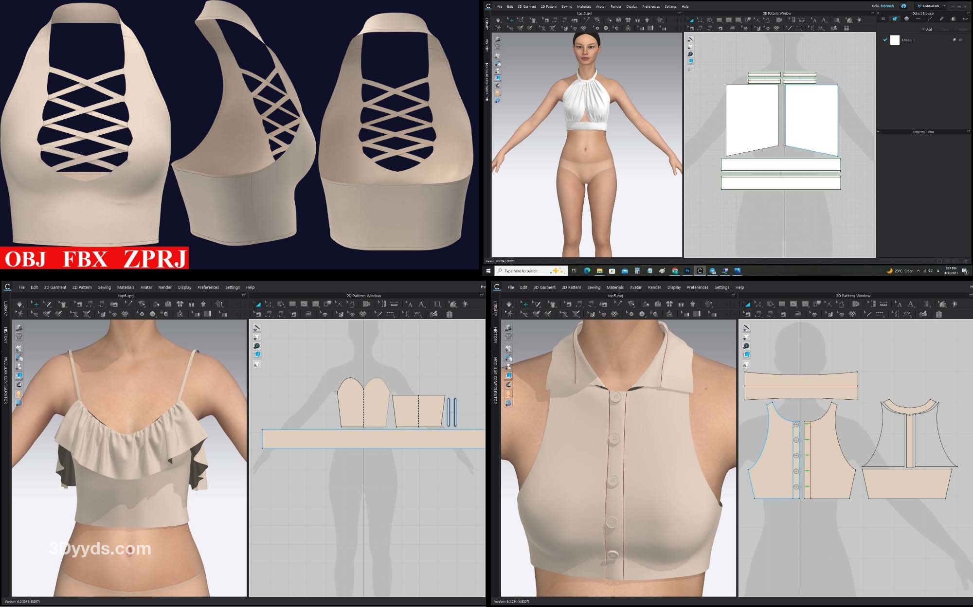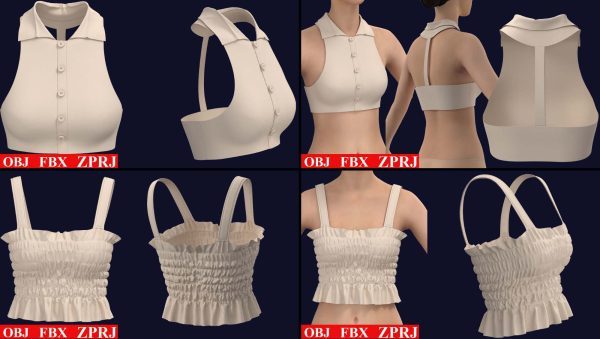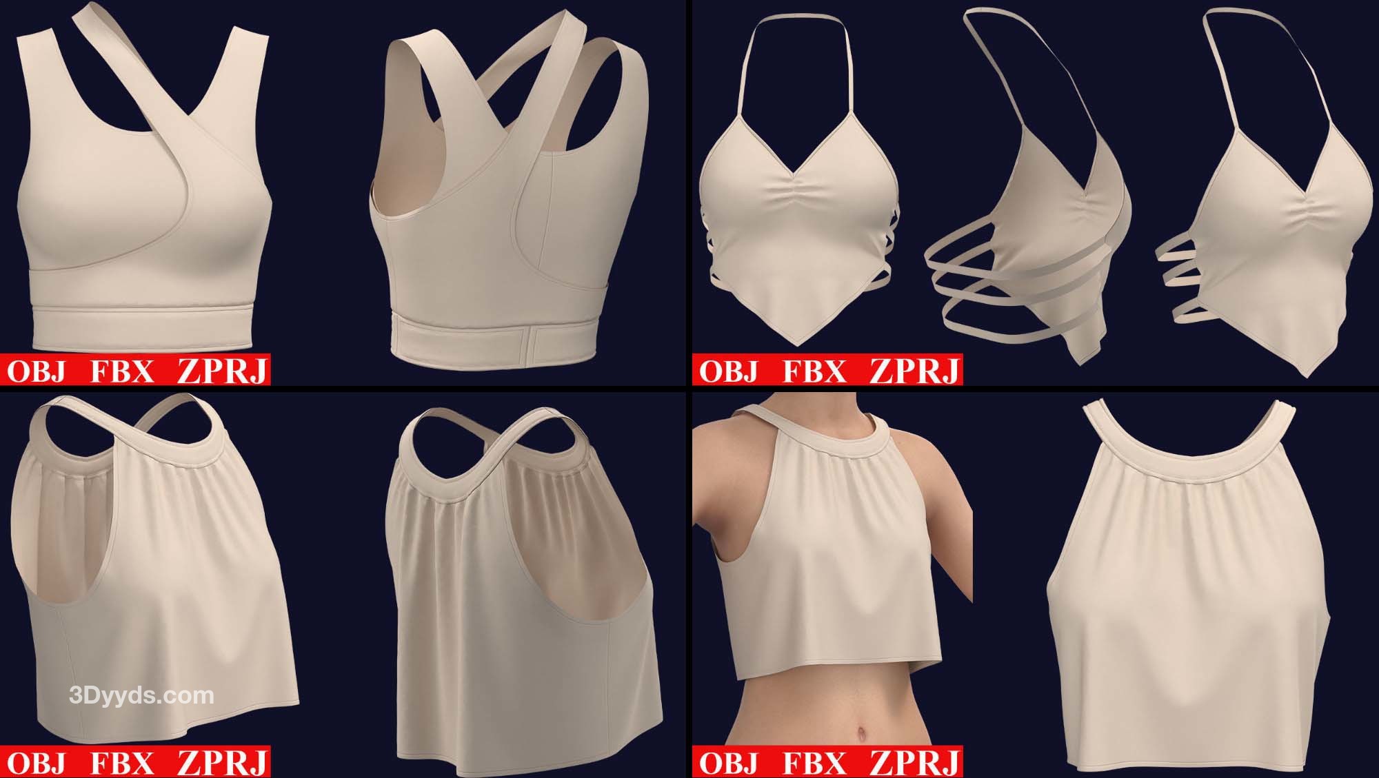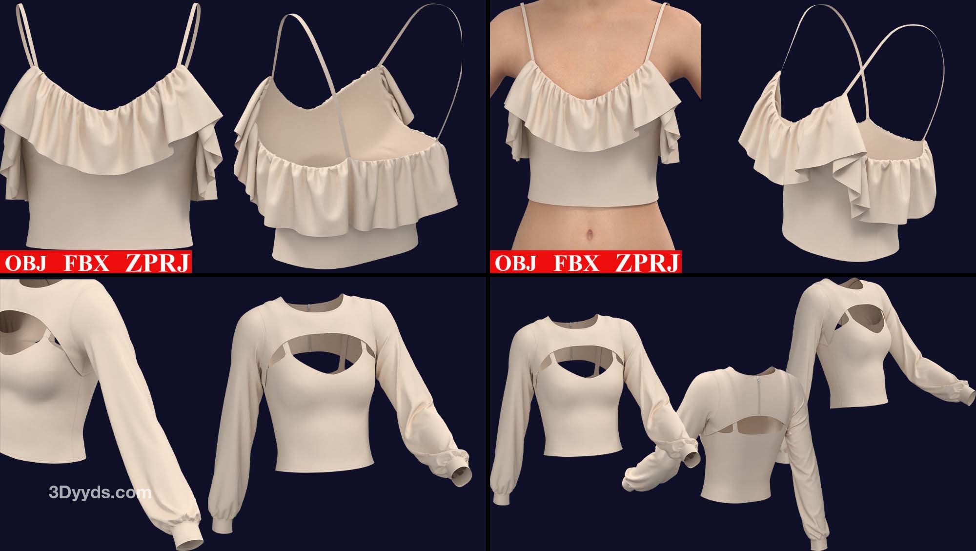在这个包中,我们准备了 10 款基本型号的女士露脐上衣(在 clo3d 版本 6.2.234 中设计):