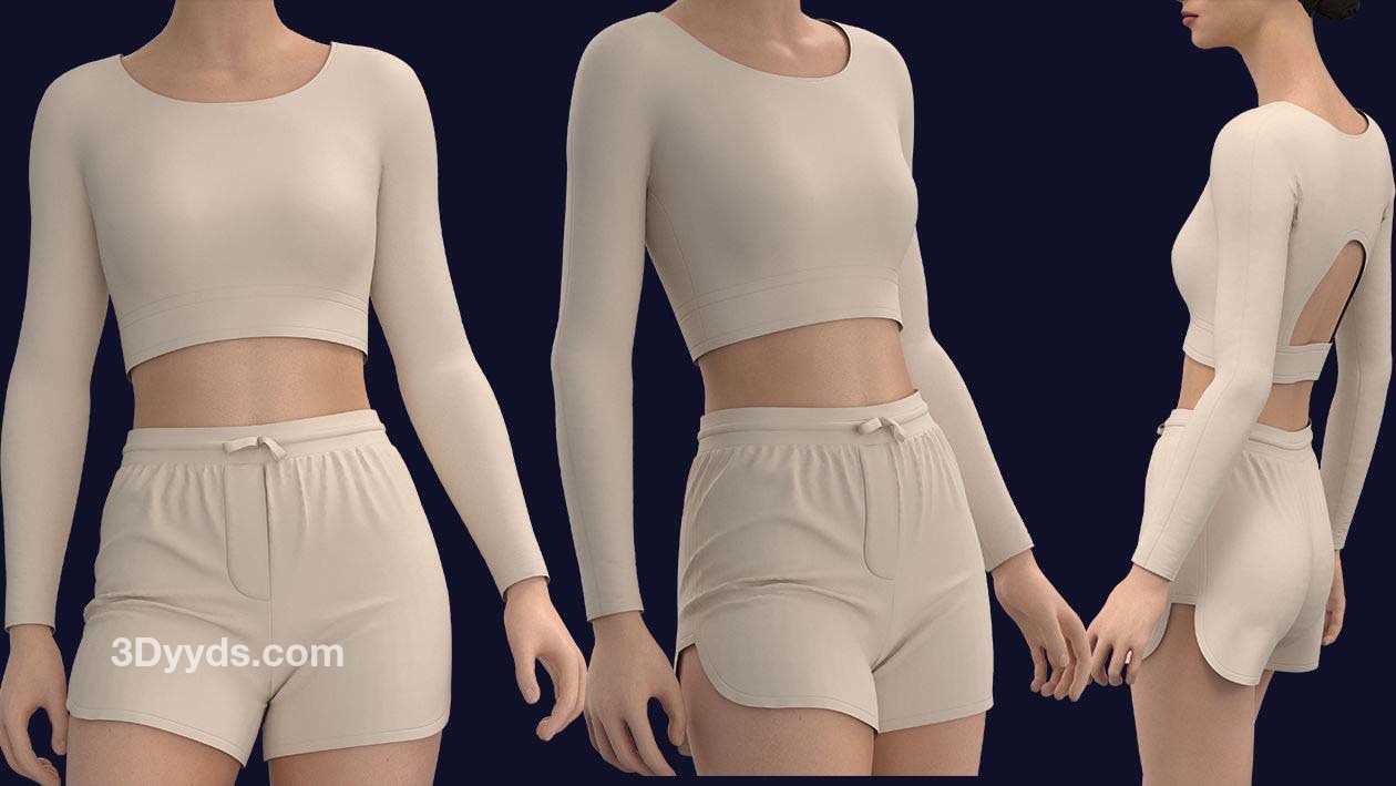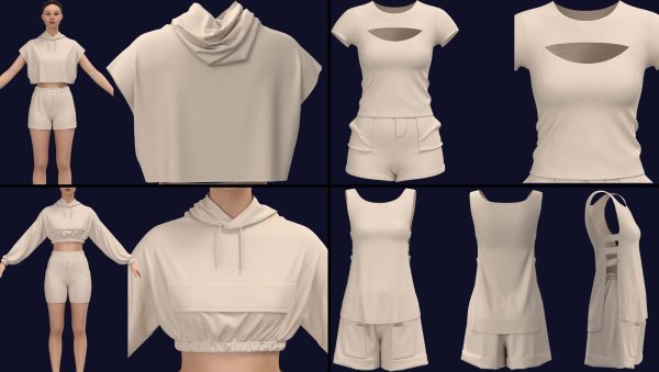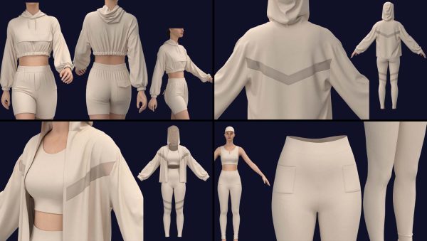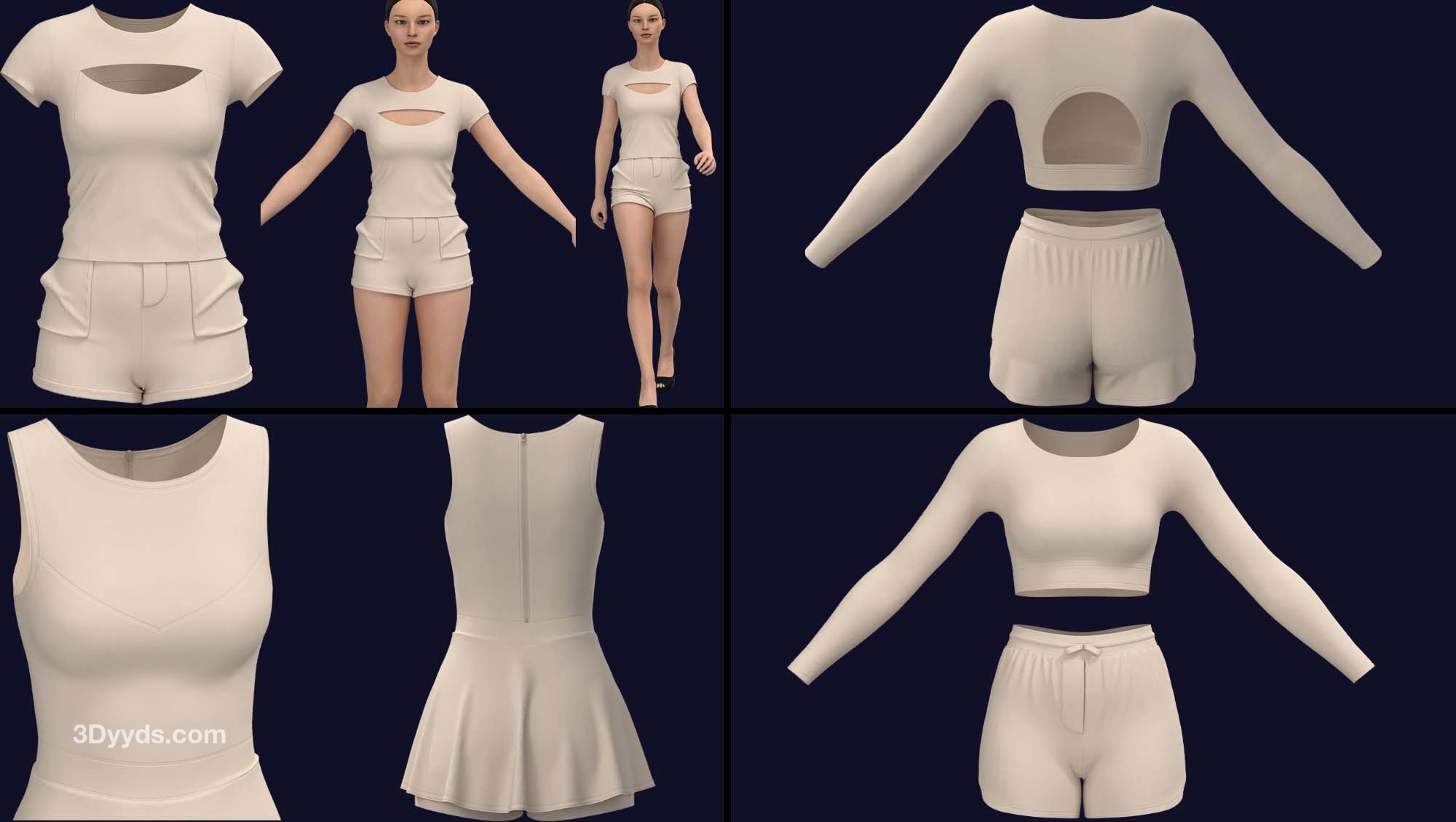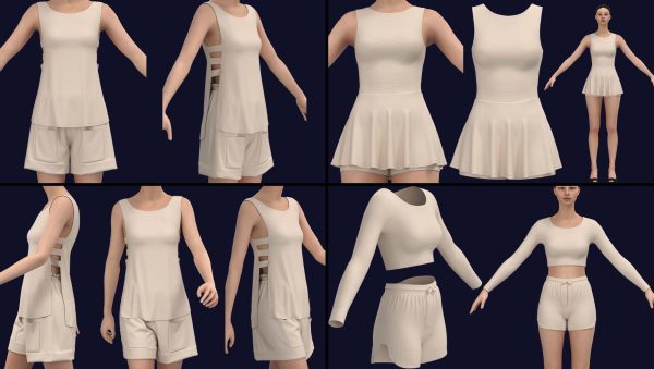在此包中,我们准备了 10 款基本款式的女士运动服(在 clo3d 版本 6.2.234 中设计):