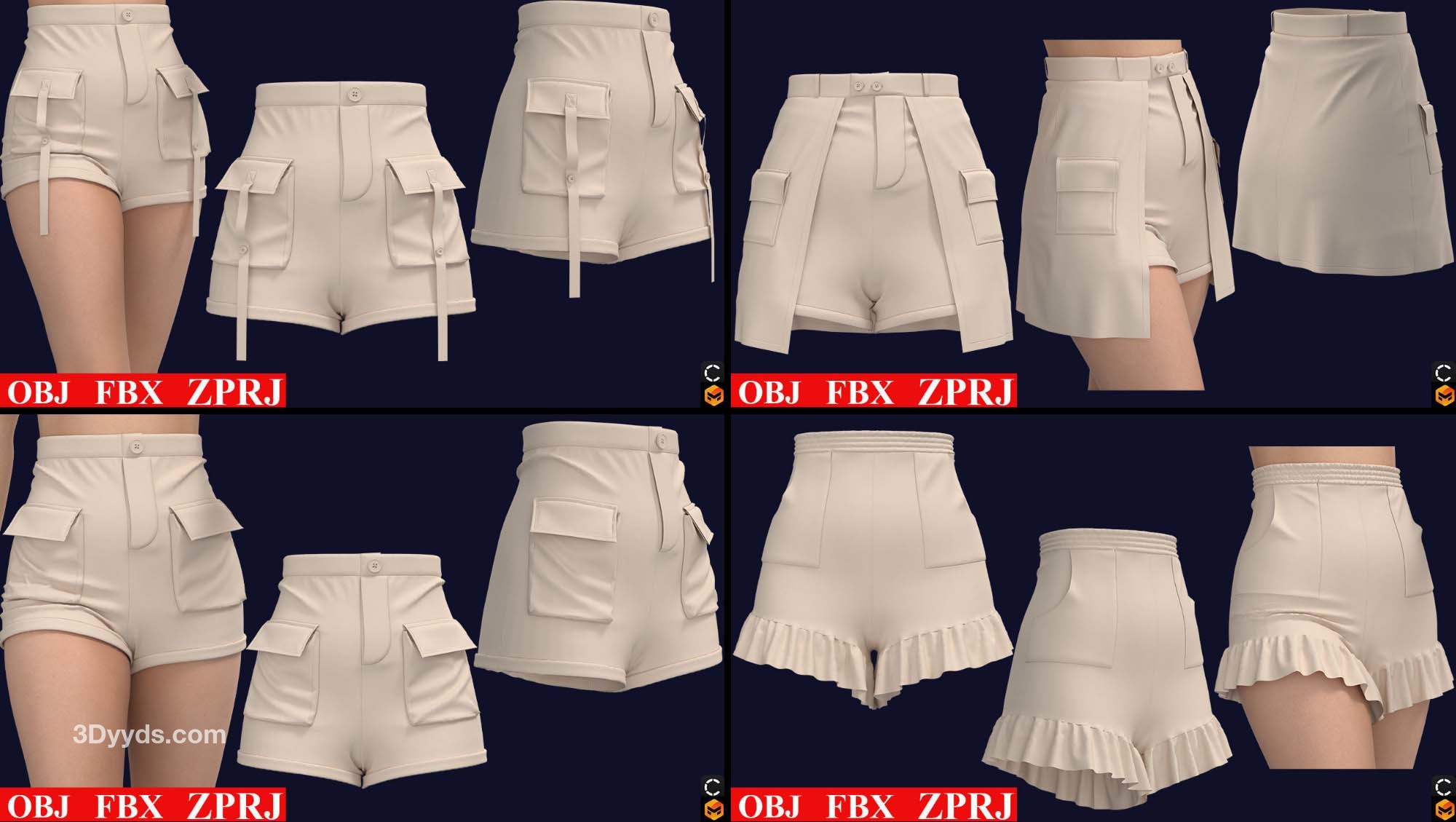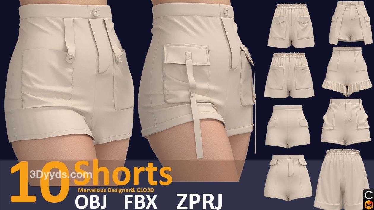 在这个包中,我们准备了 10 款女士短裤(在 clo3d 版本 6.2.234 中设计):