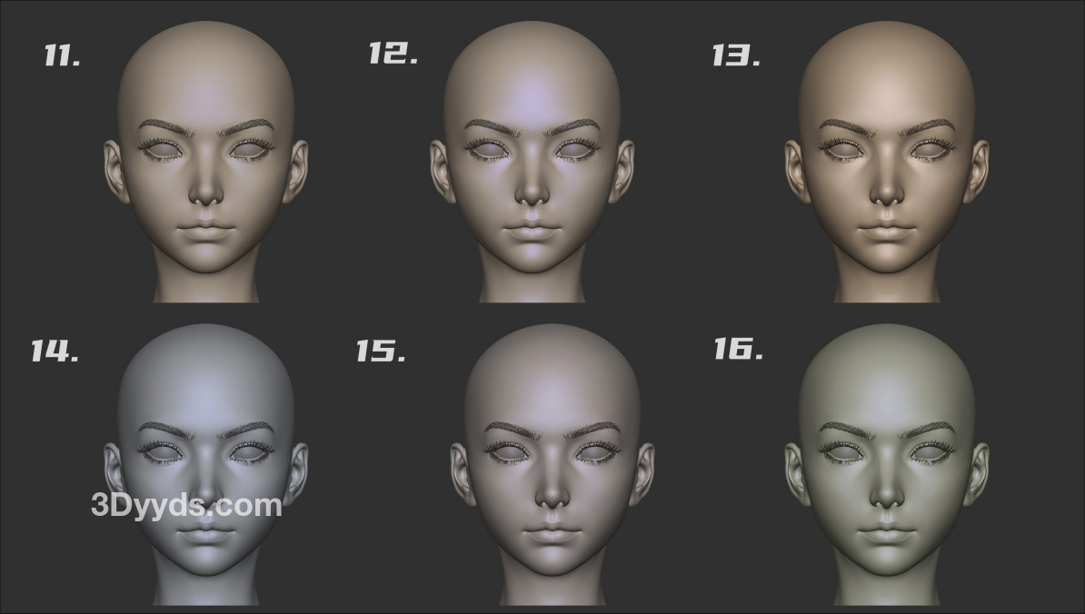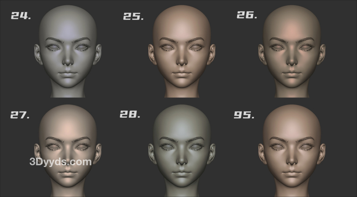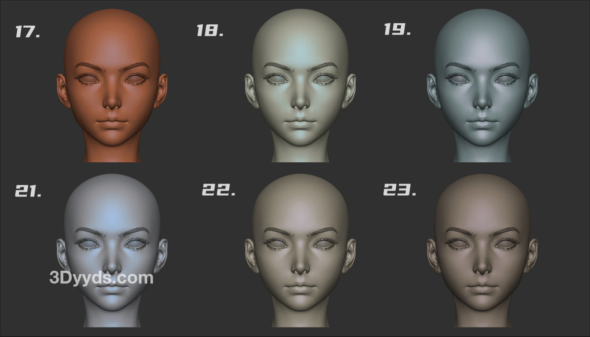 zbrush材质球26-Z系列材质球常用人头雕刻材质