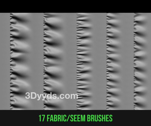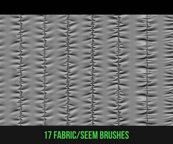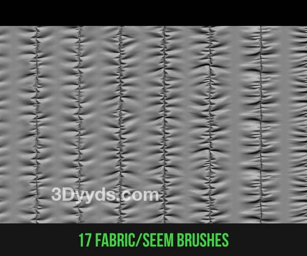 这是一个包含17种布料/接缝笔刷的套装,制作于Zbrush 2019。