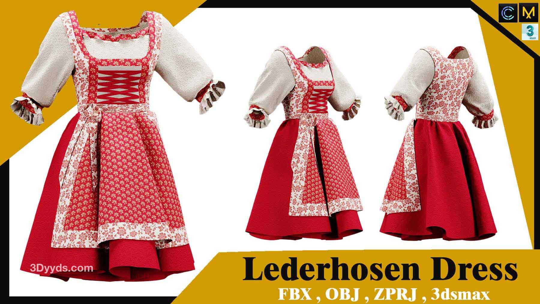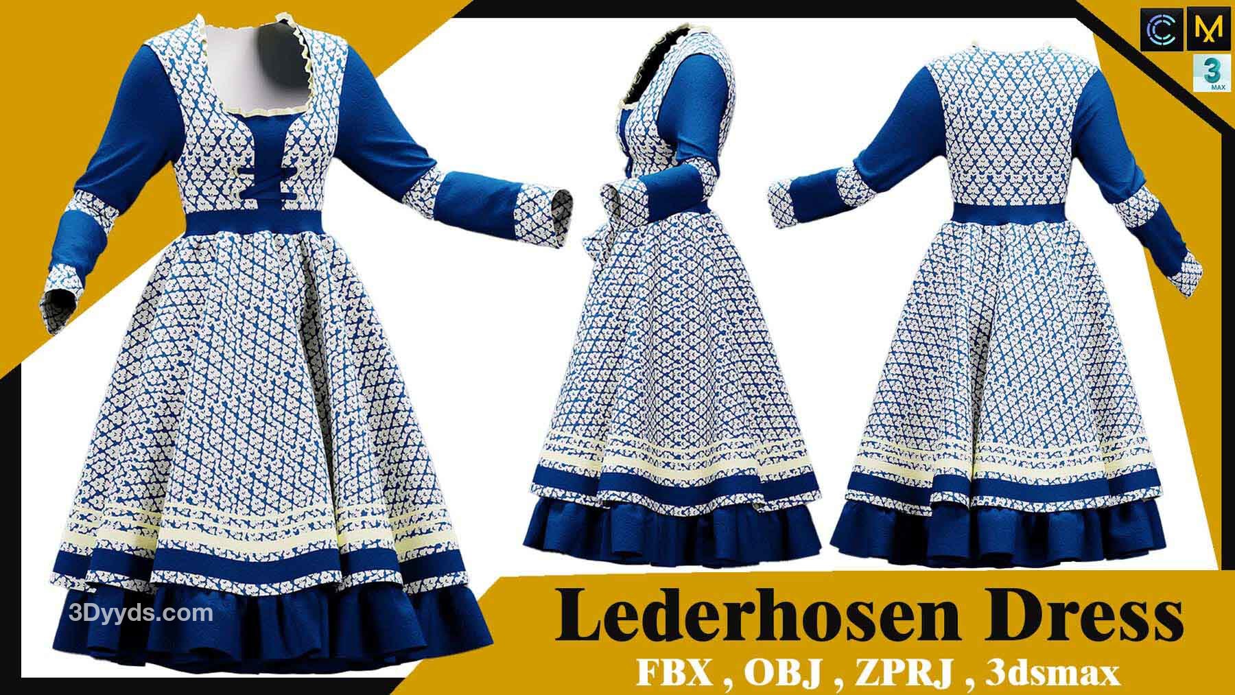 德国传统服饰 皮裤是德国传统服装的名称。在这个系列中,有 5 种德国传统服装模型,其中 0 到 100 种是在 Marvelous Designer 软件中设计的,并在 3dsmax 软件中实现。