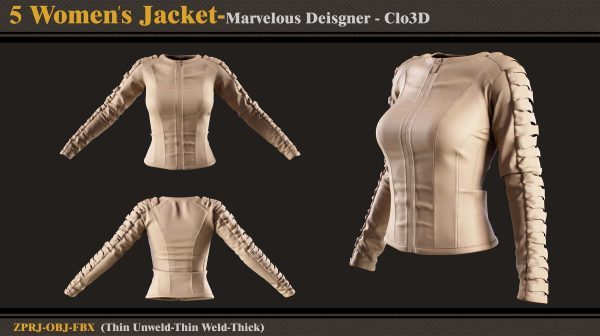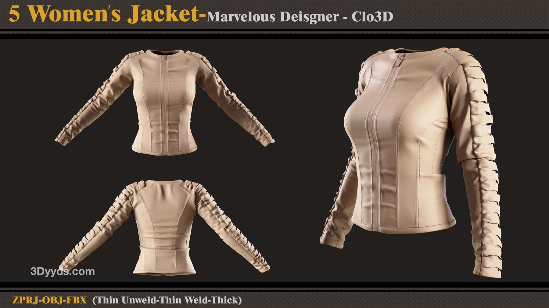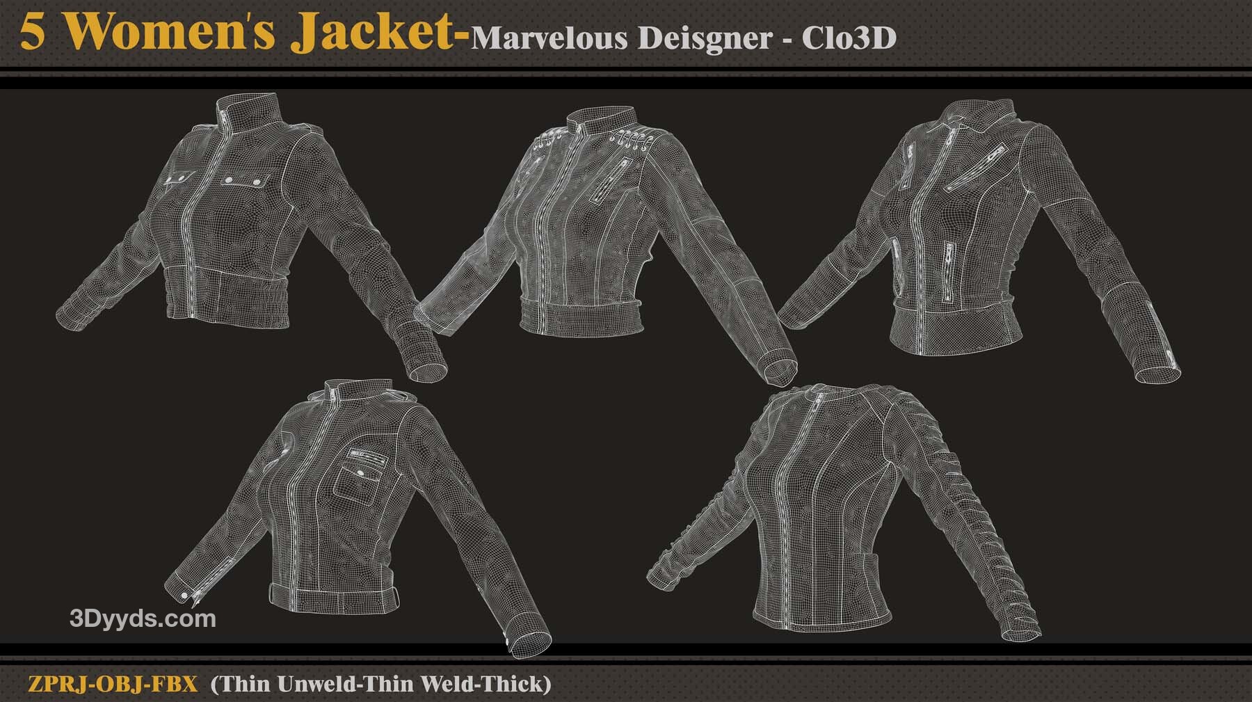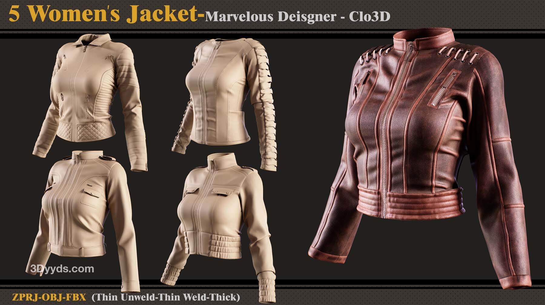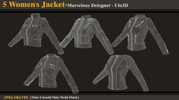 本产品包含 5 件女式夹克和 5 件文件。在每个文件中,有: