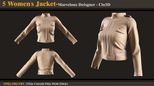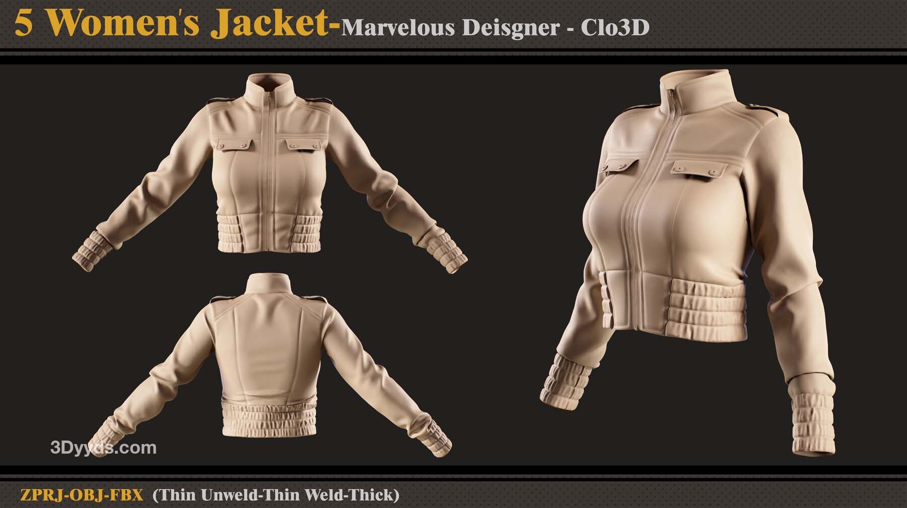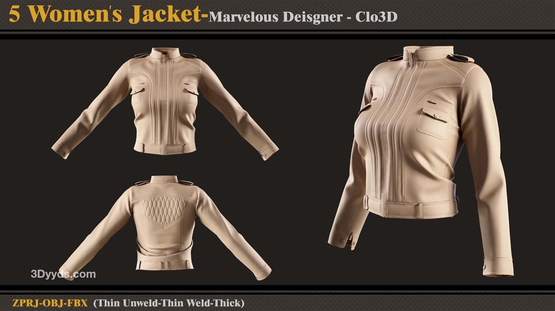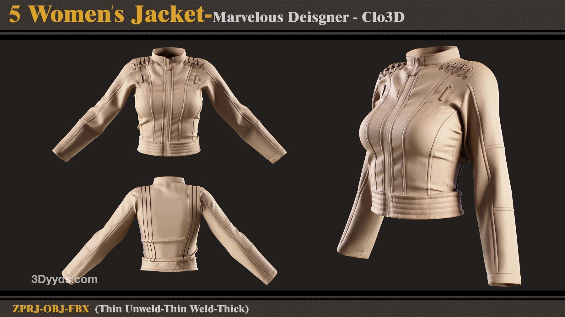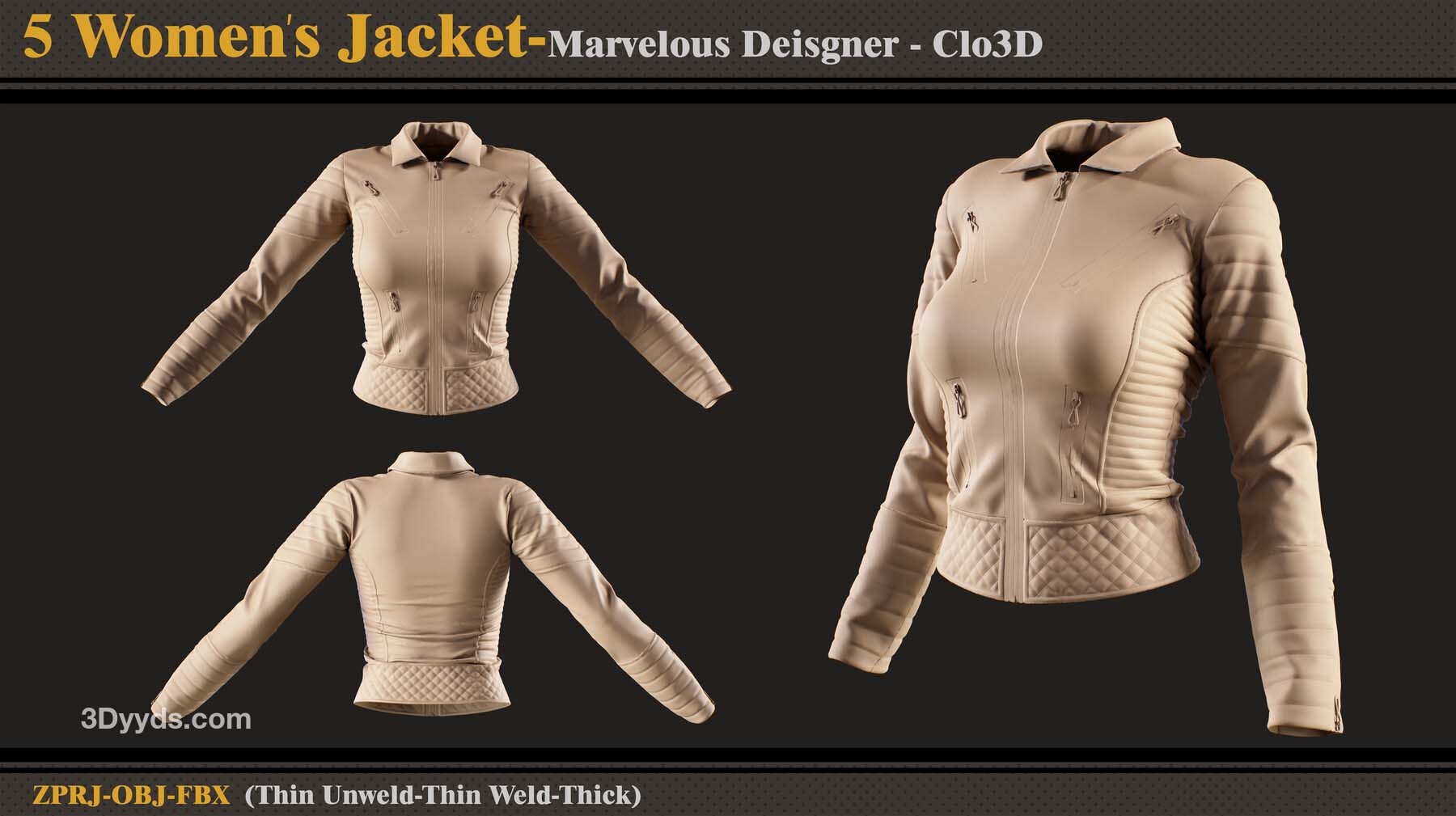 本产品包含 5 件女式夹克和 5 件文件。在每个文件中,有: