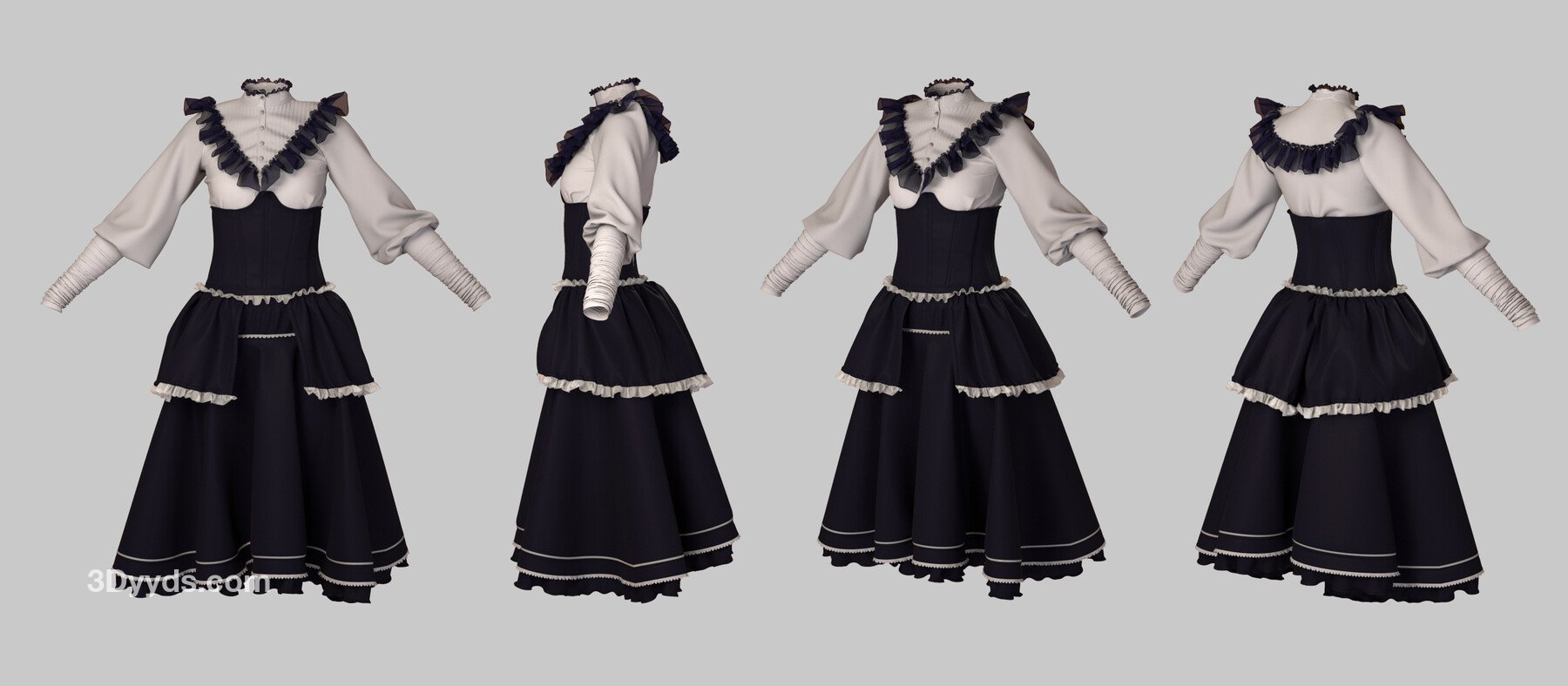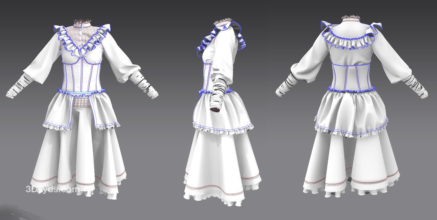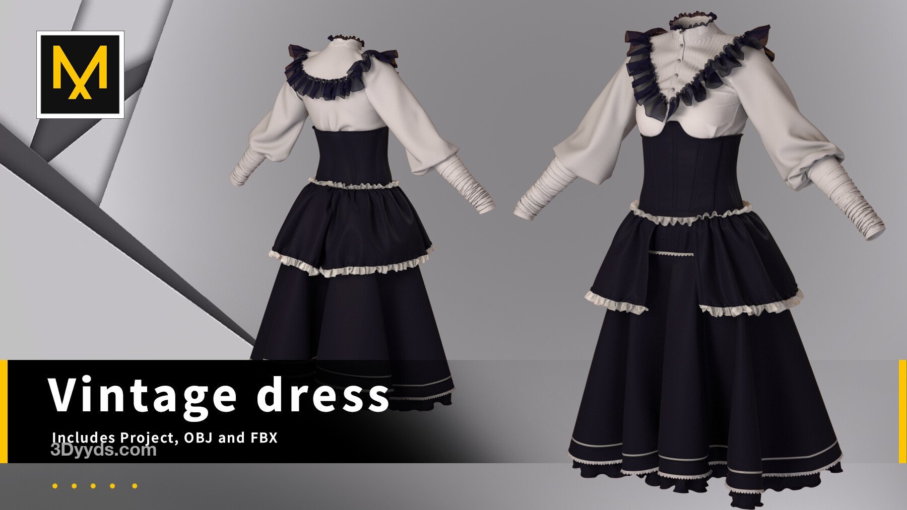 复古连衣裙(了不起的设计师,Clo3d)+obj+fbx+project