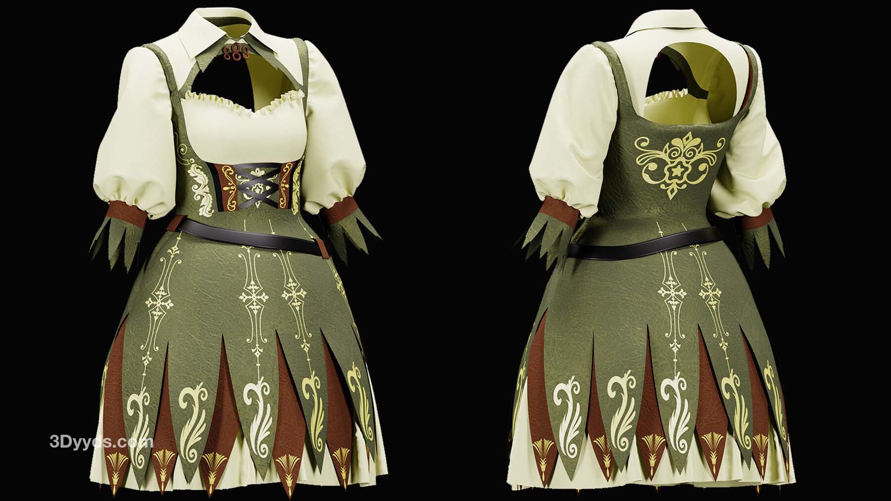 0 到 100 这个系列的设计是在 Marvelous Designer 软件中完成的,衣服上的设计是在 Illustrator 软件中设计的,腰带是在 3dsmax 软件中设计的。