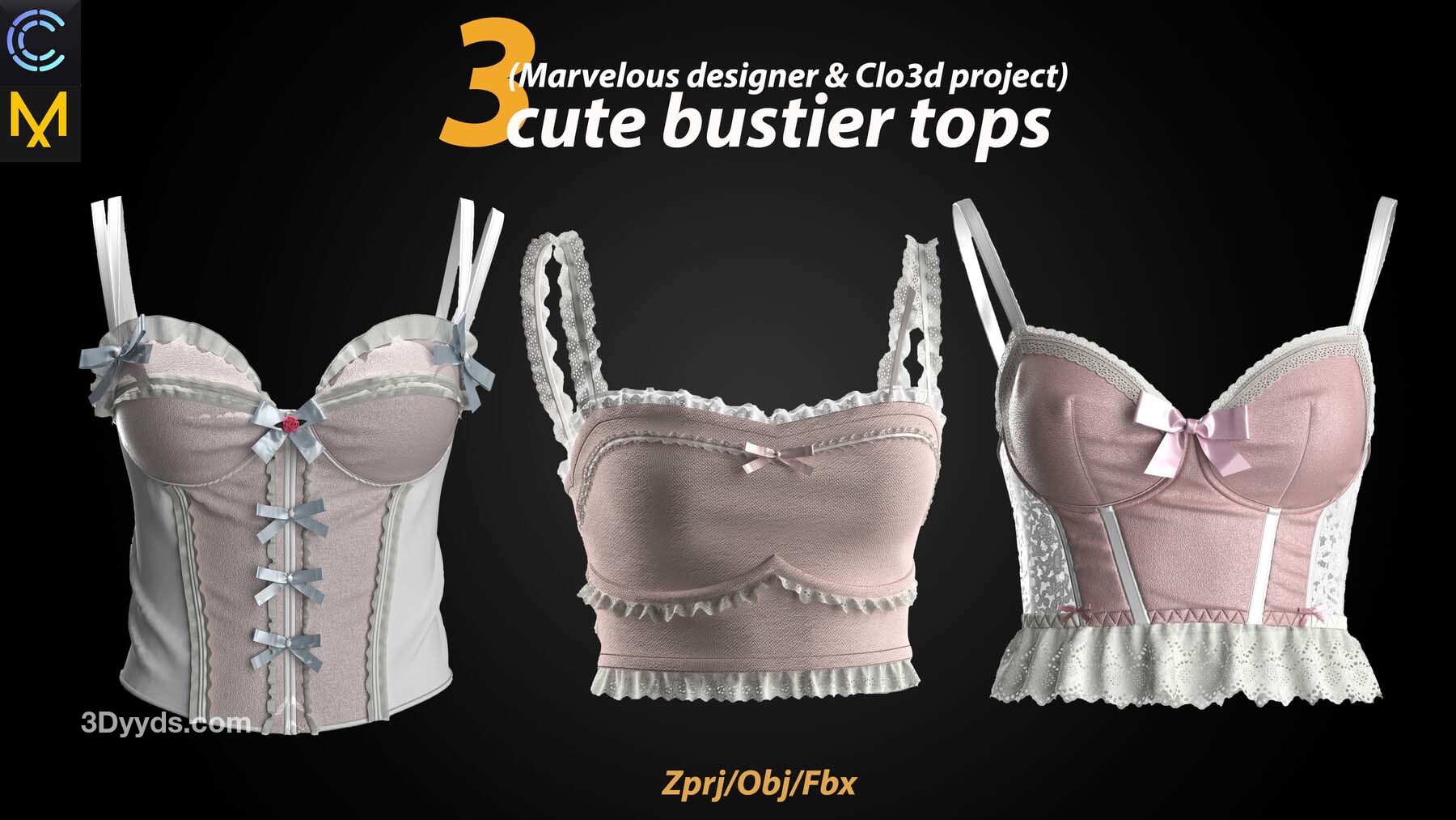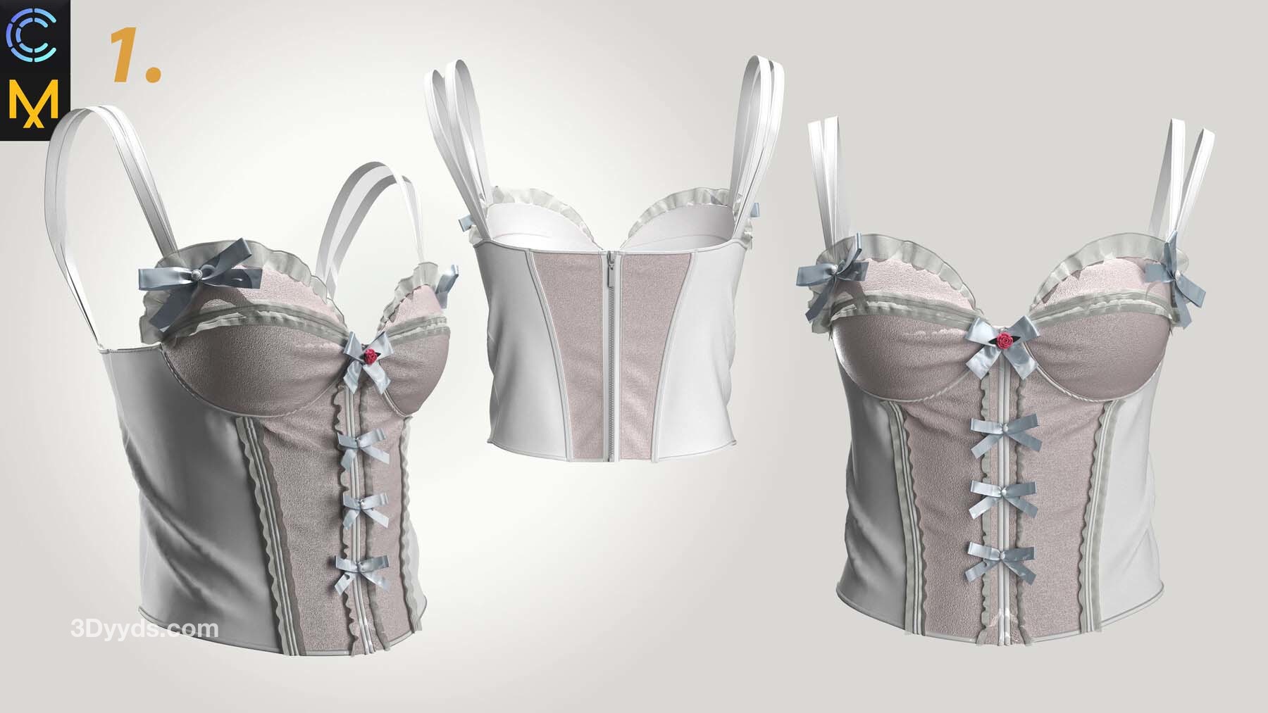 3 件可爱的女士紧身胸衣上衣