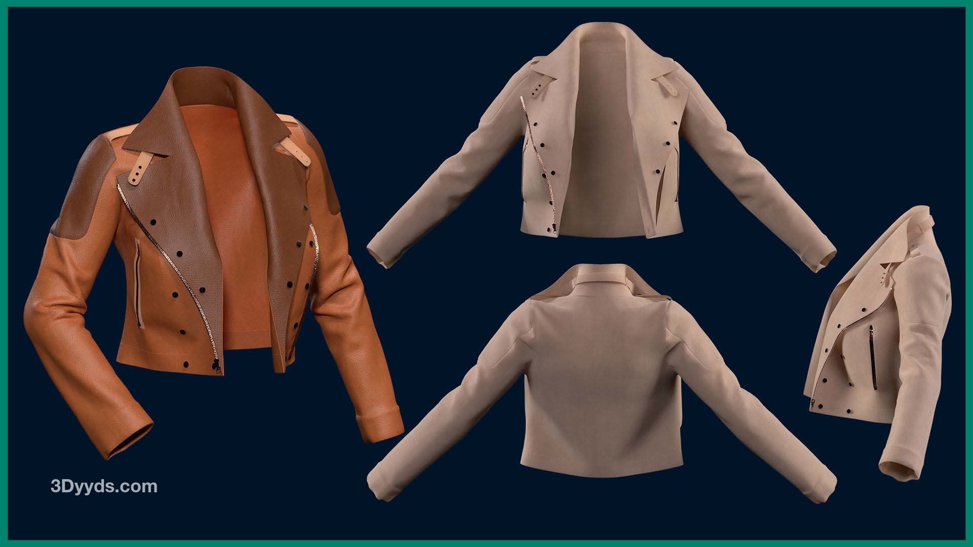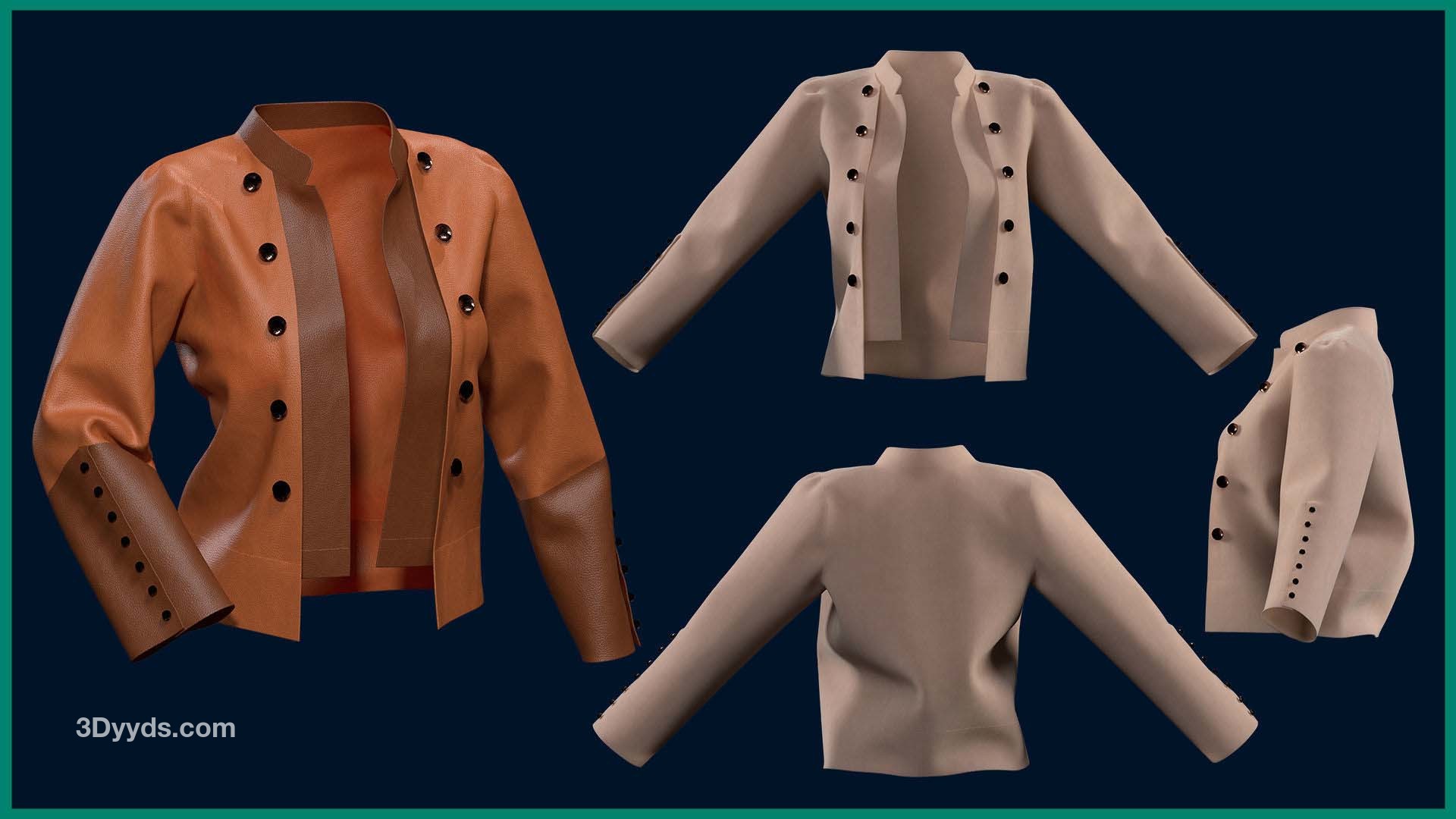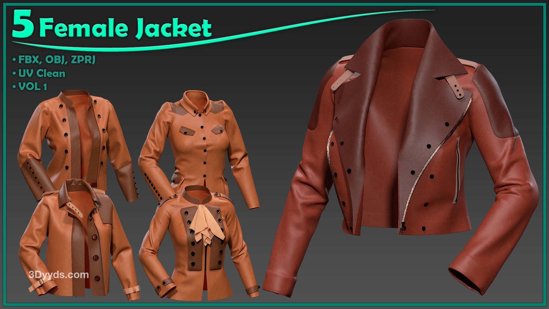 本产品包含 5 个女性夹克和 5 个文件。在每个文件中,有: