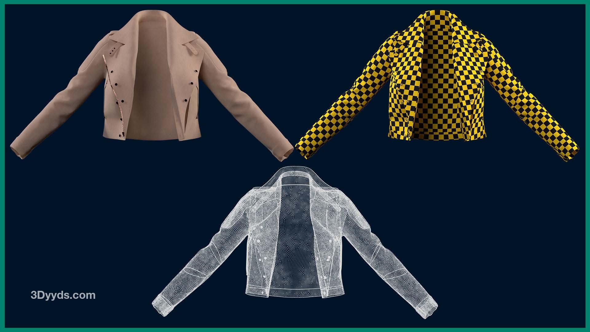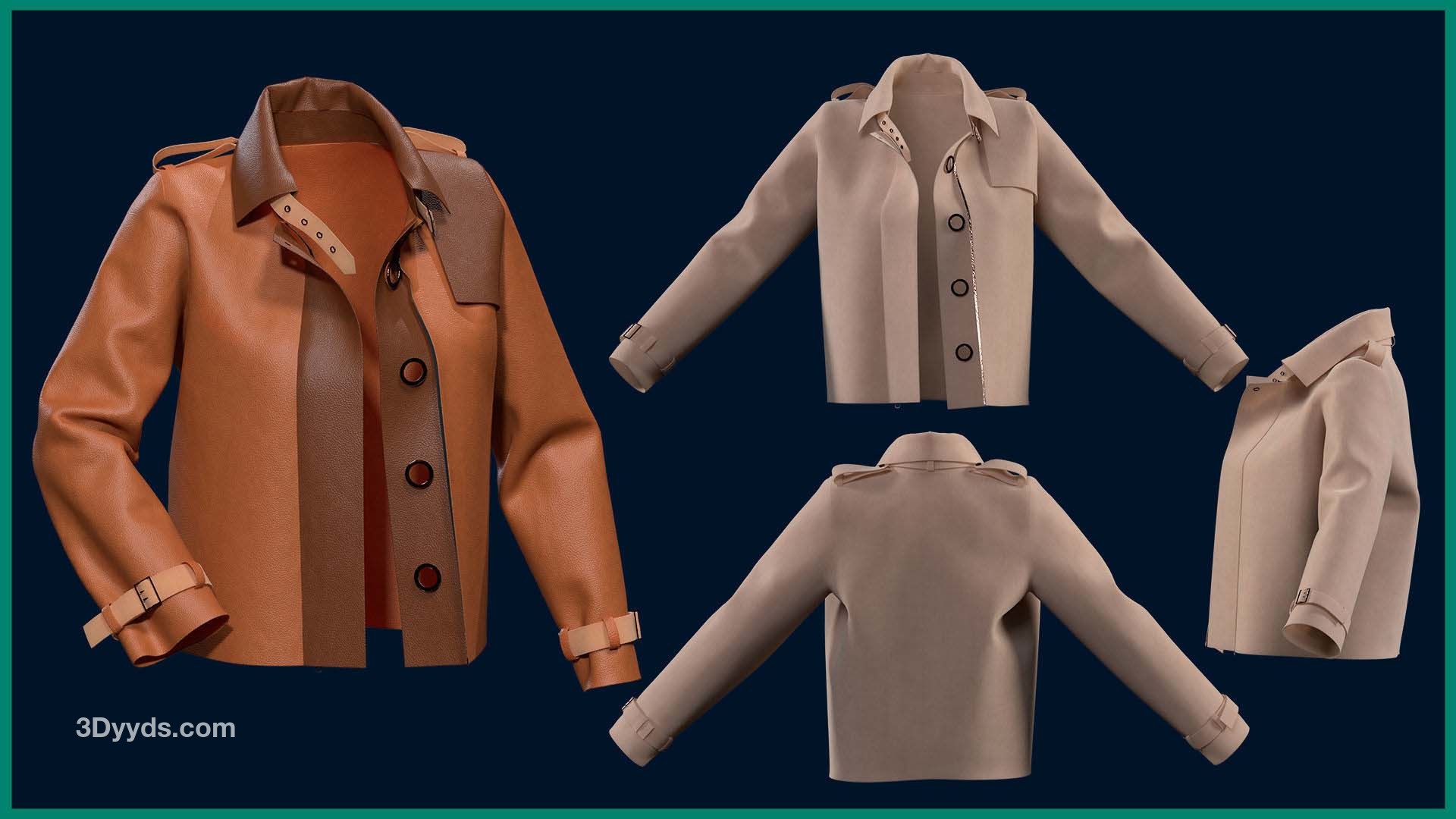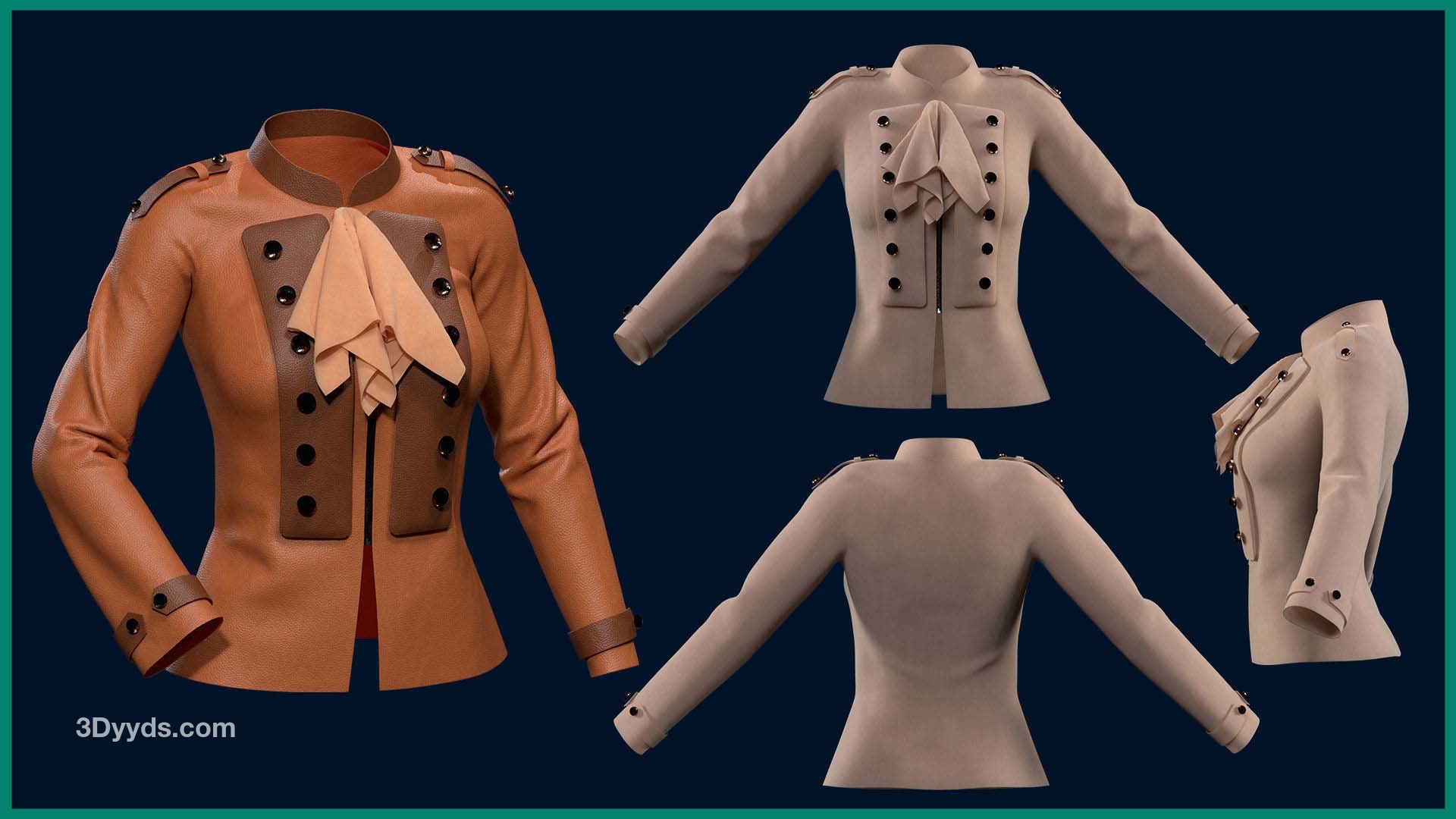 本产品包含 5 个女性夹克和 5 个文件。在每个文件中,有: