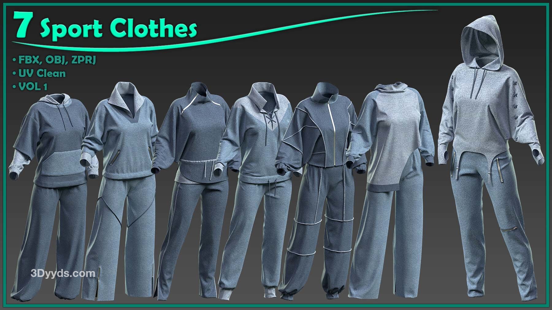 本产品包含 7 件女性运动服 和 7 个文件。在每个文件中,有: