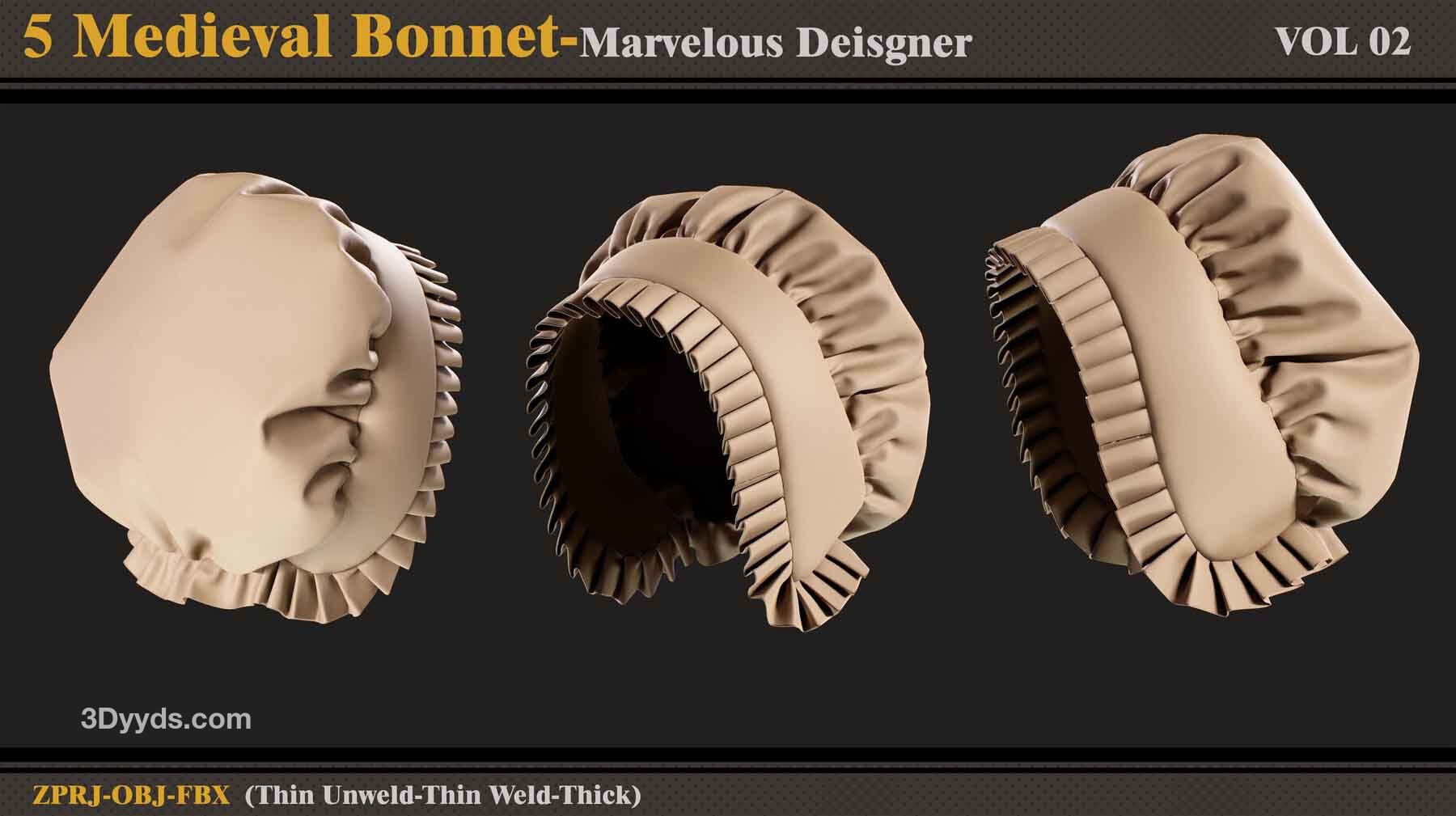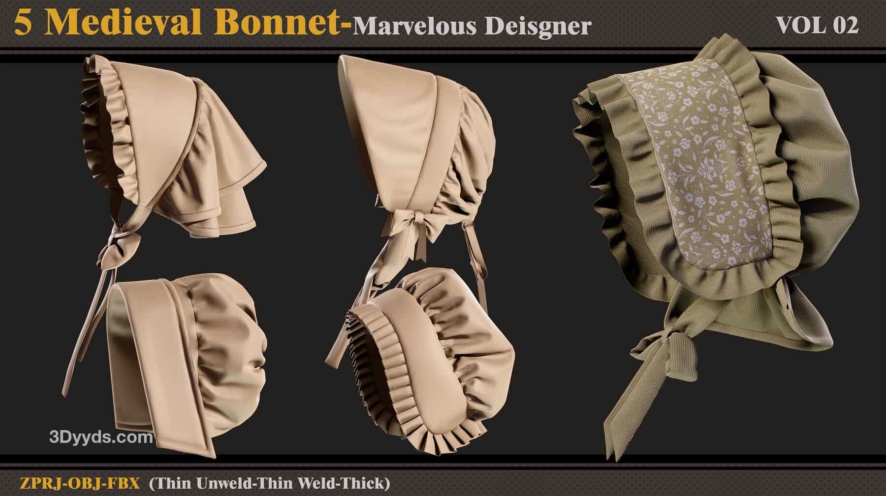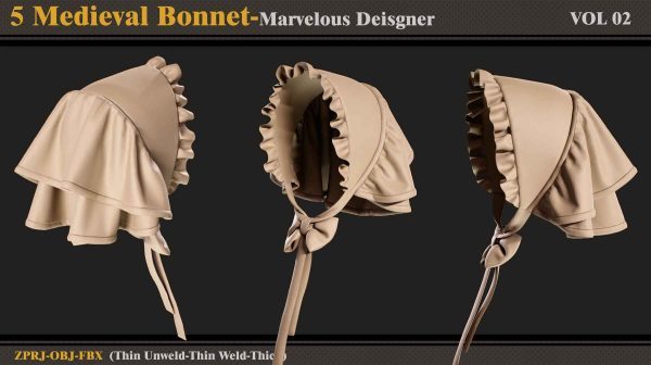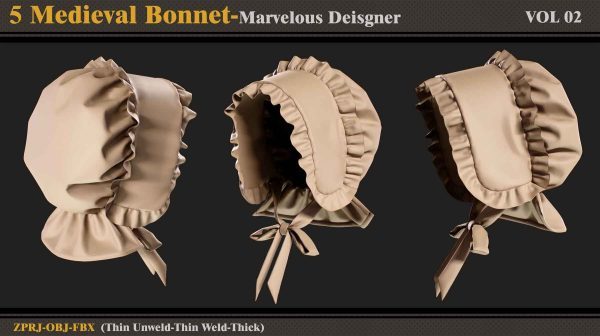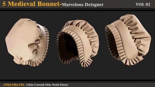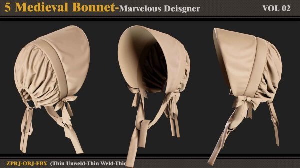本产品包含 5 个 Medieval Bonnet(VOL 2) 和 5 个文件。在每个文件中,有: