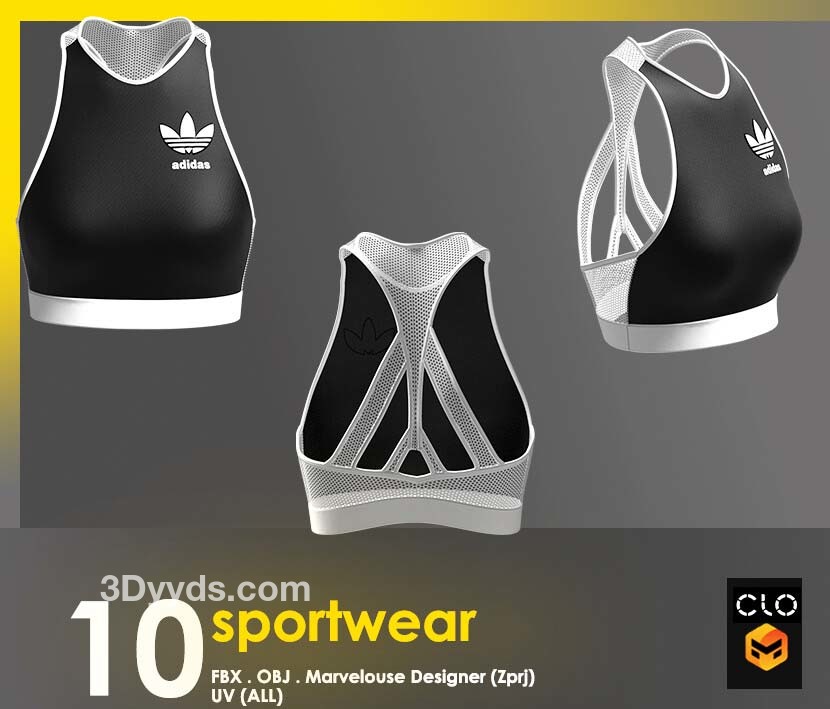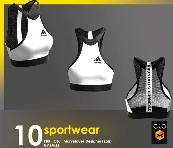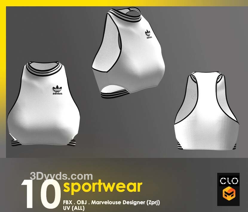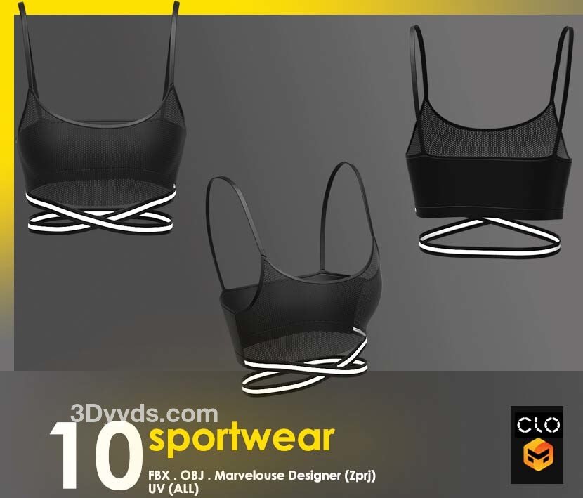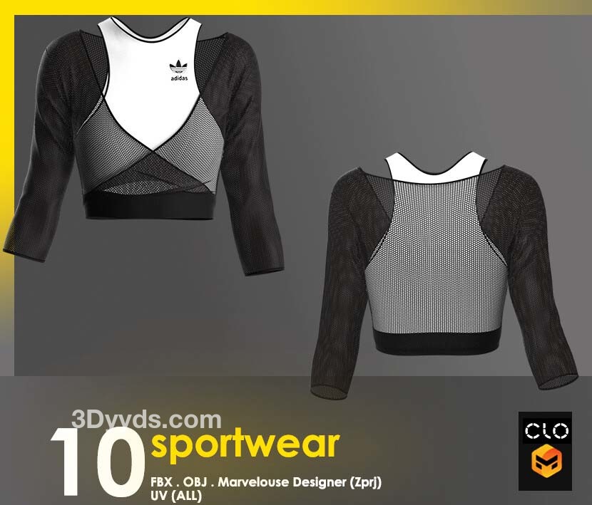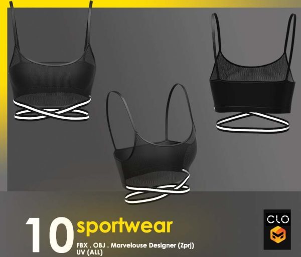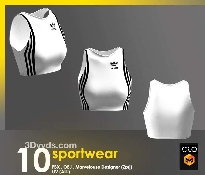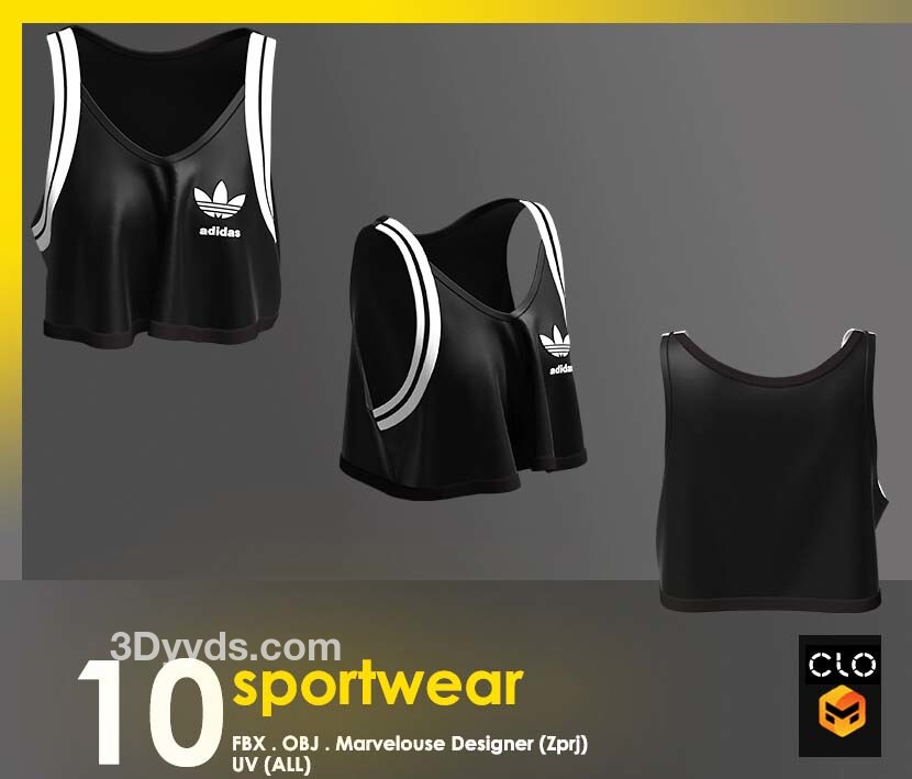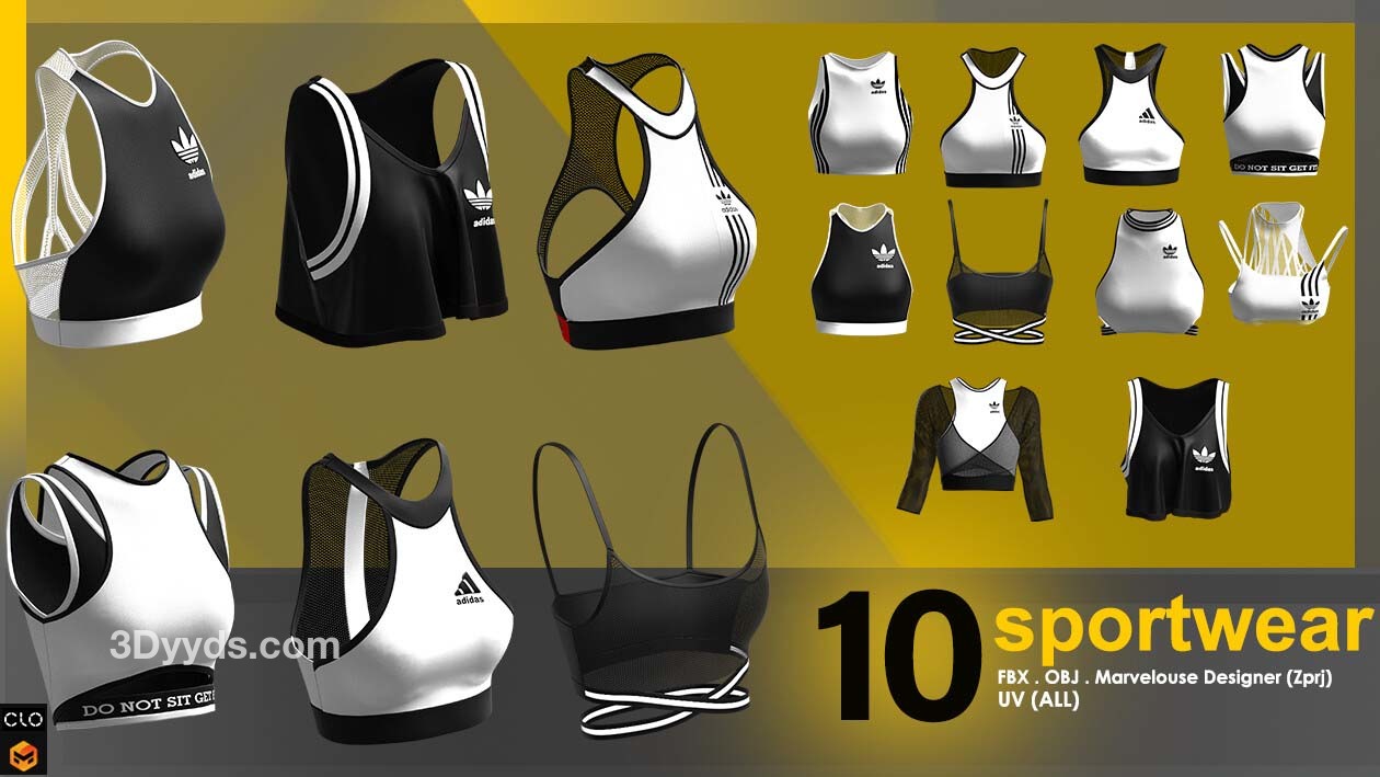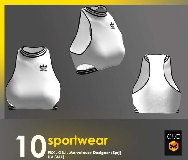 这个包包含 10 件运动短款上衣,全部采用 clo3d 制成,marvelouse 设计师
