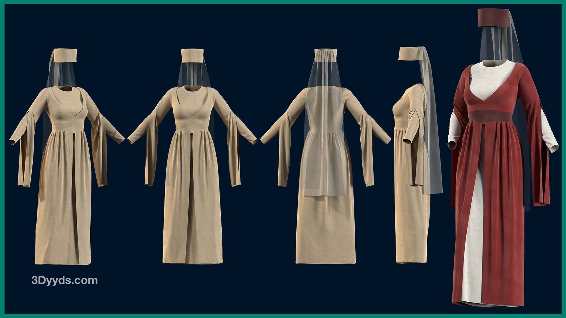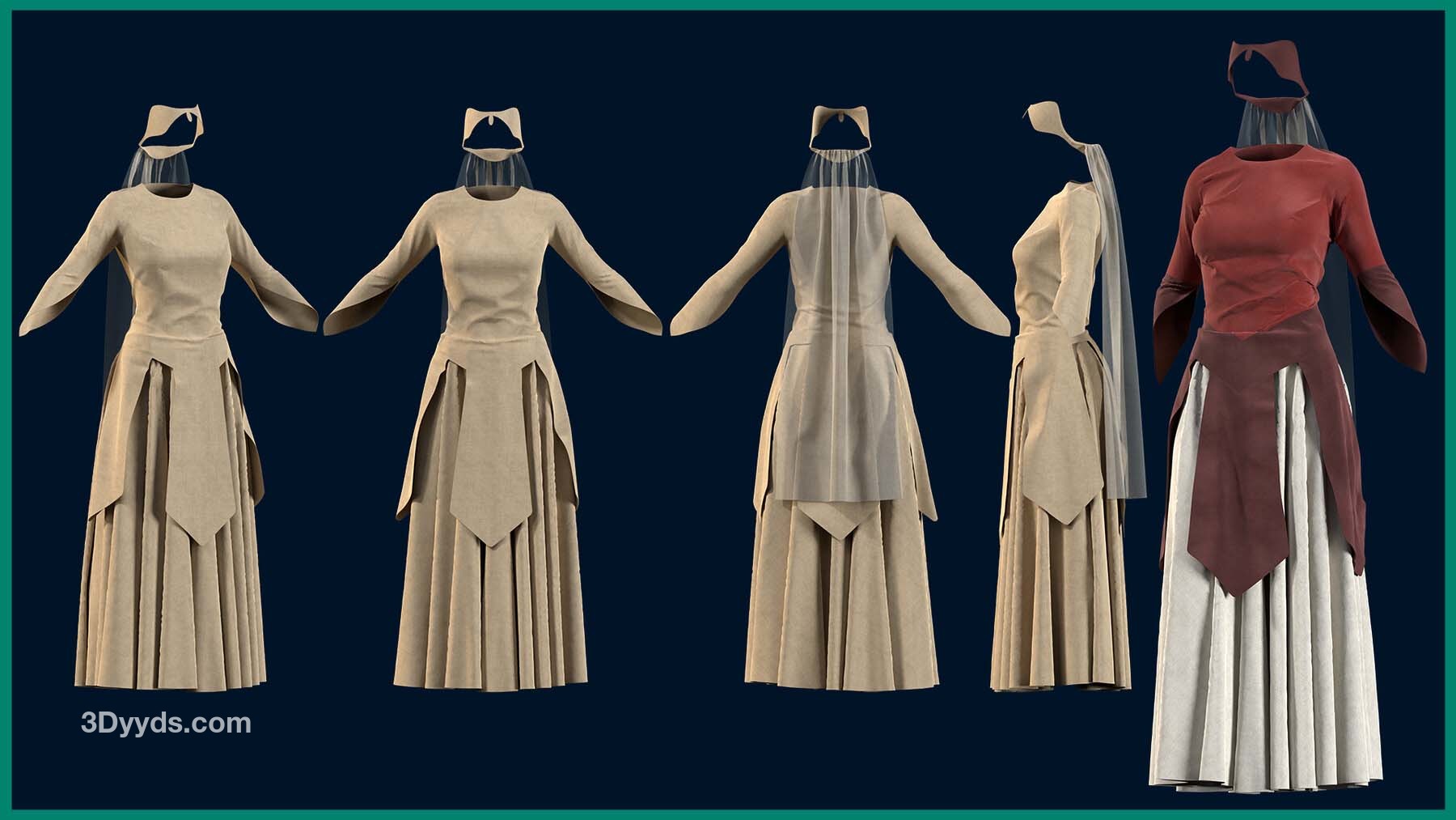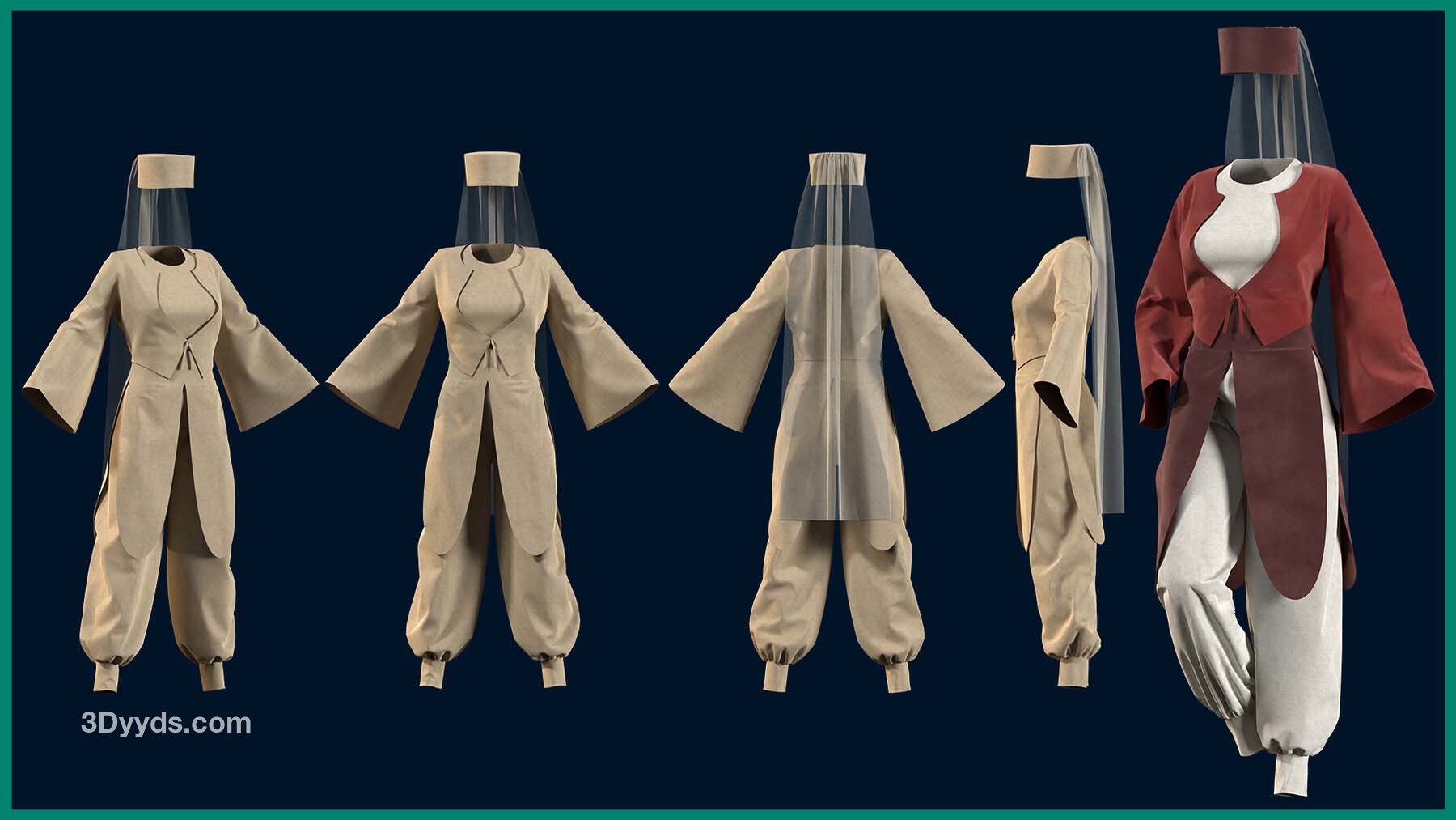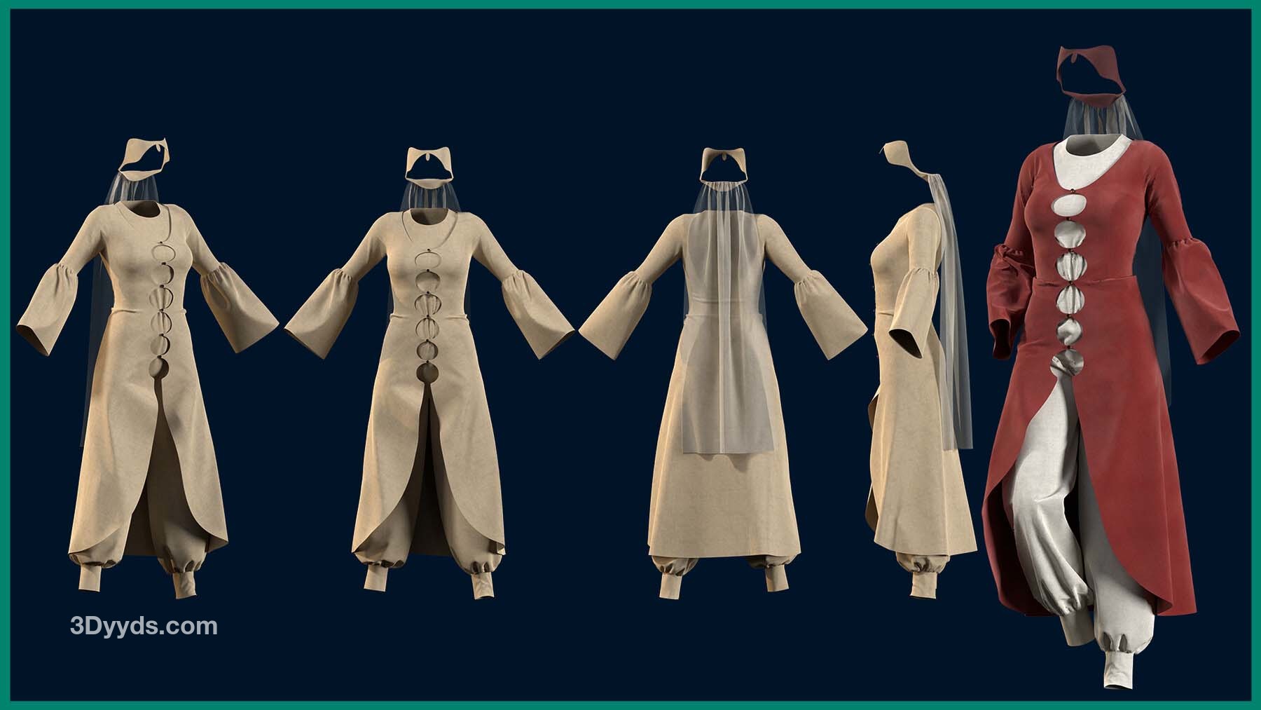 本产品包含 7 件女性奥斯曼服装和 7 个文件。在每个文件中,有: