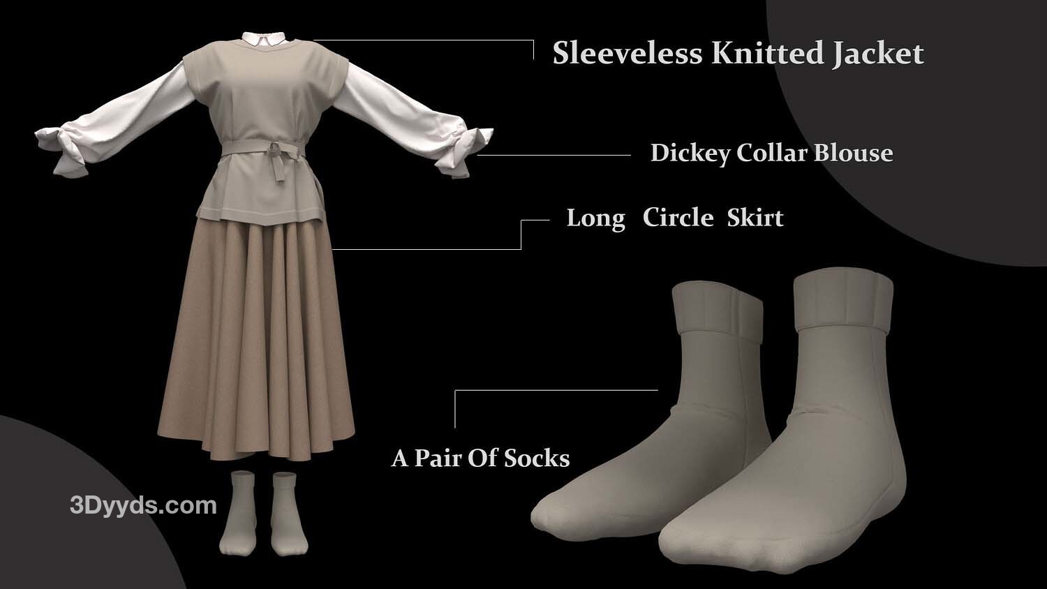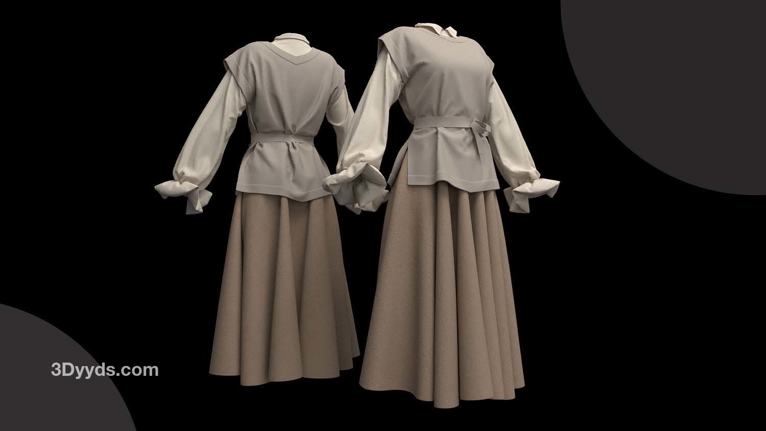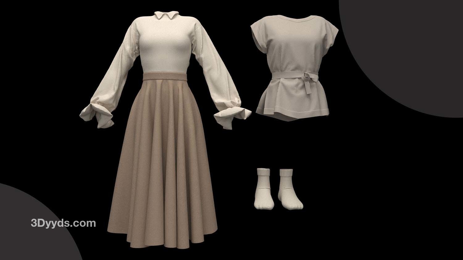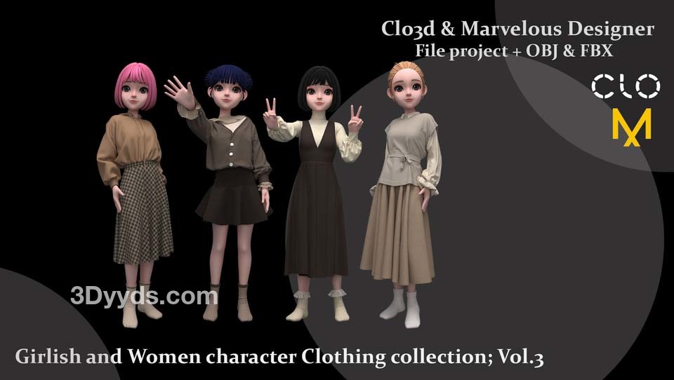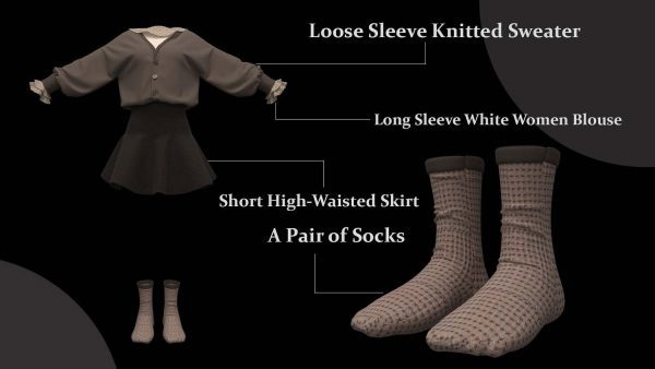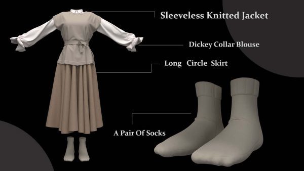 女性角色服装的不同造型:
