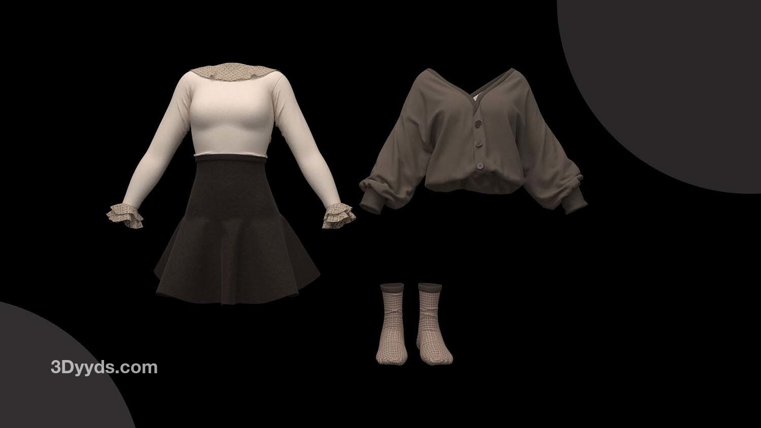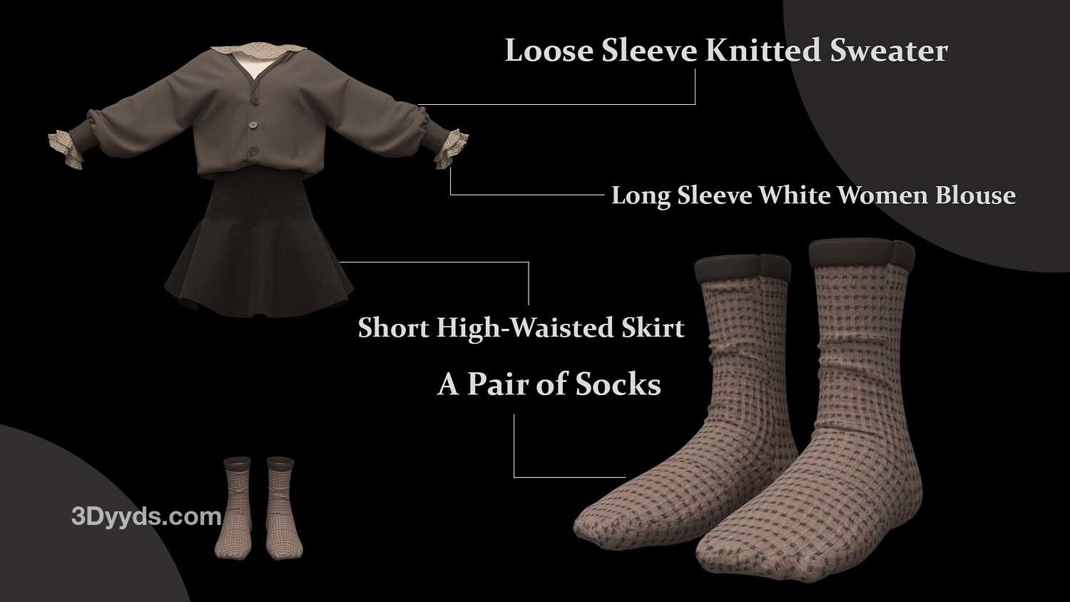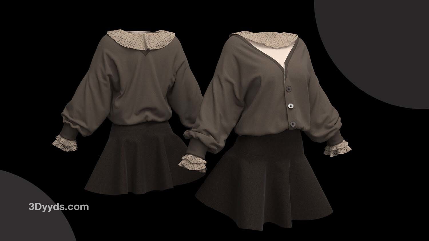 女性角色服装的不同造型:
