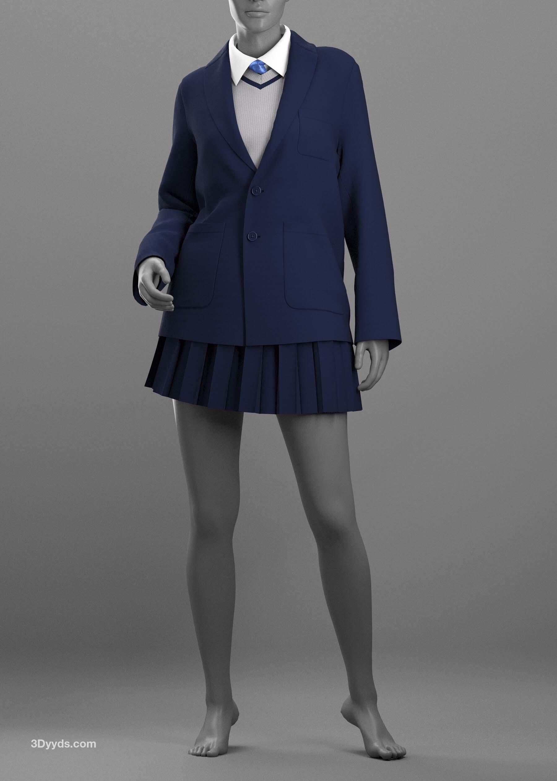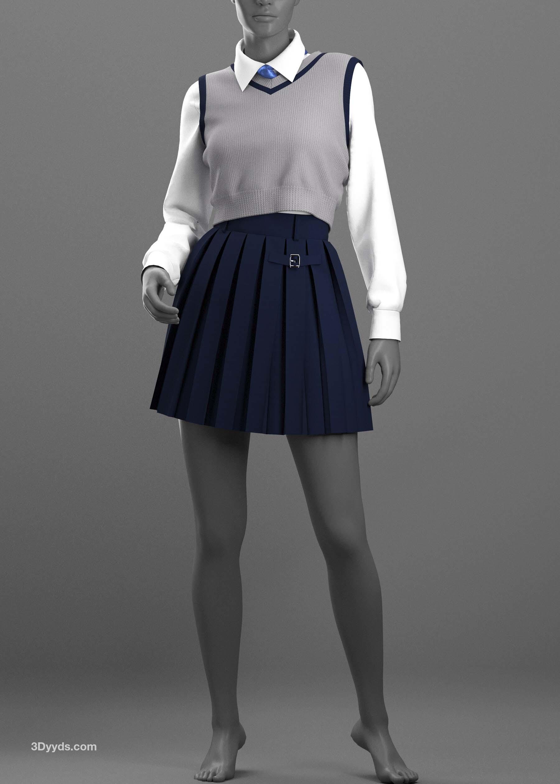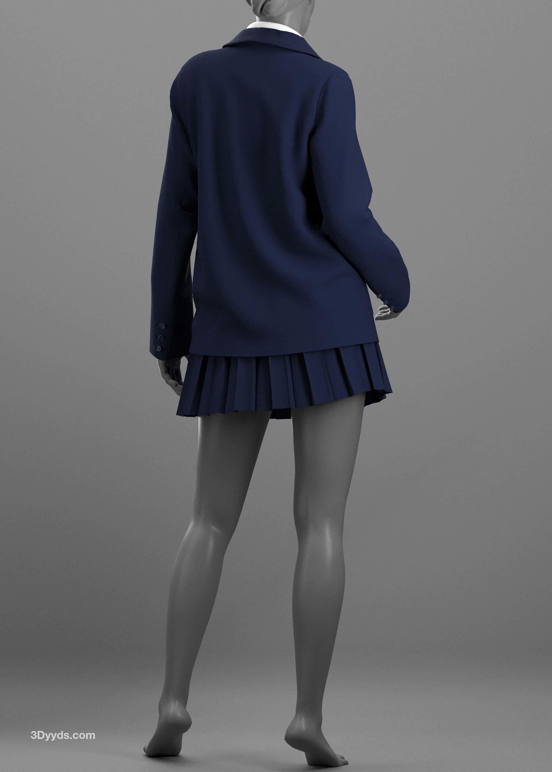 女装 2 - Marvelous Designer / Clo Project 是一个五件套,包括一件夹克、一条百褶裙、一件背心、一件女式衬衫和一条领带。