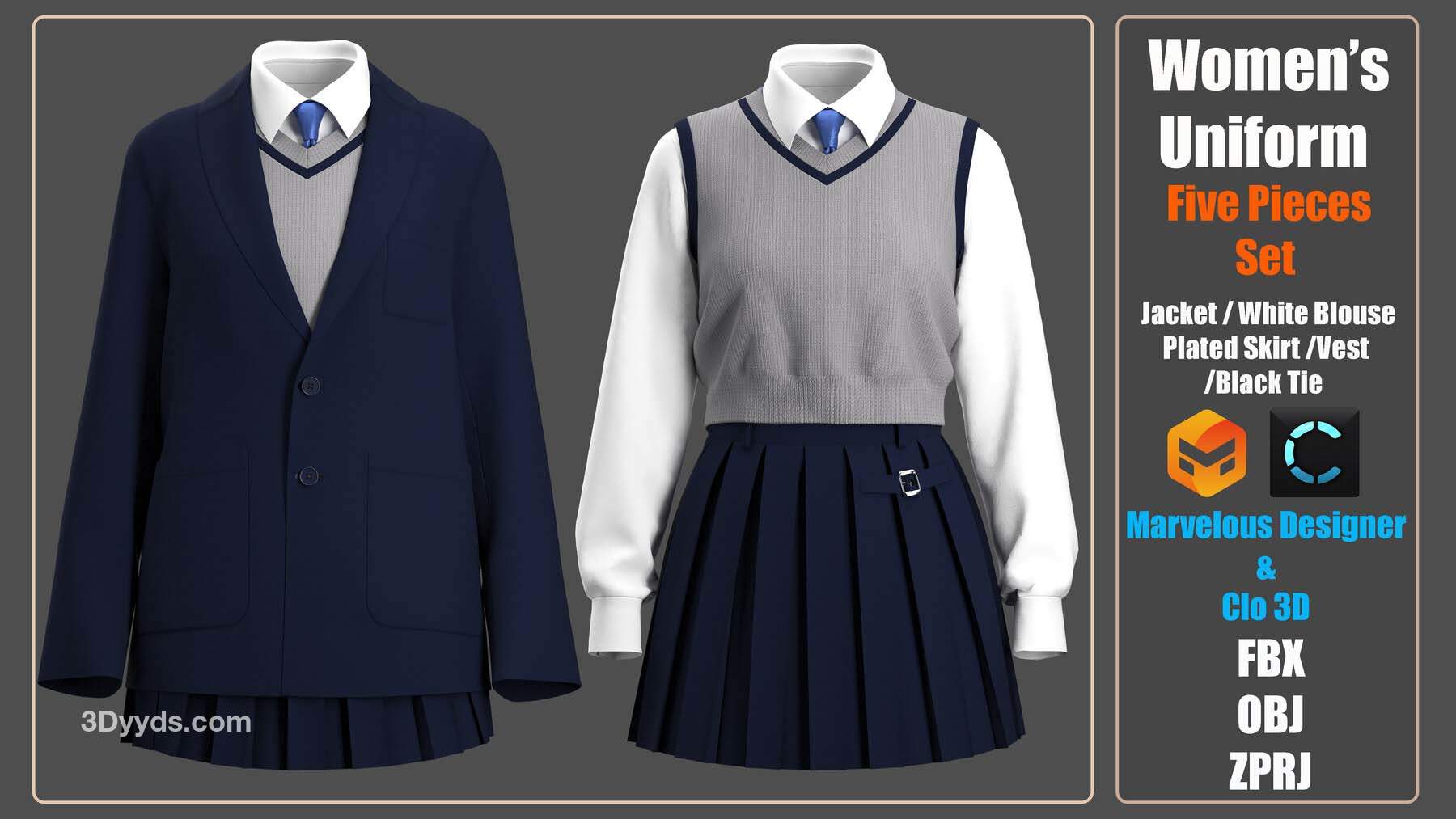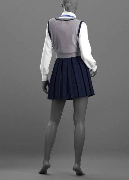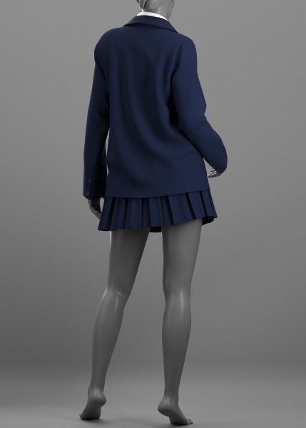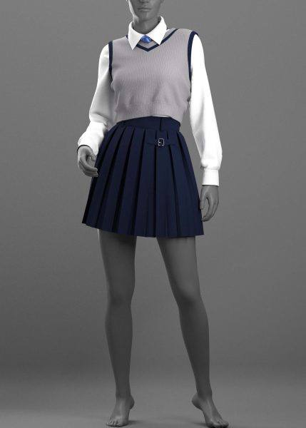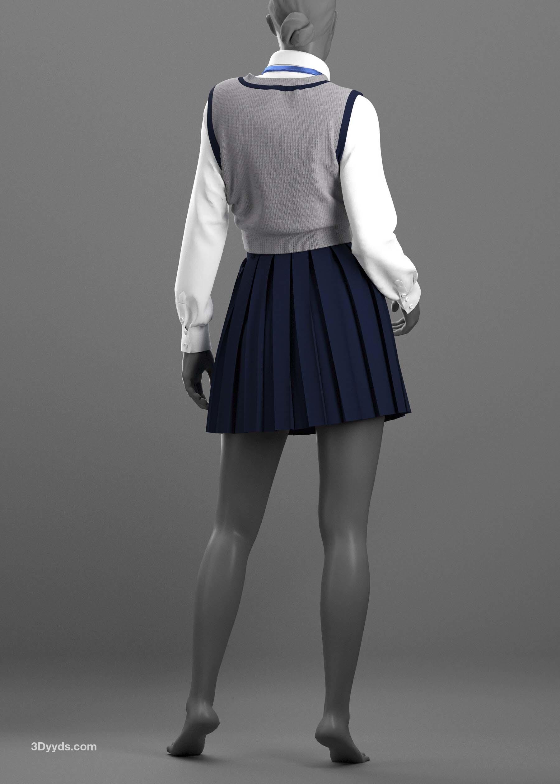 女装 2 - Marvelous Designer / Clo Project 是一个五件套,包括一件夹克、一条百褶裙、一件背心、一件女式衬衫和一条领带。