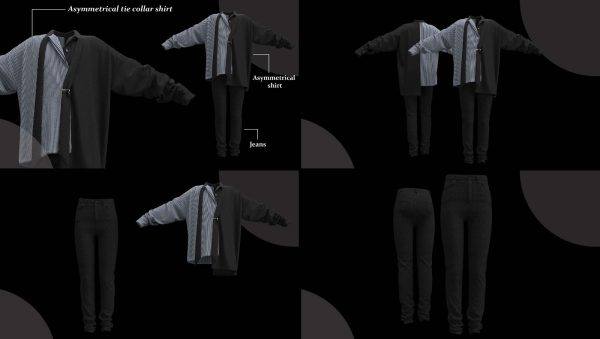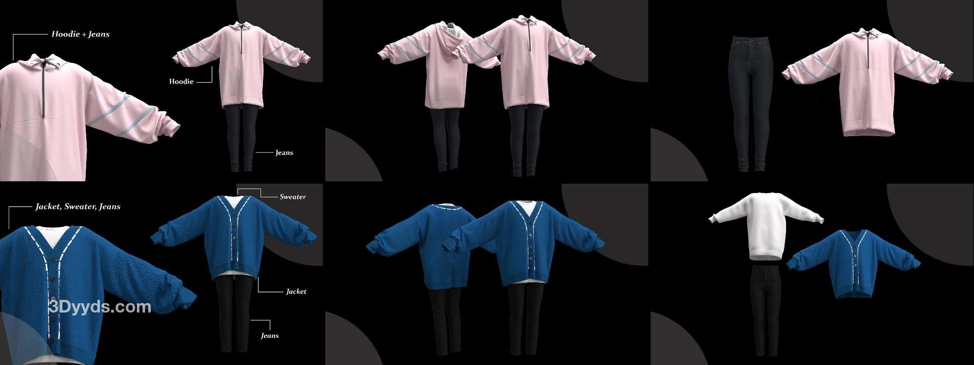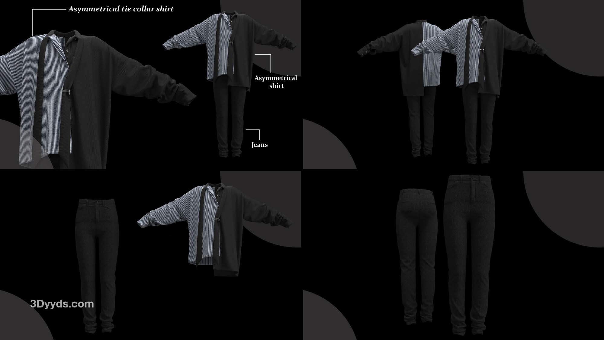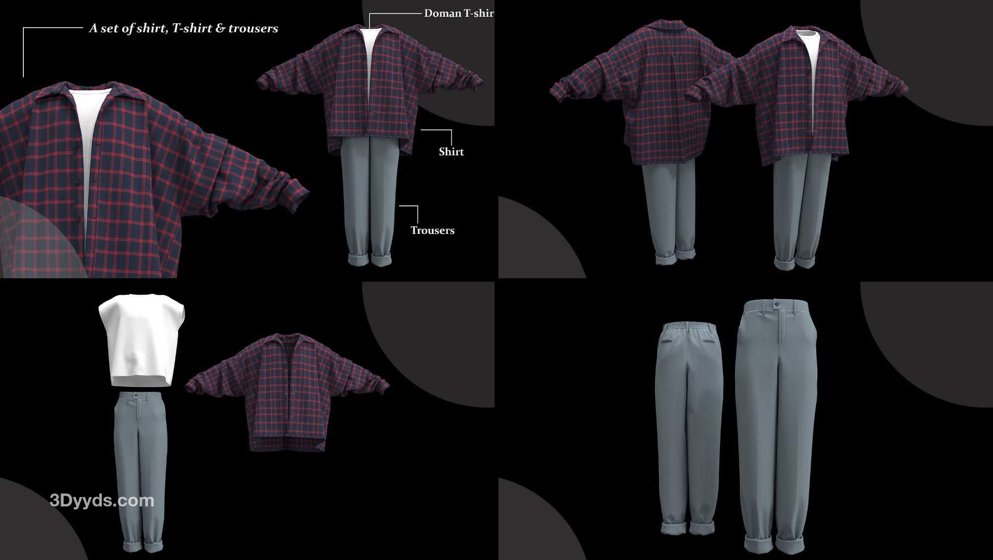 包装包括衬衫、达蒙 T 恤、裤子、牛仔裤、背心、夹克。